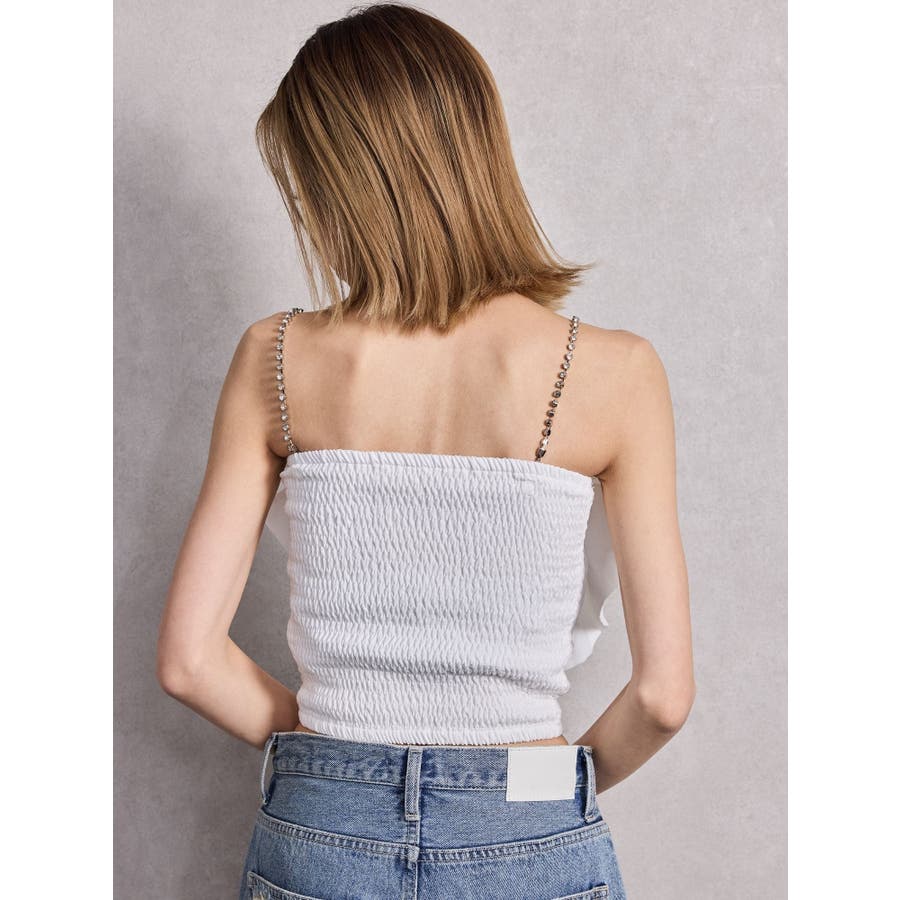 ビジューストーンストラップ2WAYリボンブラウス