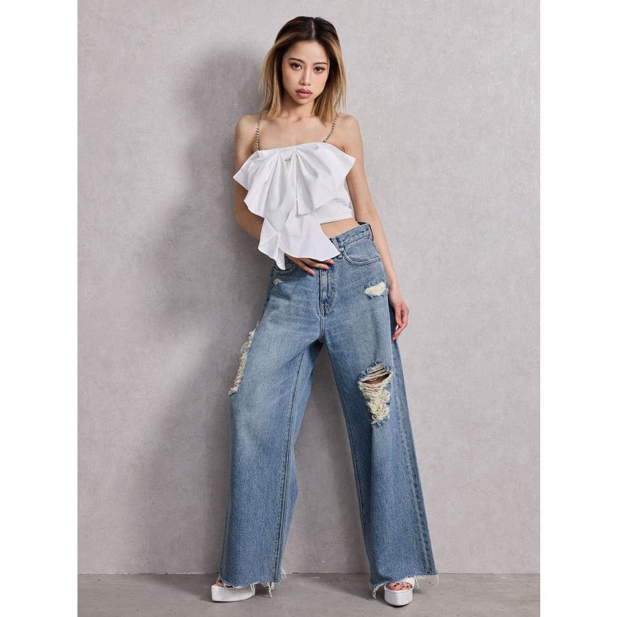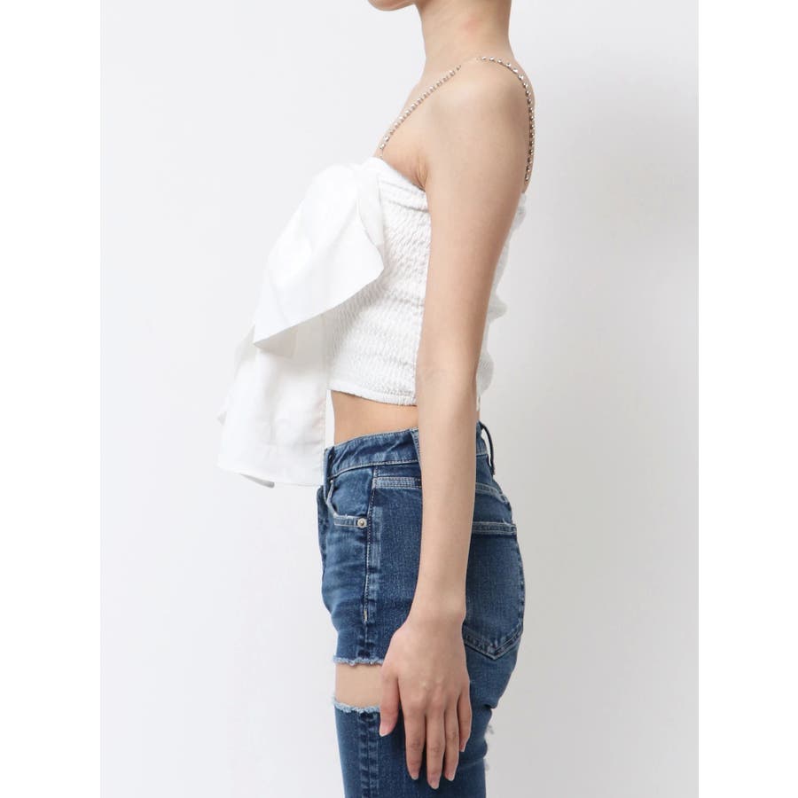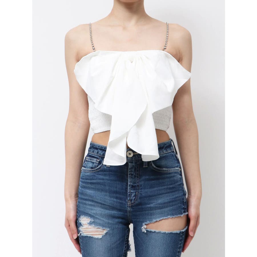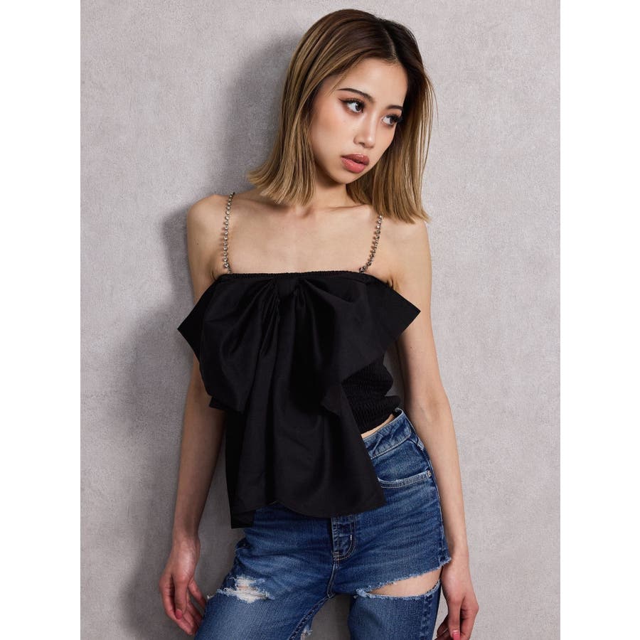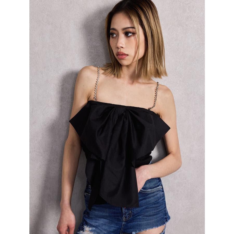 ■デザイン インパクトのある大きなリボンが印象的な可愛いブラウスです。 ストラップが取り外し可能になっていてラインストーンのチェーンを使用してます。 前後着用可能なので、お好みの着こなしをお楽しみいただけます。 ■スタイリング デニムスタイルがGYDA(ジェイダ)らしく着こなせます。 ■商品のお気に入り登録 再入荷通知やラスト1点、お得なプライスダウンの情報も受け取ることができます。 ぜひご登録ください◎ ・・・・・・・・・・・・・・・・・・・・・・ ※着用画像はフラッシュの加減で実際の製品と色味等が異なる場合がございますので、生地のズームアップ画像をご確認ください。 ※ご利用の端末画面の設定により実際の商品と色味が異なる場合がございます。 【商品特徴】透け感:なし伸縮性:あり生地の厚さ:普通サイズ感:細身裏地:なしポケット:なし
