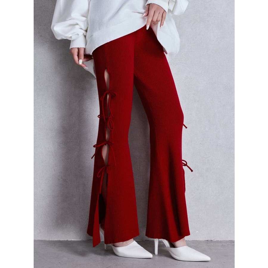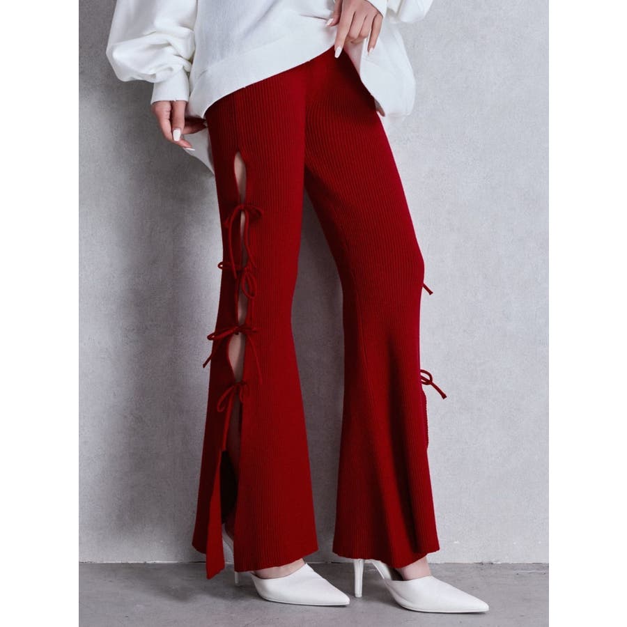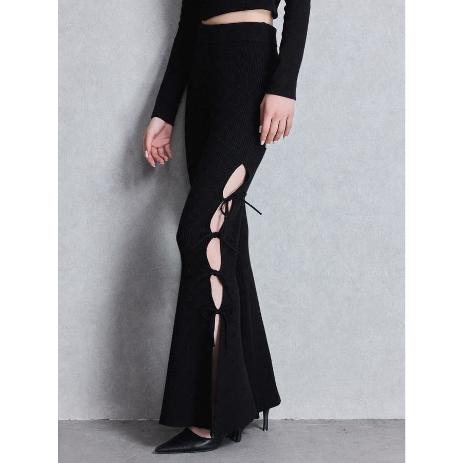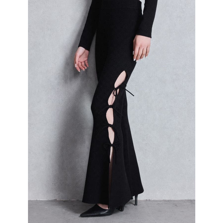 ■デザイン リブ編みニット素材を使用し、サイドスリット+リボンが、今っぽいディテールとセクシーなデザイン。 タイトフレアのシルエットで脚長効果抜群の1着です。 ウエストのゴム仕様と、内紐付きなのでサイズ調整もしやすく穿き心地も◎ ■スタイリング ルーズサイズのトップスの合わせや、ビスチェ×チェックシャツのボトム合わせもおススメです。 ■商品のお気に入り登録 再入荷通知やラスト1点、お得なプライスダウンの情報も受け取ることができます。 ぜひご登録ください◎ ・・・・・・・・・・・・・・・・・・・・・・ ※着用画像はフラッシュの加減で実際の製品と色味等が異なる場合がございますので、生地のズームアップ画像をご確認ください。 ※ご利用の端末画面の設定により実際の商品と色味が異なる場合がございます。 【商品特徴】透け感:なし伸縮性:あり生地の厚さ:普通サイズ感:普通裏地:なしポケット:なし