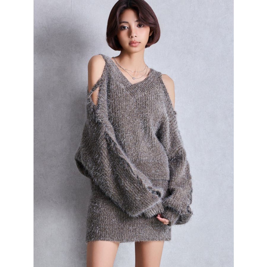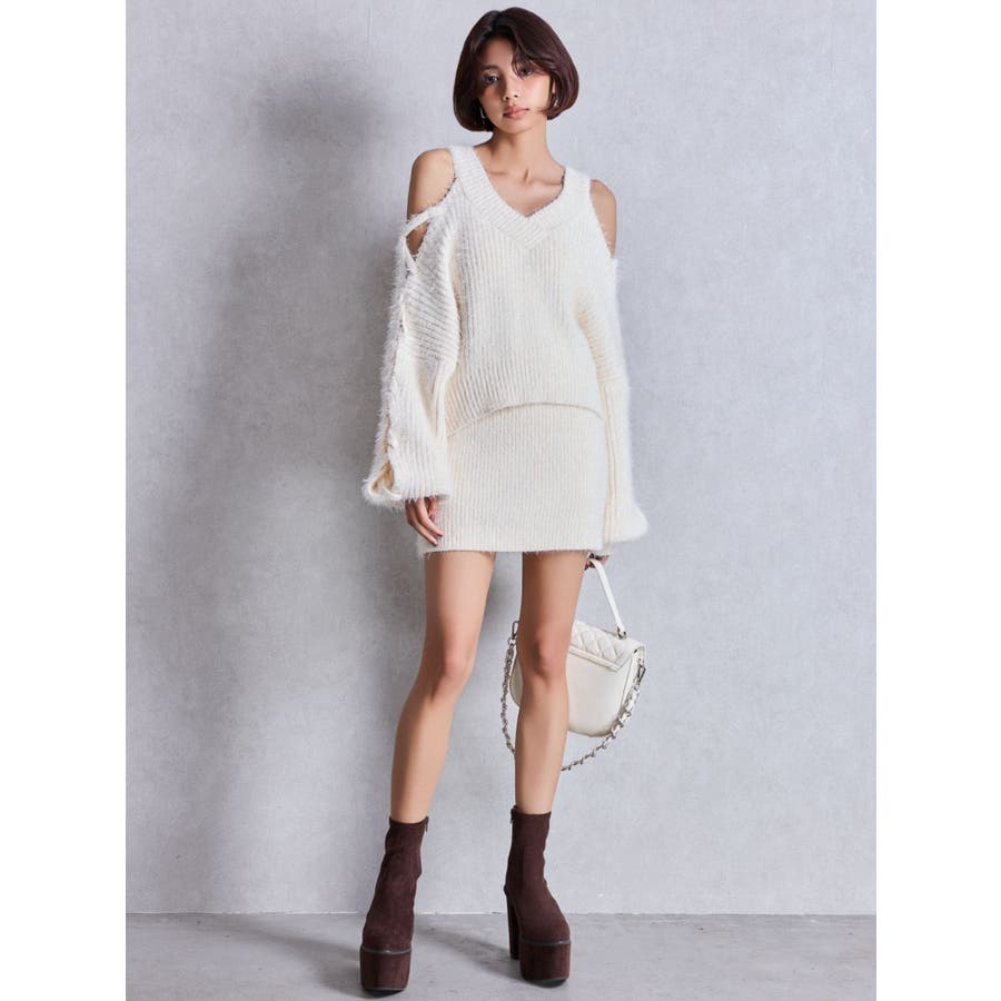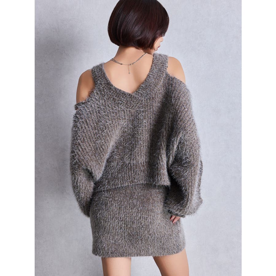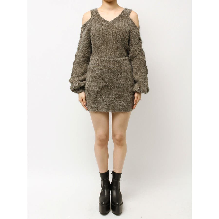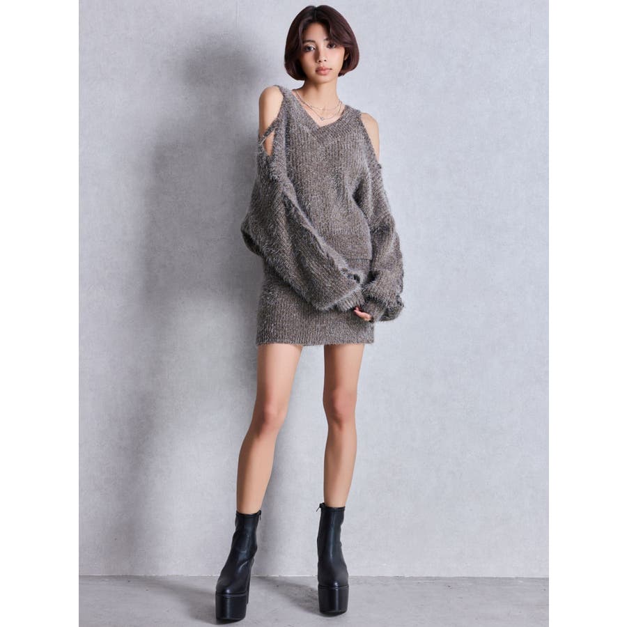 シャギーニットタイトミニスカートライクショートパンツ