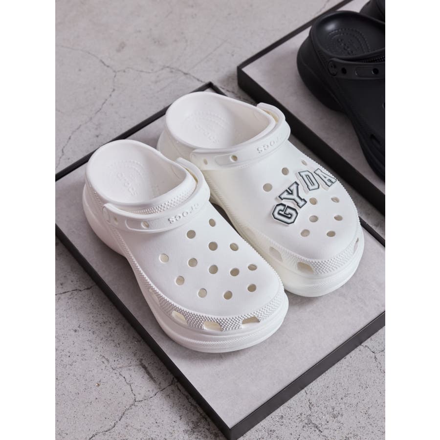 ■デザイン クラシック クロッグに高さとスタイルを加えて、デザインを一新。 大人気のアッパーをサポートする大胆なコンツアー型アウトソールを使ったベイクロッグが登場。 でも、魅力はそれだけではありません。 さらに、カスタマイズ可能なバックストラップにもジビッツ? チャームを付けることができ、 ワンランク上のパーソナライズをお楽しみいただけます。 いつもより印象的にしたい時は、ベイで大胆にアピールしましょう。 ■スタイリング ミニボトムにGD SOXやGG WIDE RIB LOOSE SOXの靴下合わせで 履いていただくのがおすすめです! ■別売りのジビッツ? チャームはこちら CROCS JIBBITZ GYDA ■商品のお気に入り登録 再入荷通知やラスト1点、お得なプライスダウンの情報も受け取ることができます。 ぜひご登録ください◎ ・・・・・・・・・・・・・・・・・・・・・・ ※ジビッツ? チャームは別売りとなります。※着用画像はフラッシュの加減で実際の製品と色味等が異なる場合がございますので、生地のズームアップ画像をご確認ください。 ※ご利用の端末画面の設定により実際の商品と色味が異なる場合がございます。