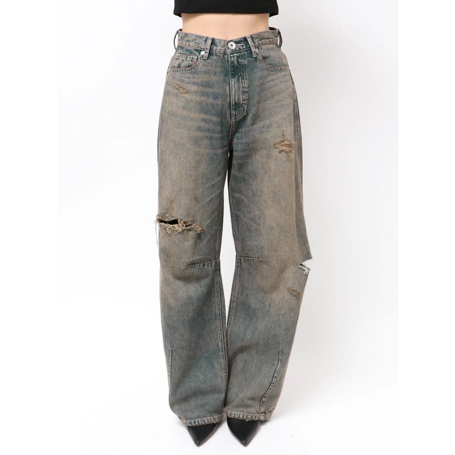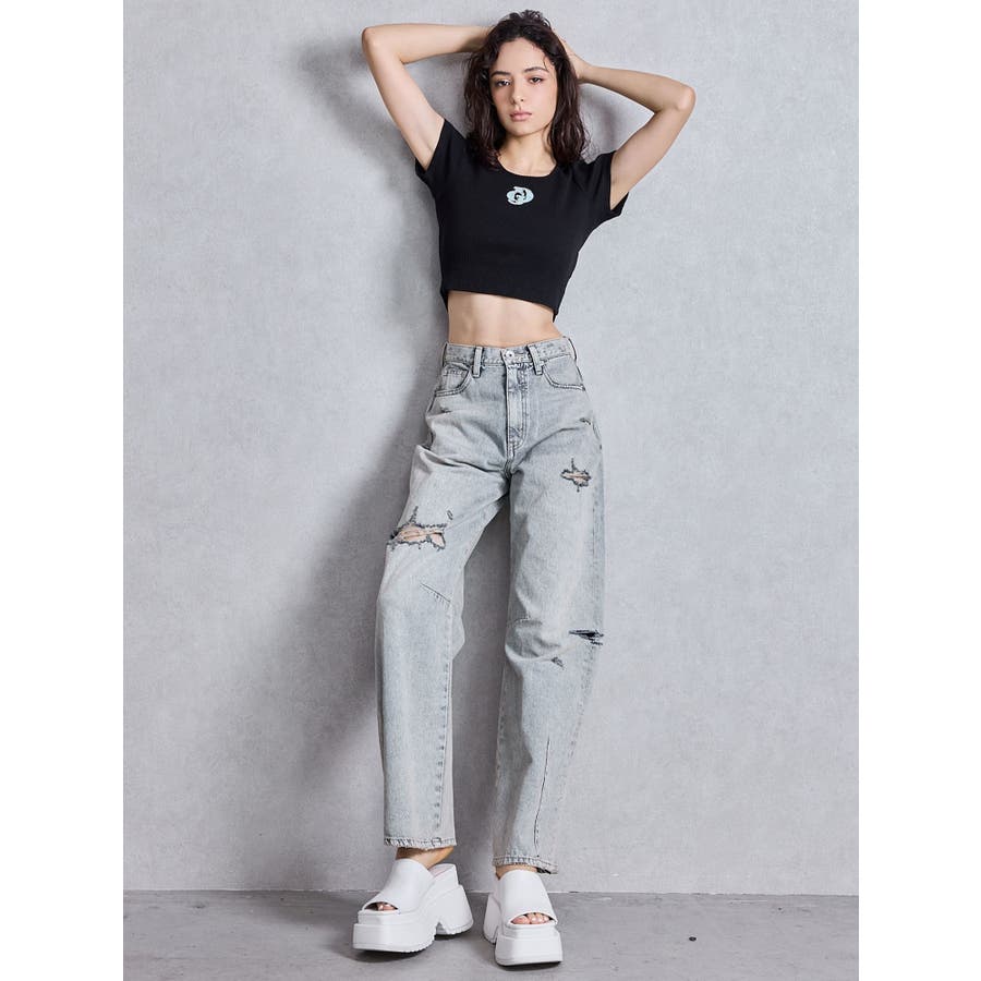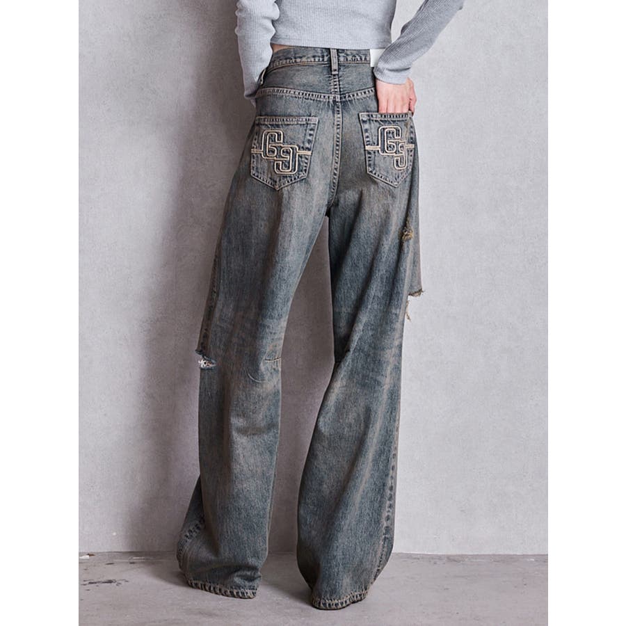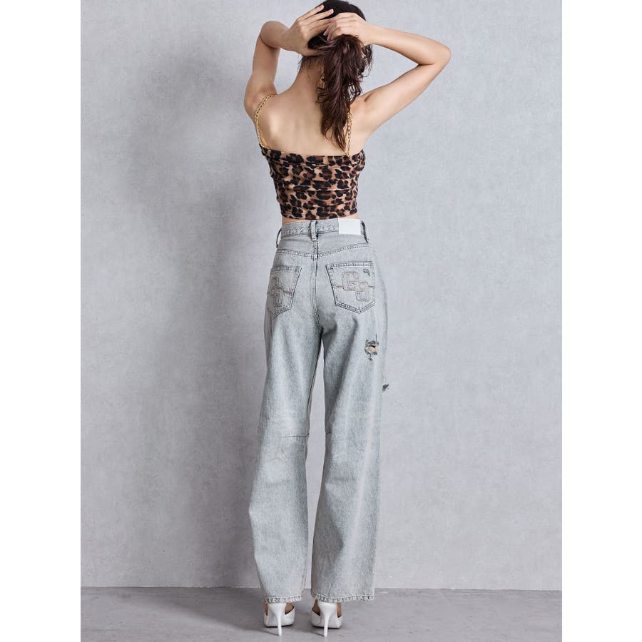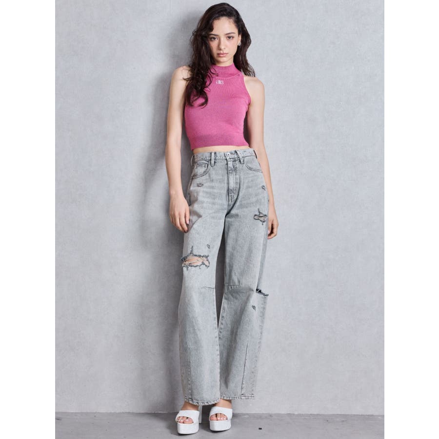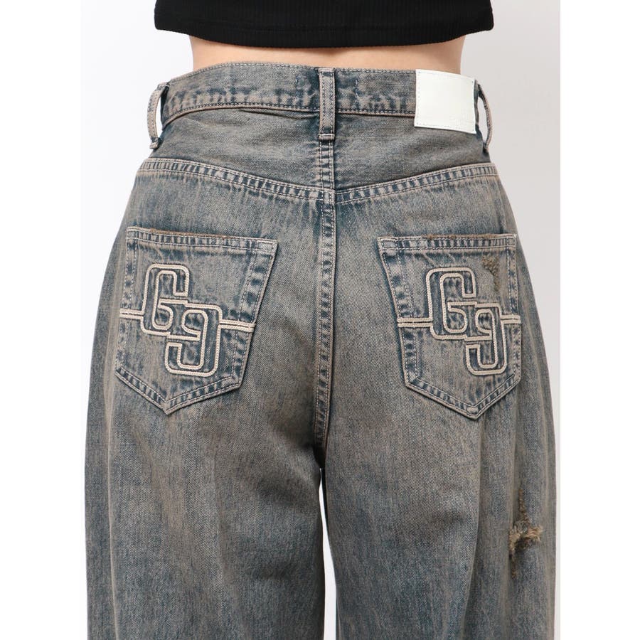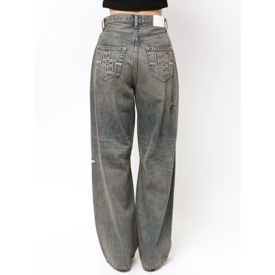 ハイウエストGG Stitch Barrel Leg ダメージデニムパンツ