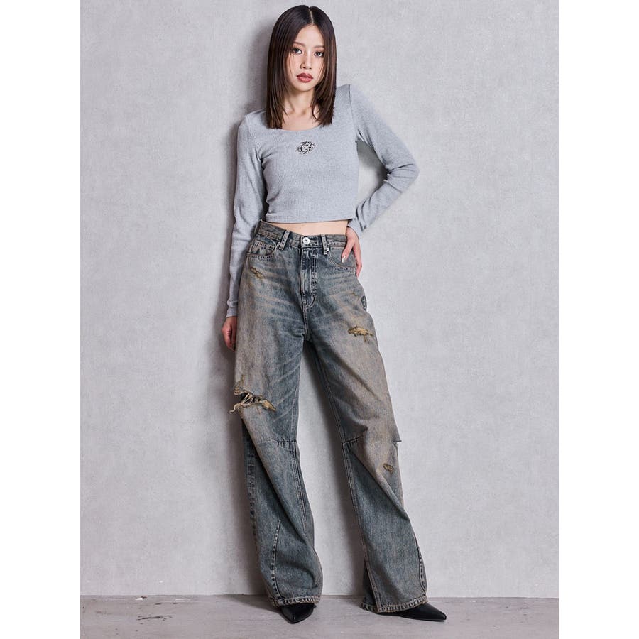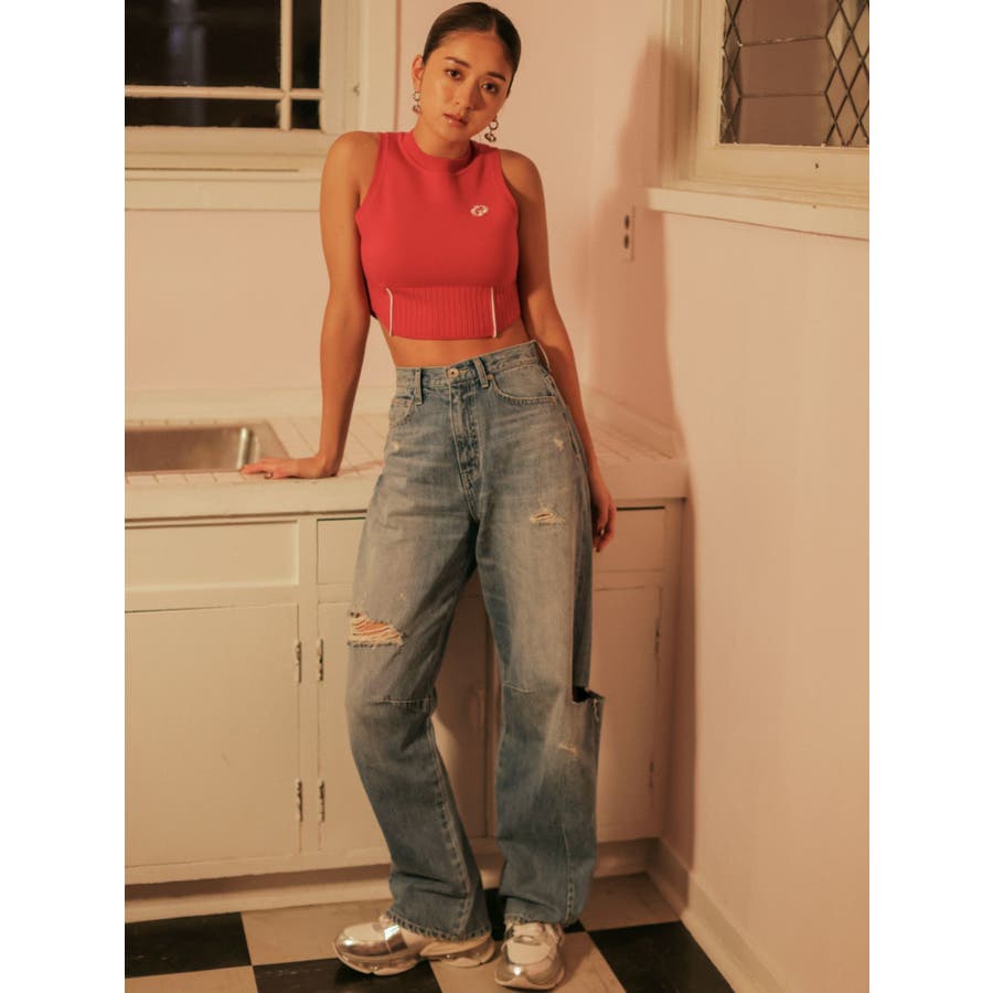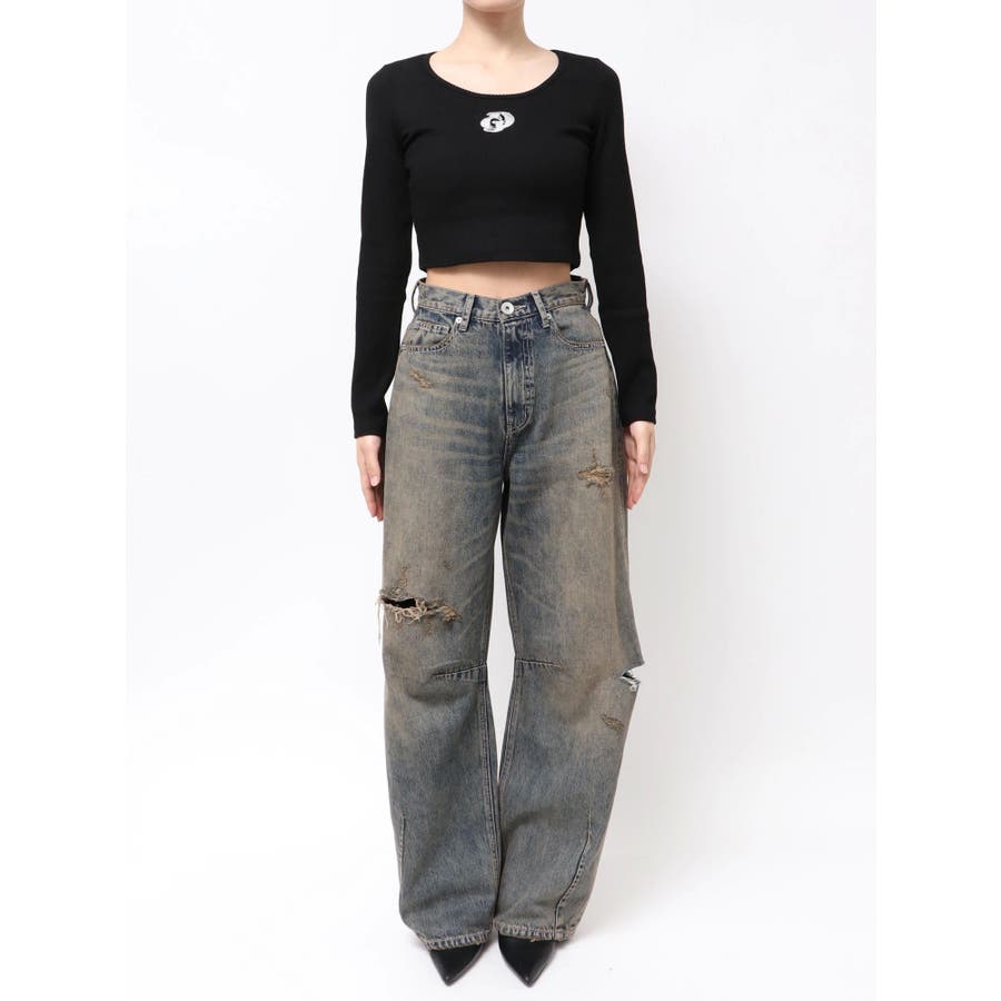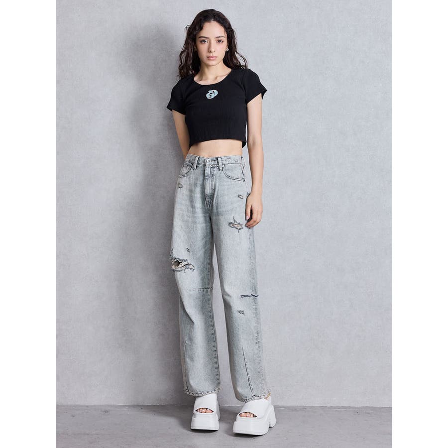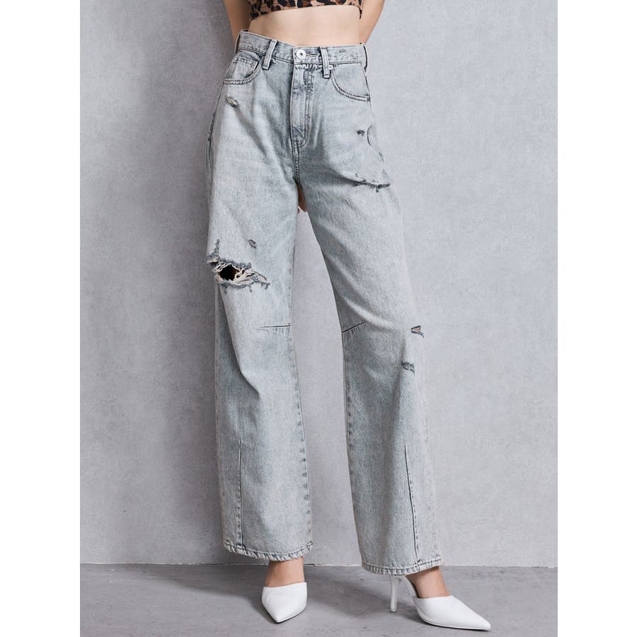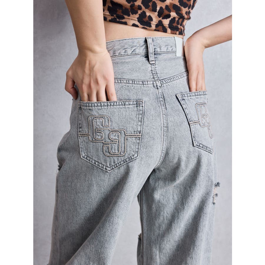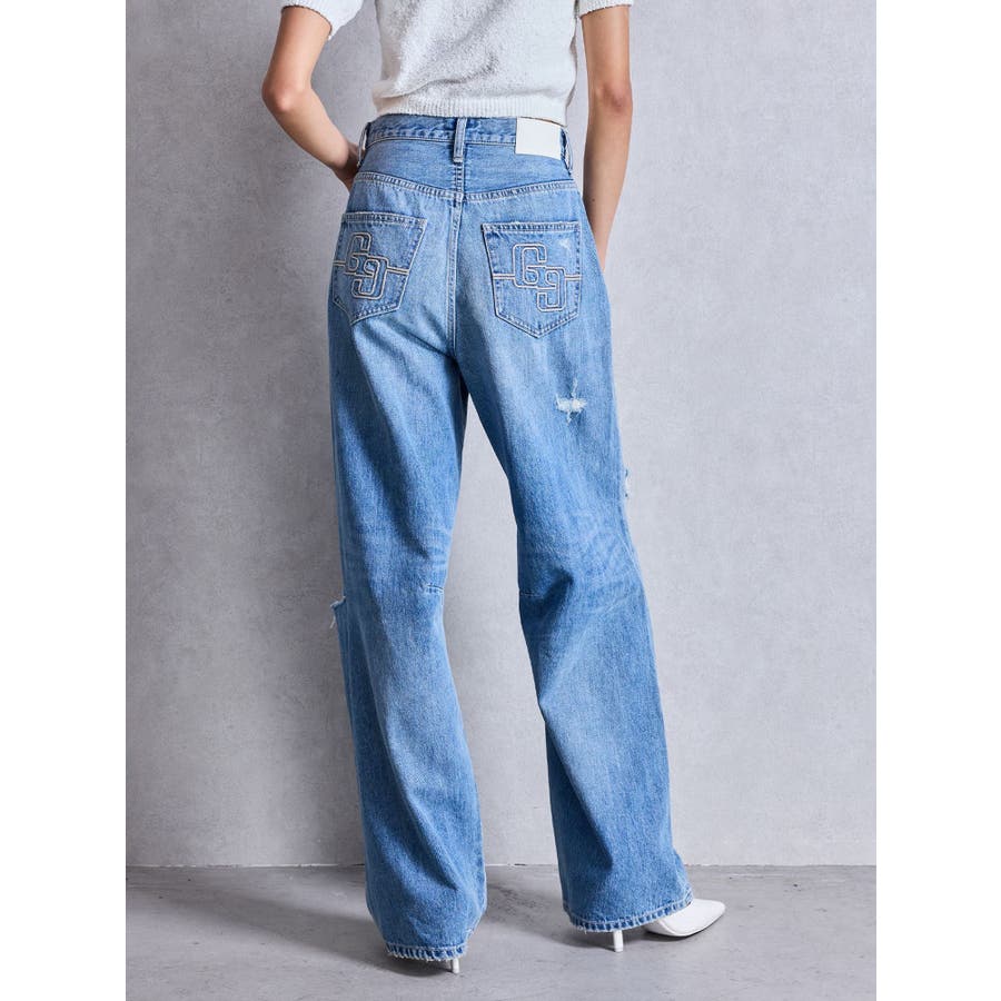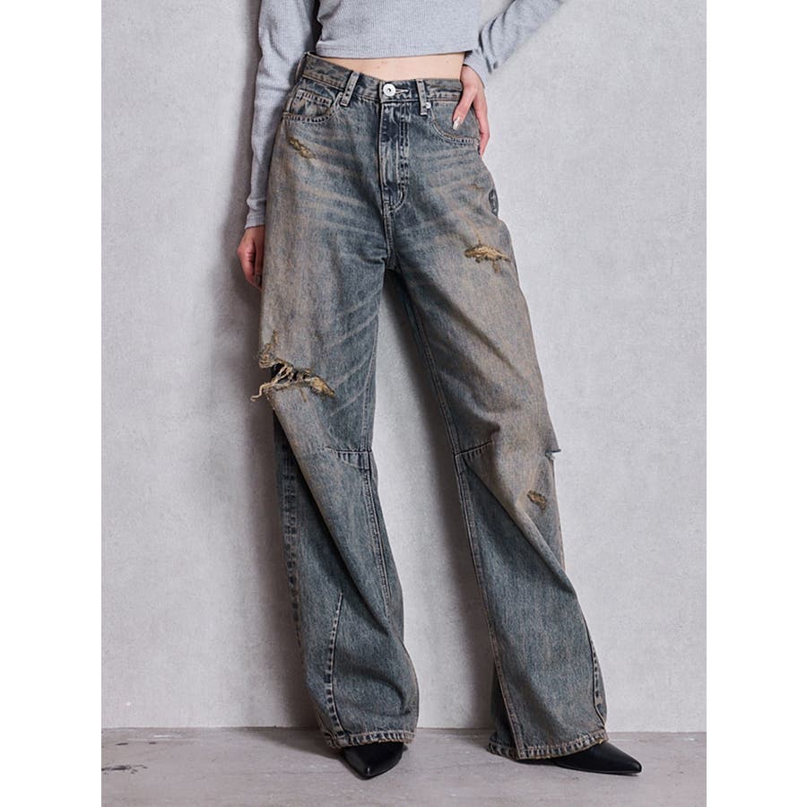 ハイウエストGG Stitch Barrel Leg ダメージデニムパンツ