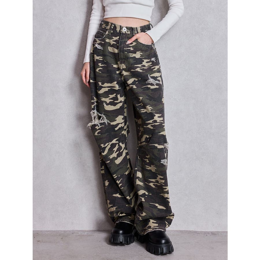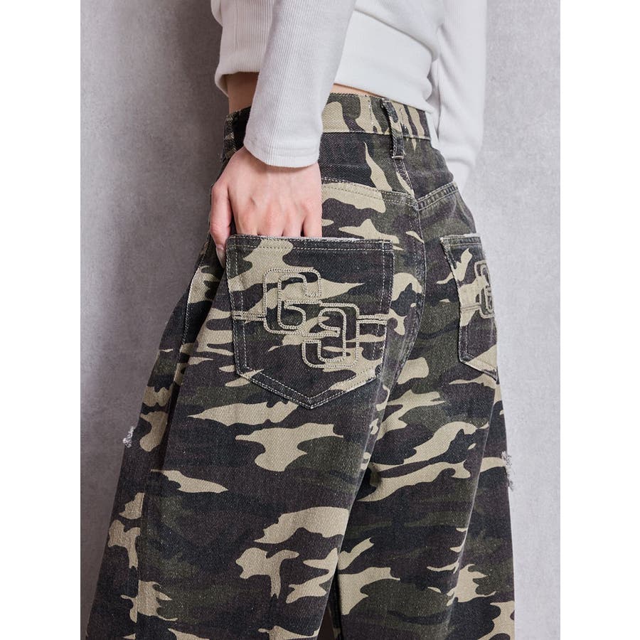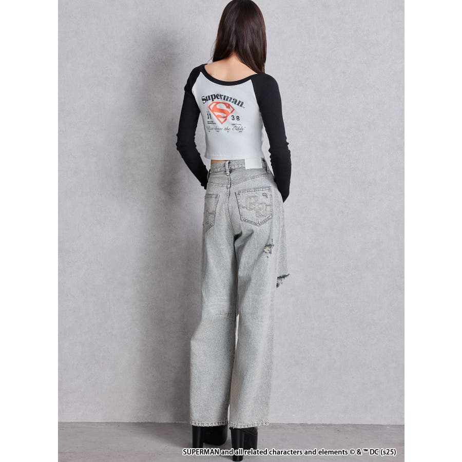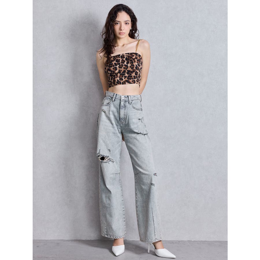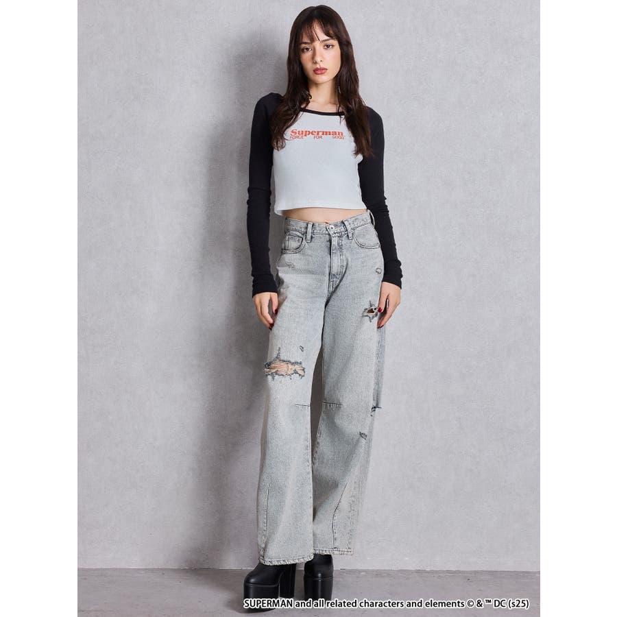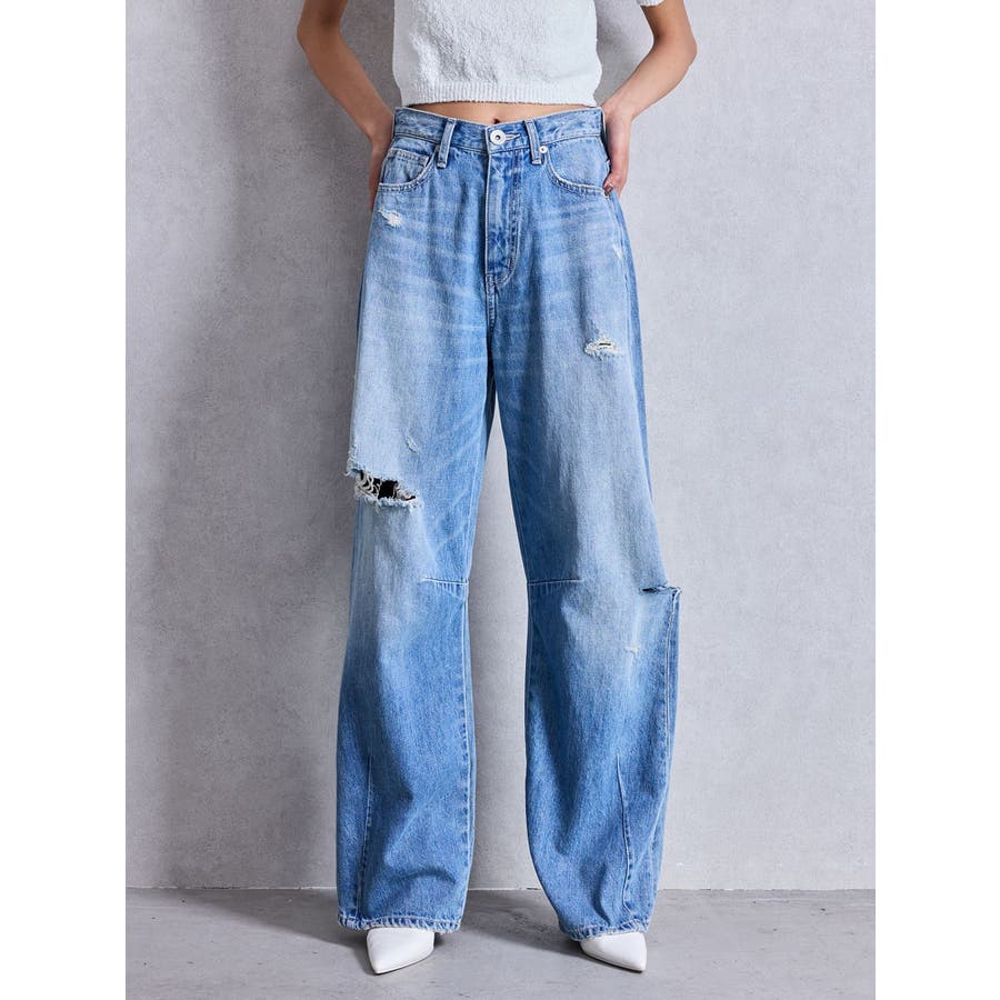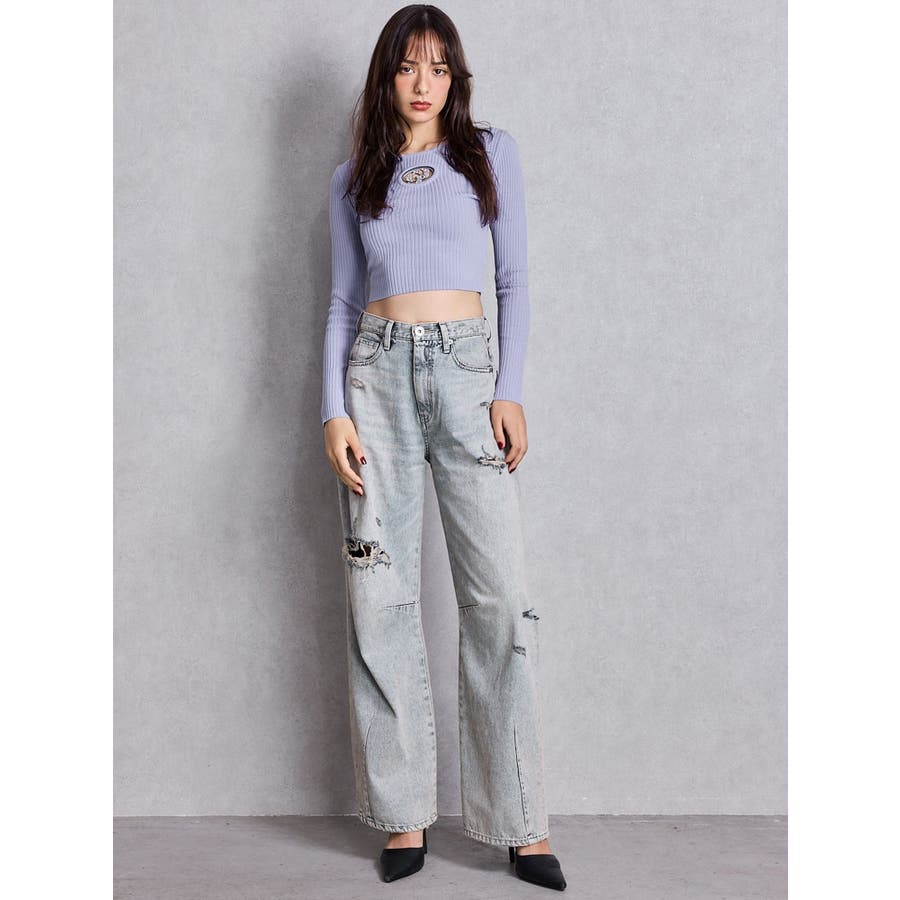 ハイウエストGG Stitch Barrel Leg ダメージデニムパンツ
