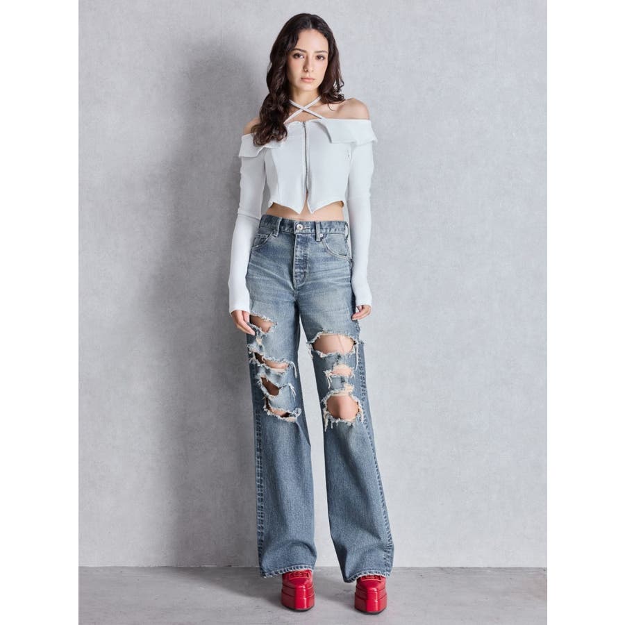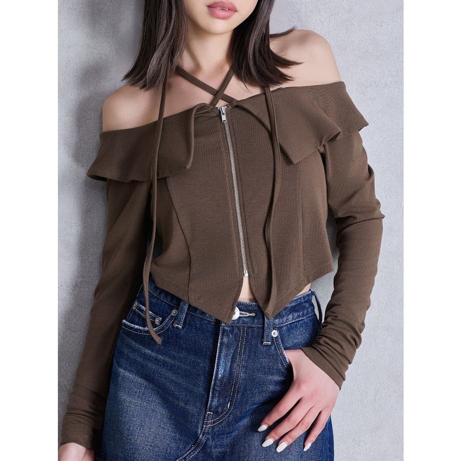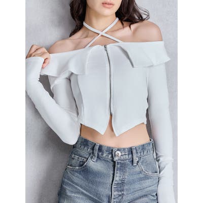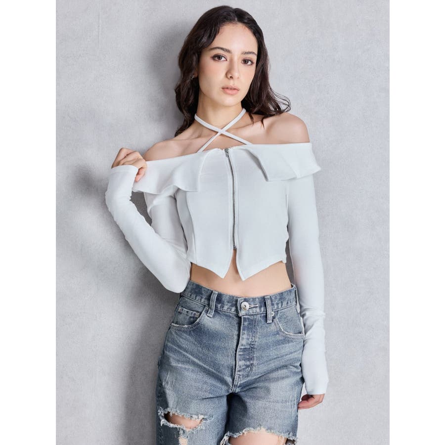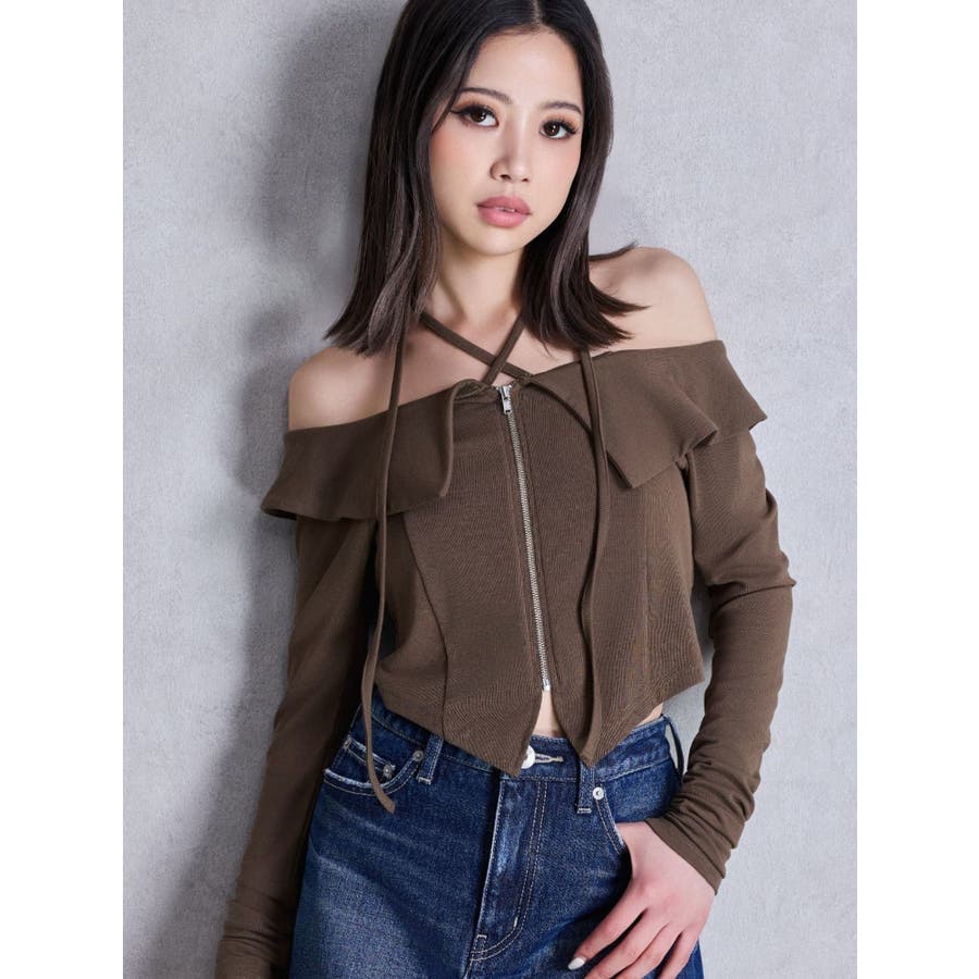 ■デザイン オフショルディテール+クロスチョーカー+ショートな着丈+フロントZIPのデザインが、 GYDAらしいセクシーでedgeを効かせた拘りポイント。 素材も伸縮性に優れ、肌なじみも抜群です。 *脇部分に紐を付けているので、オフショルで着用した際に、紐をクロスし後ろ首部分でリボン結びにして着用してください。 ■スタイリング ハイウエストのフレアデニム合わせがマストです。 ■商品のお気に入り登録 再入荷通知やラスト1点、お得なプライスダウンの情報も受け取ることができます。 ぜひご登録ください◎ ・・・・・・・・・・・・・・・・・・・・・・ ※着用画像はフラッシュの加減で実際の製品と色味等が異なる場合がございますので、生地のズームアップ画像をご確認ください。 ※ご利用の端末画面の設定により実際の商品と色味が異なる場合がございます。