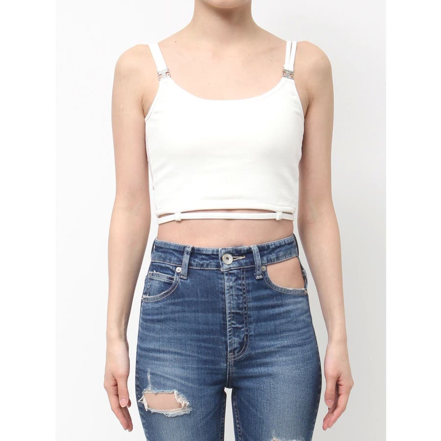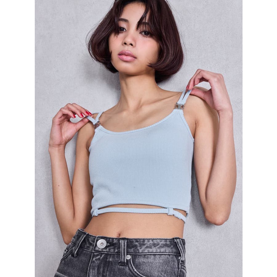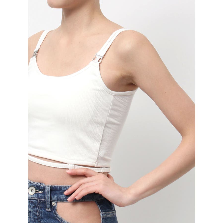 ■デザイン ウエストのバインダーとSymmetry GYDAのチャームが特徴的なビスチェです。 ウエストにバインダーがあることで抜け感が出てスタイルアップ効果があります。 また、パットが入っているのでインナーを気にすることなく着用していただけます。 ■スタイリング 1枚着用のトップスとしてデニムとあわせるのももちろんおすすめですが、 カーディガンやパーカーのインナーとしてもご使用していただけます。 ■商品のお気に入り登録 再入荷通知やラスト1点、お得なプライスダウンの情報も受け取ることができます。 ぜひご登録ください◎ ・・・・・・・・・・・・・・・・・・・・・・ ※着用画像はフラッシュの加減で実際の製品と色味等が異なる場合がございますので、生地のズームアップ画像をご確認ください。 ※ご利用の端末画面の設定により実際の商品と色味が異なる場合がございます。【商品特徴】透け感:なし伸縮性:ややあり生地の厚さ:普通サイズ感:細身裏地:なしポケット:なし