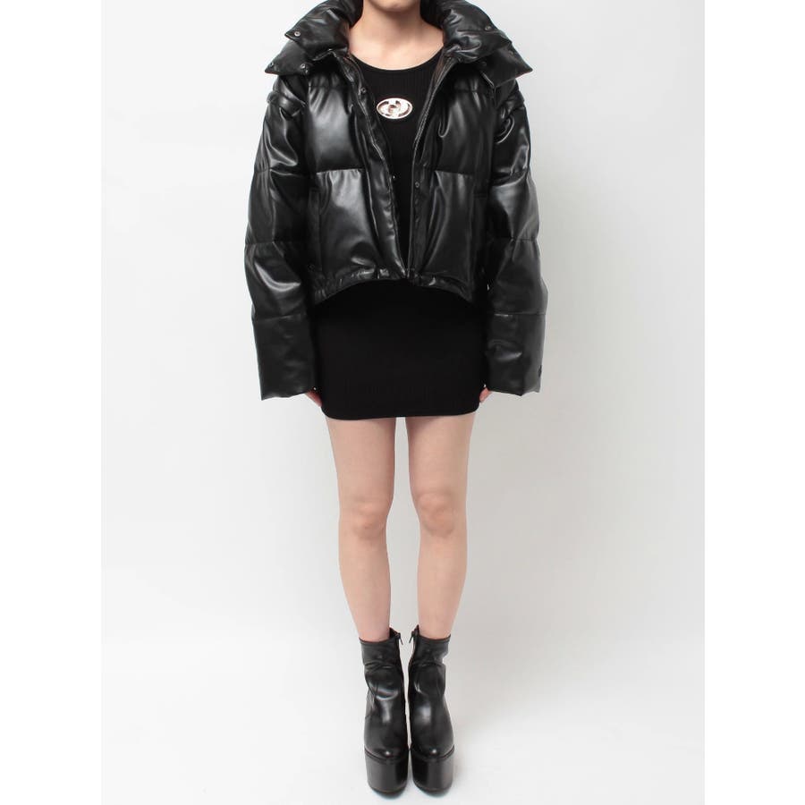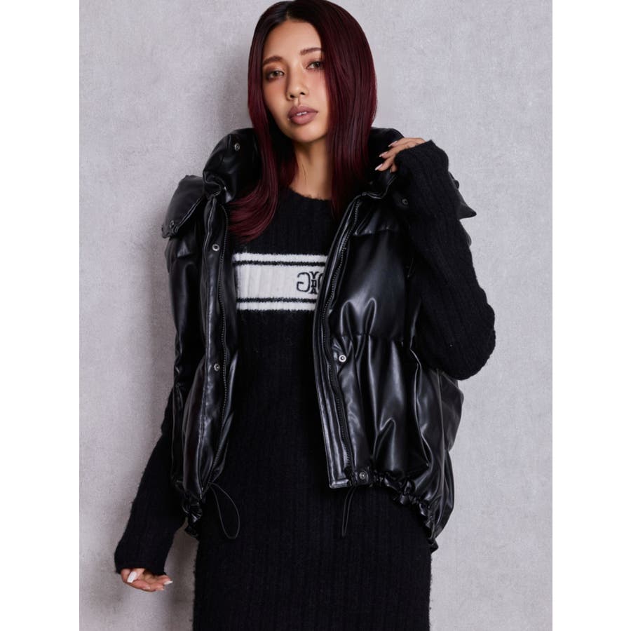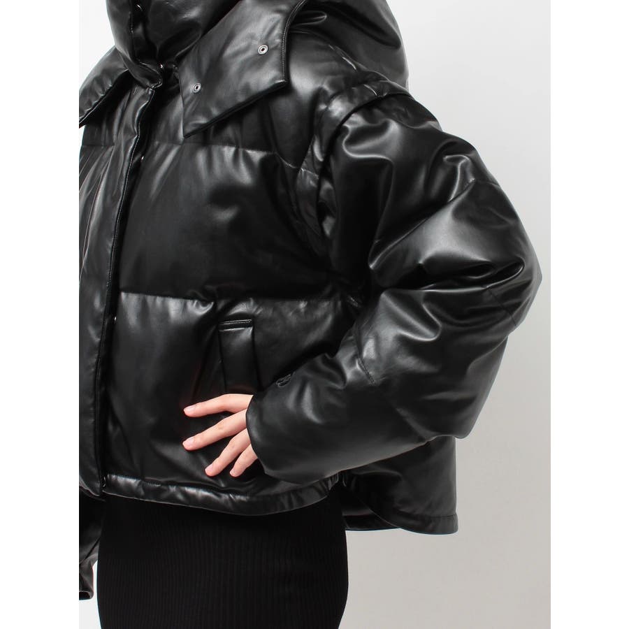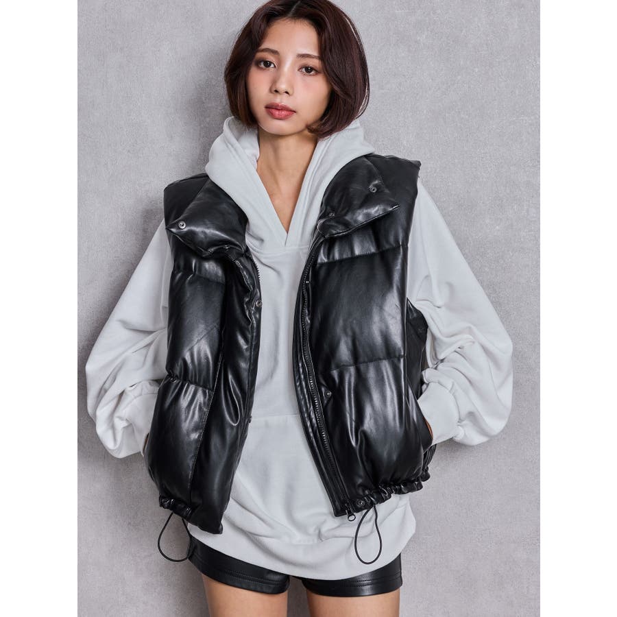 | 素材 | 表地:合成皮革 裏地:ポリエステル55% レーヨン45% 詰物:ダウン90% フェザー10% リブ:ポリエステル98% ポリウレタン2% |