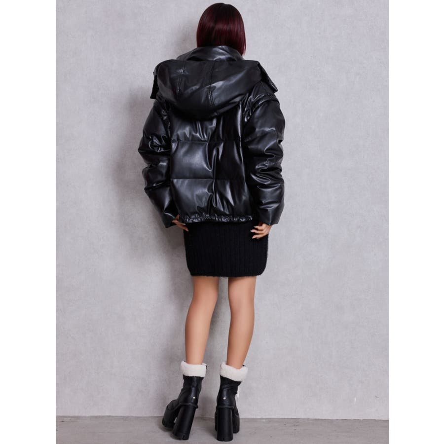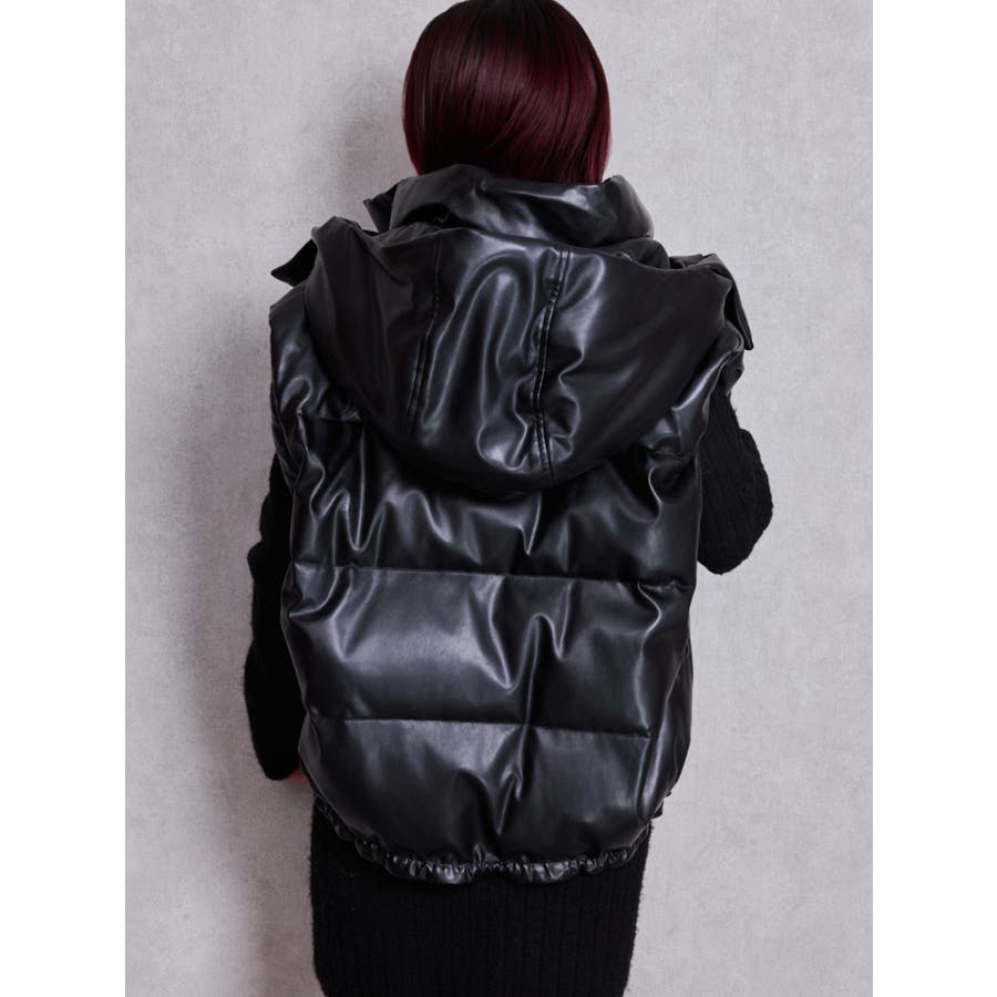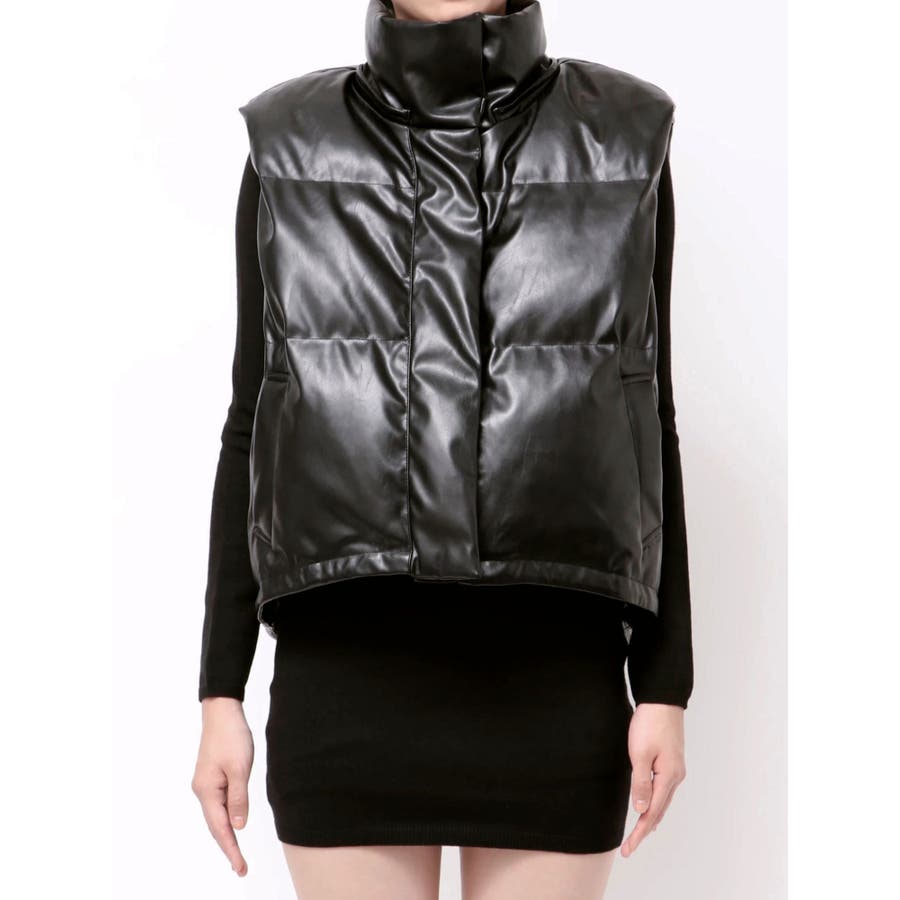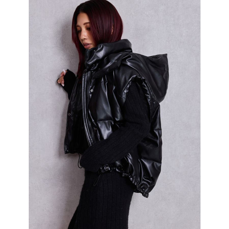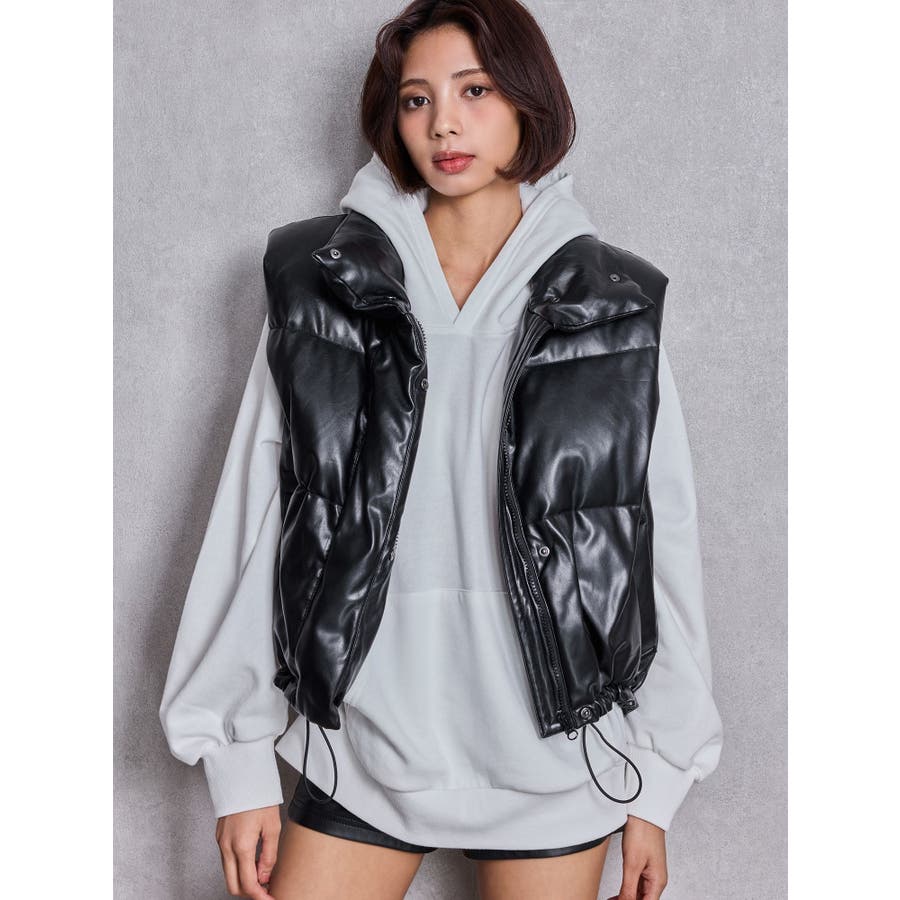 | 素材 | 表地:合成皮革 裏地:ポリエステル55% レーヨン45% 詰物:ダウン90% フェザー10% リブ:ポリエステル98% ポリウレタン2% |