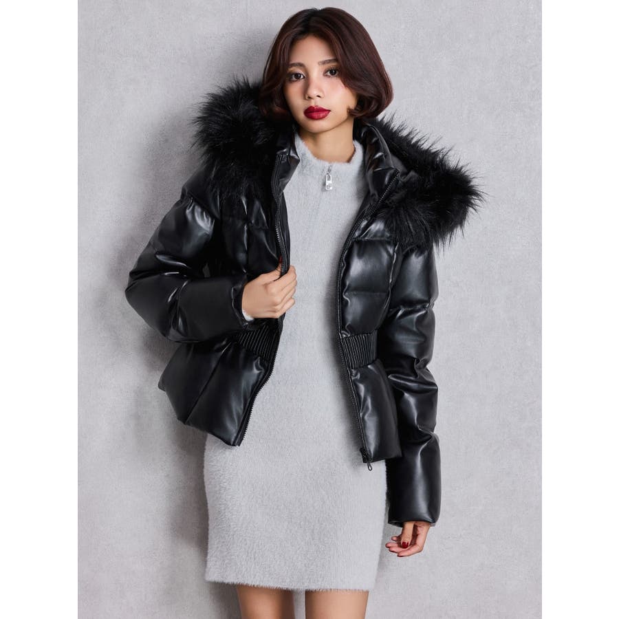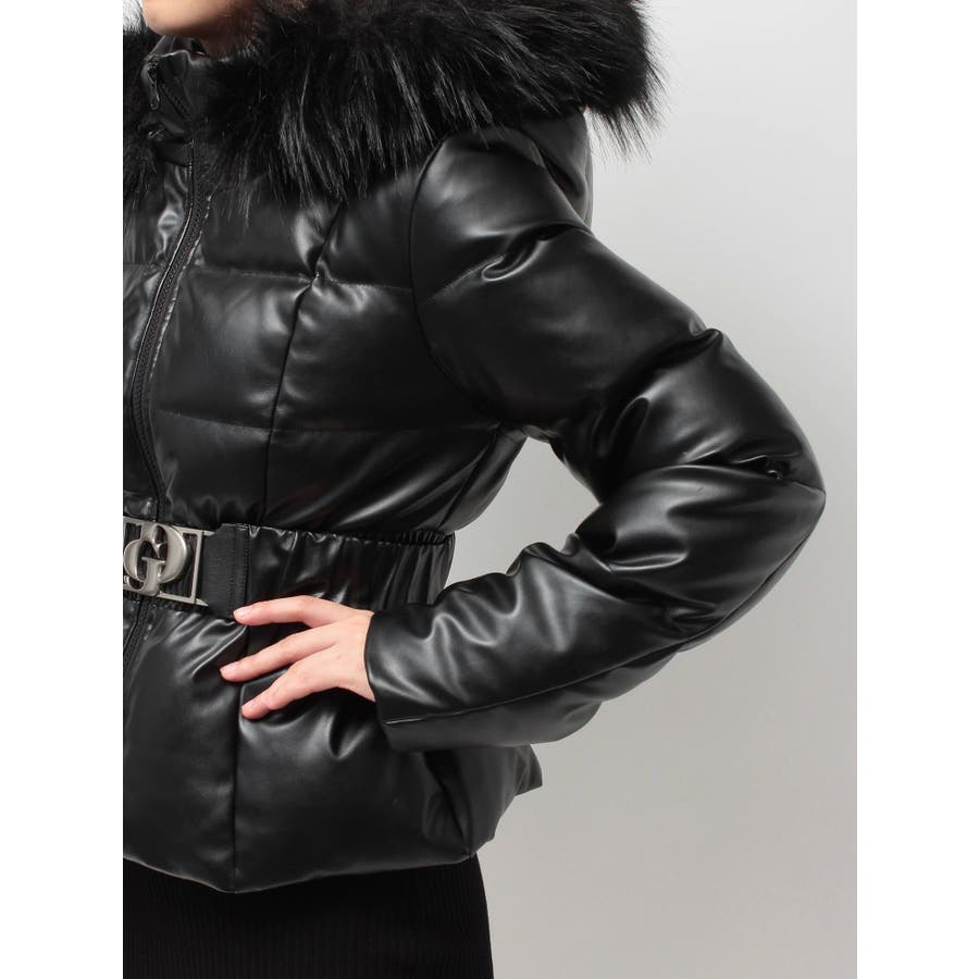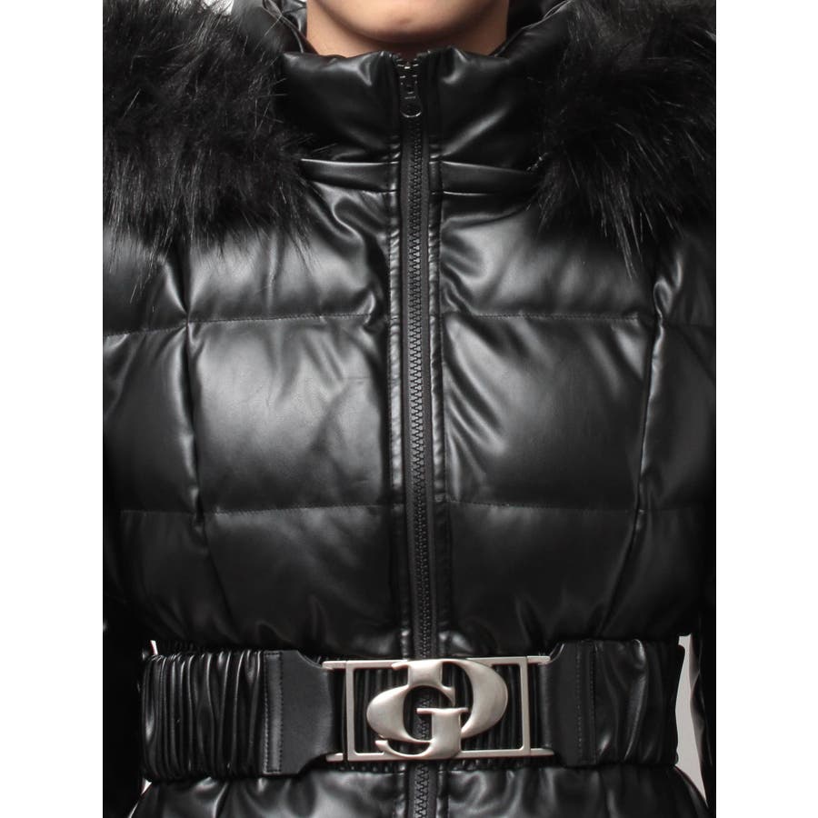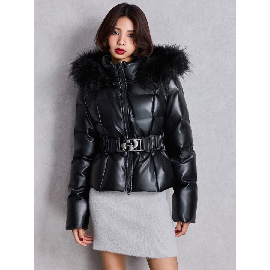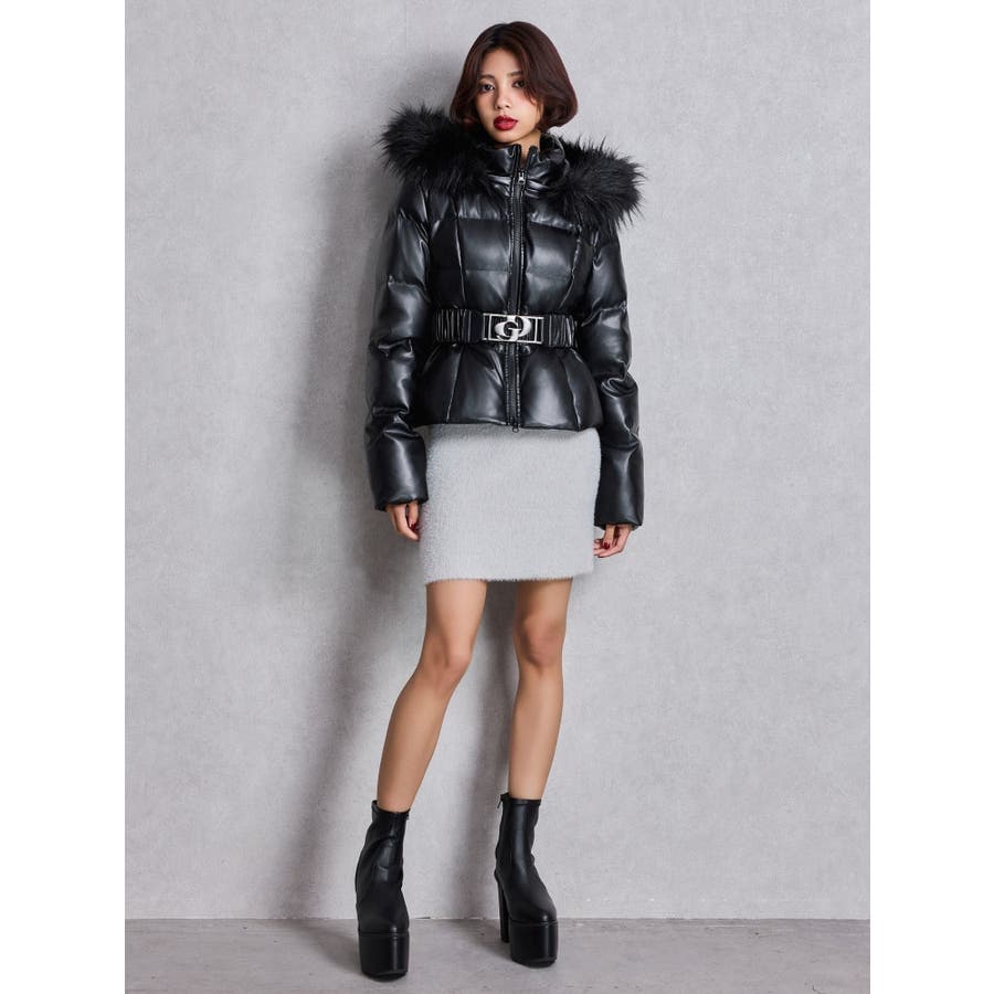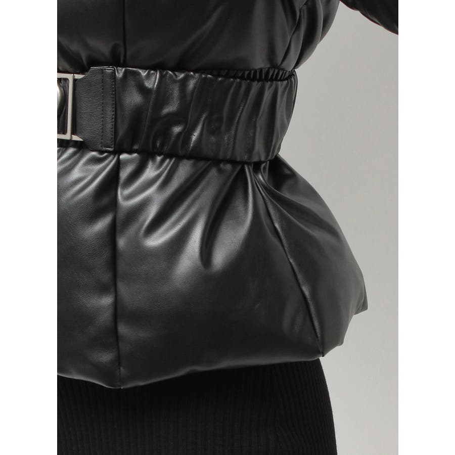 GDベルト付きフェイクレザーショートダウンコート