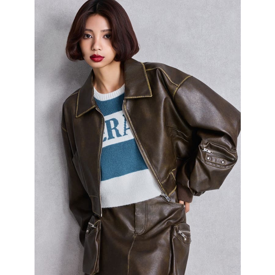 URBAN EDGEフェイクレザーユーティリティーブルゾン
