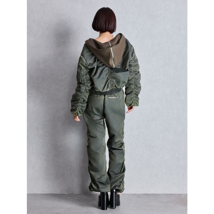 | 素材 | 表地:ナイロン100% 裏地:ポリエステル100% 別布(フード部分)ポリエステル70% 綿30% リブ:ポリエステル70% 綿30% 中わた:ポリエステル100% |
