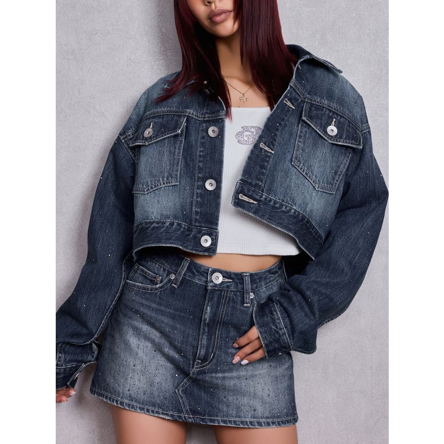■デザイン トレンド感たっぷりのビジューが、ボディー全体施されたデニムGジャン。 何と合わせても、スタイルアップになるショートの着丈ですが、 バストは広めなので抜け感のバランスも抜群のシルエット◎ 後ろヨーク部分にも”GD bijou MOLD”を施しヘルシーな肌みせがGYDAらしいデザインポイントです。 ■スタイリング タイトワンピース×ショートブーツ ハイウエストボトム×タイトトップス ワイドボトム×ショートトップスの組み合わせがおススメです。 ■商品のお気に入り登録 再入荷通知やラスト1点、お得なプライスダウンの情報も受け取ることができます。 ぜひご登録ください◎ ・・・・・・・・・・・・・・・・・・・・・・ ※着用画像はフラッシュの加減で実際の製品と色味等が異なる場合がございますので、生地のズームアップ画像をご確認ください。 ※ご利用の端末画面の設定により実際の商品と色味が異なる場合がございます。