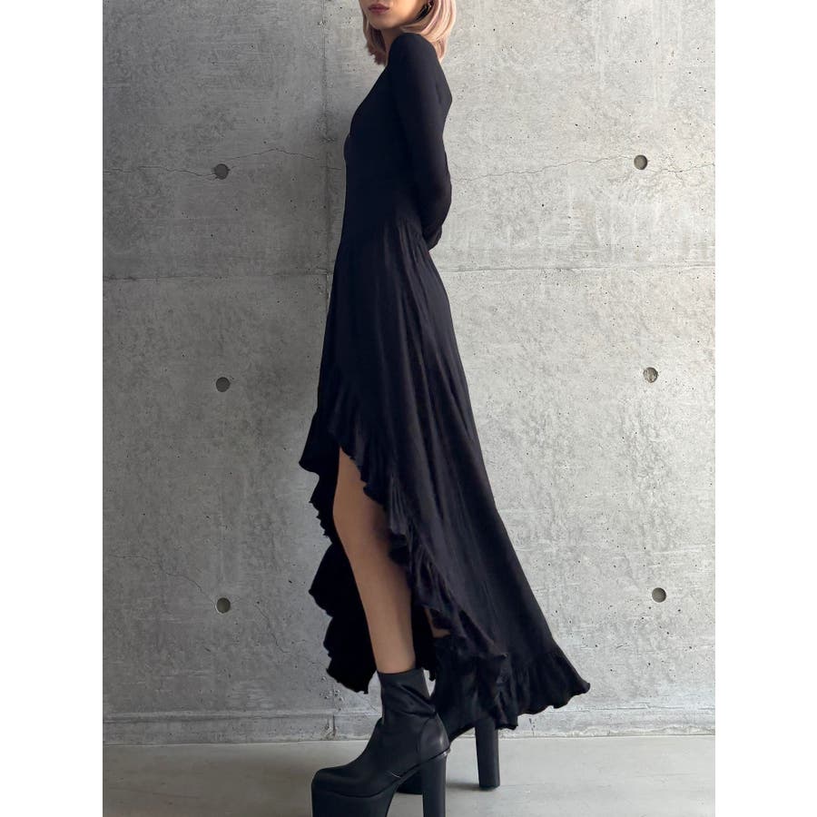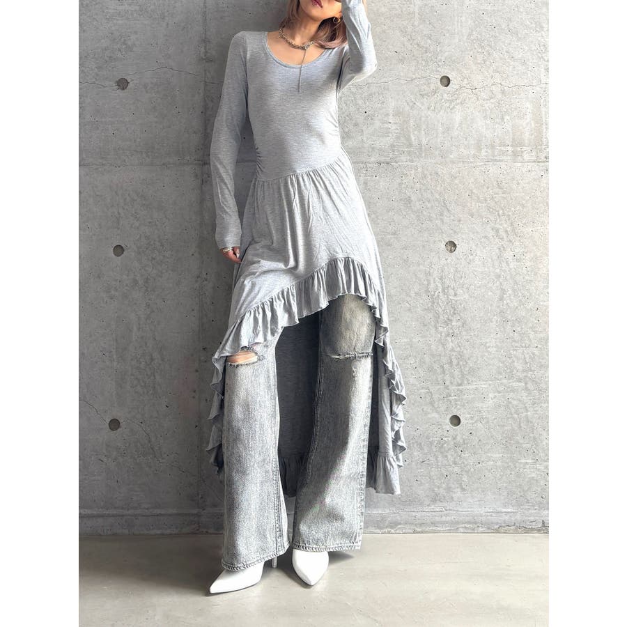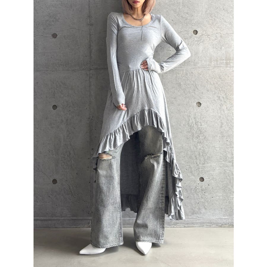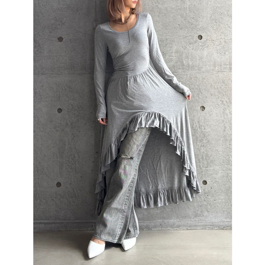【TINY】150-156cmの低身長の方向けのTINYシリーズ。 ■デザイン 肌触りの良いカットソー素材で程よいフィット感、トレンド感のあるアシンメトリーのデザインに女性らしいフリルディテールは合わせる小物で自由自在!! ウエスト切替やアシンメトリーのスリットで立体感がありメリハリが出て1枚で存在感があるワンピースです。 ■スタイリング ブーツ合わせや、デニムボトムにウエストベルトでレイヤーコーデも楽しめます。 ■商品のお気に入り登録 再入荷通知やラスト1点、お得なプライスダウンの情報も受け取ることができます。 ぜひご登録ください◎ ・・・・・・・・・・・・・・・・・・・・・・ ※着用画像はフラッシュの加減で実際の製品と色味等が異なる場合がございますので、生地のズームアップ画像をご確認ください。 ※ご利用の端末画面の設定により実際の商品と色味が異なる場合がございます。【商品特徴】透け感:なし伸縮性:あり生地の厚さ:普通サイズ感:普通裏地:なしポケット:なしファスナー:なし