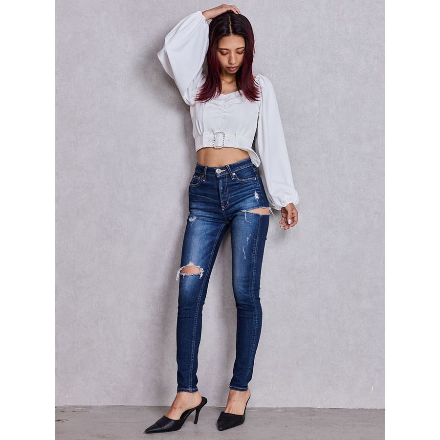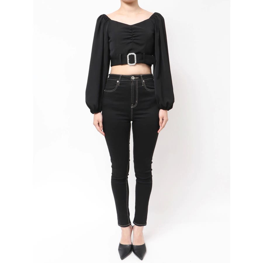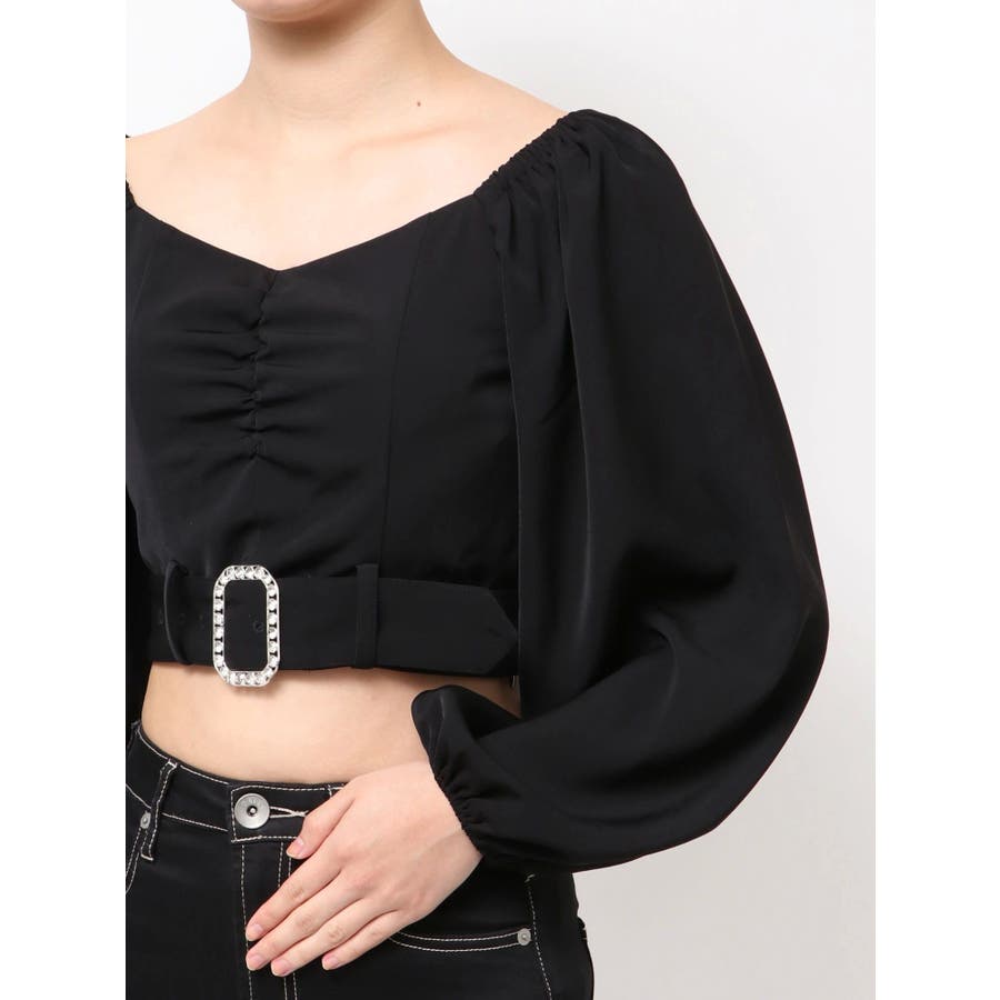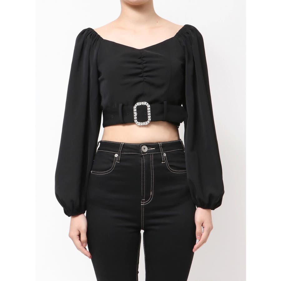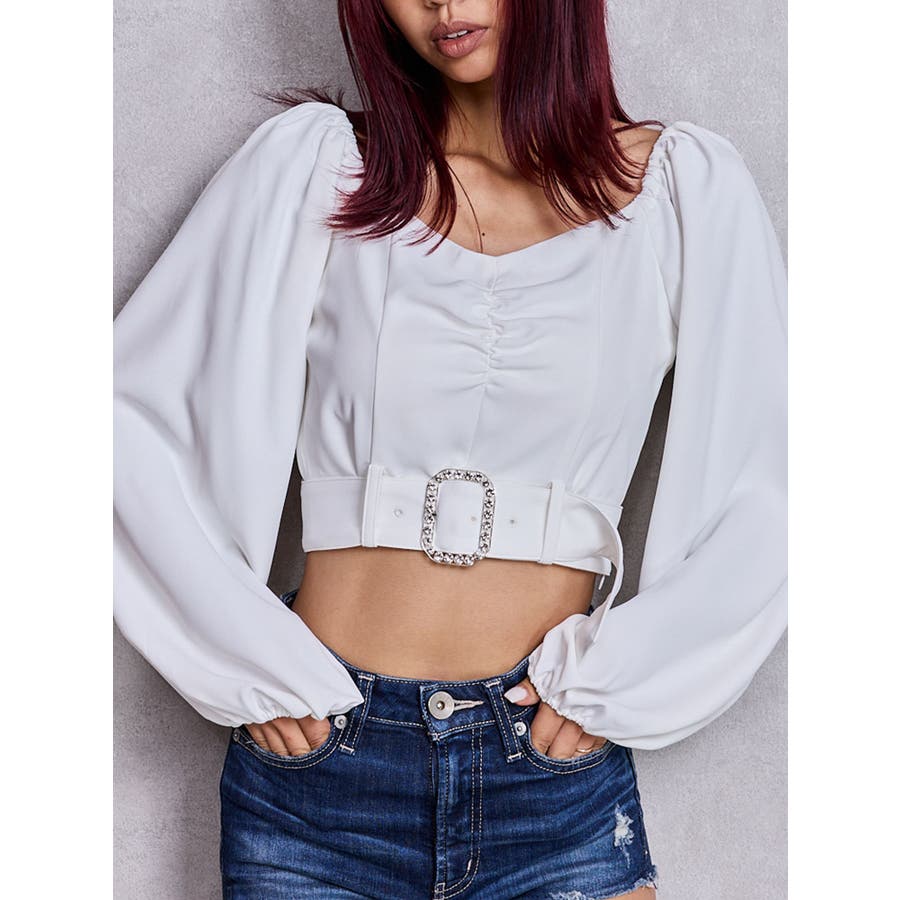 bijouバックルlong sleeveブラウス