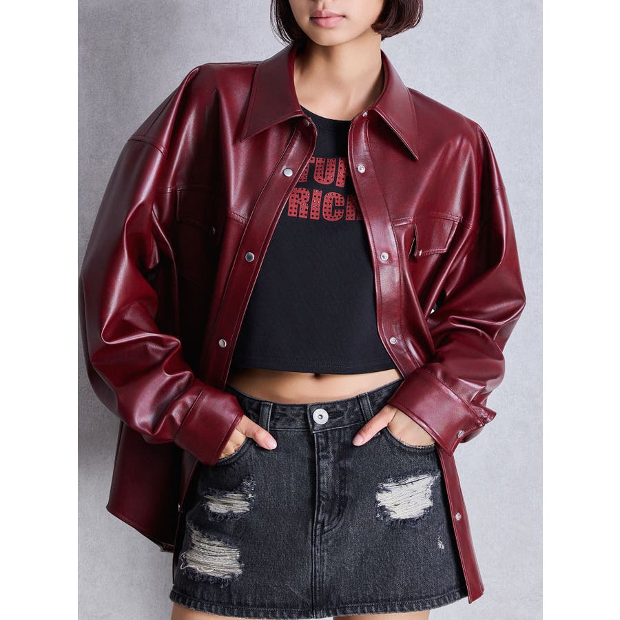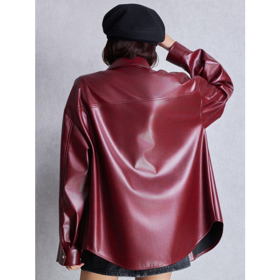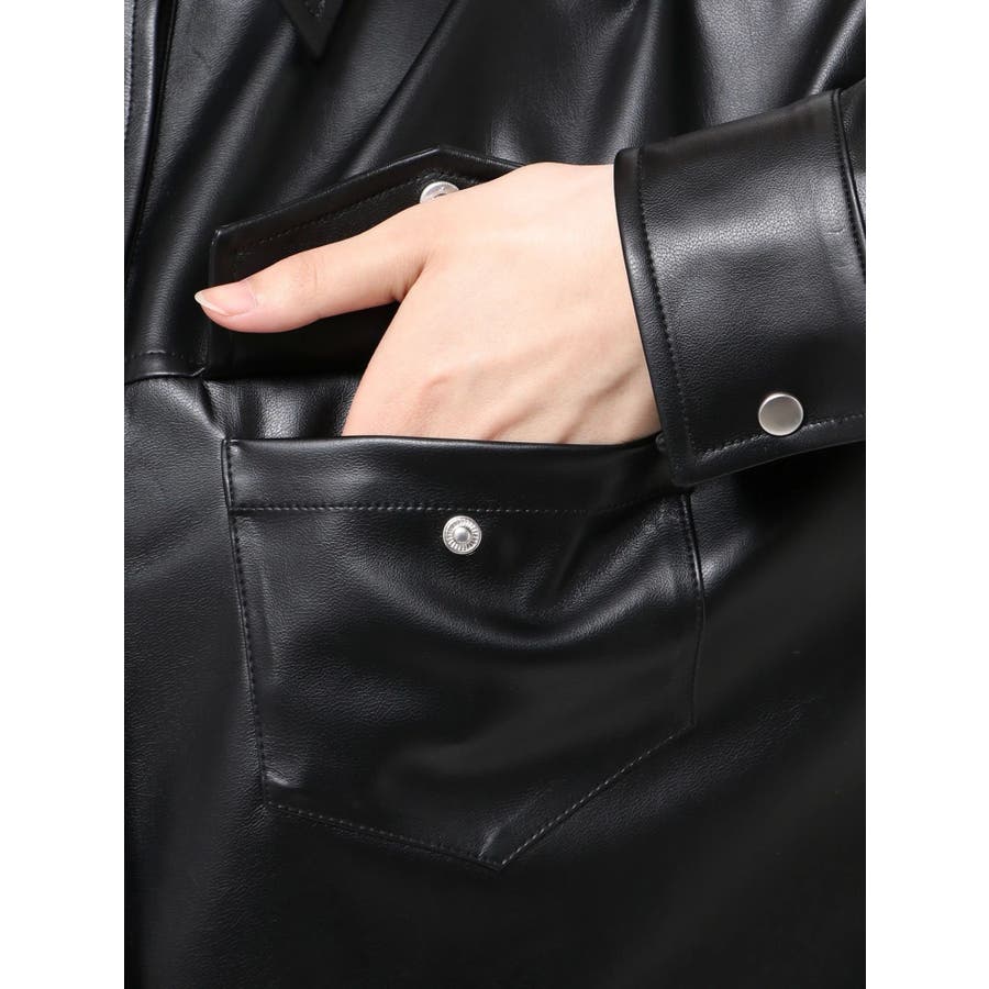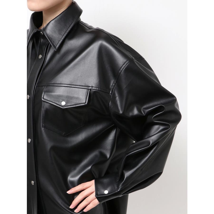 ■デザイン トレンド感あるフェイクレザー生地を使用した、デイリー使いしやすいシャツです。 シンプルなデザインながらバックロングでチュニック丈でも着用可能。 胸ポケットデザインで目線を上に持って行くことによってスタイルアップ効果。 ■スタイリング 厚すぎない柔らかい生地なのでベルトを締めるたりアウターの中に着ても◎ 羽織としても使用でき様々なスタイリングが可能です。 ■商品のお気に入り登録 再入荷通知やラスト1点、お得なプライスダウンの情報も受け取ることができます。 ぜひご登録ください◎ ・・・・・・・・・・・・・・・・・・・・・・ ※着用画像はフラッシュの加減で実際の製品と色味等が異なる場合がございますので、生地のズームアップ画像をご確認ください。 ※ご利用の端末画面の設定により実際の商品と色味が異なる場合がございます。