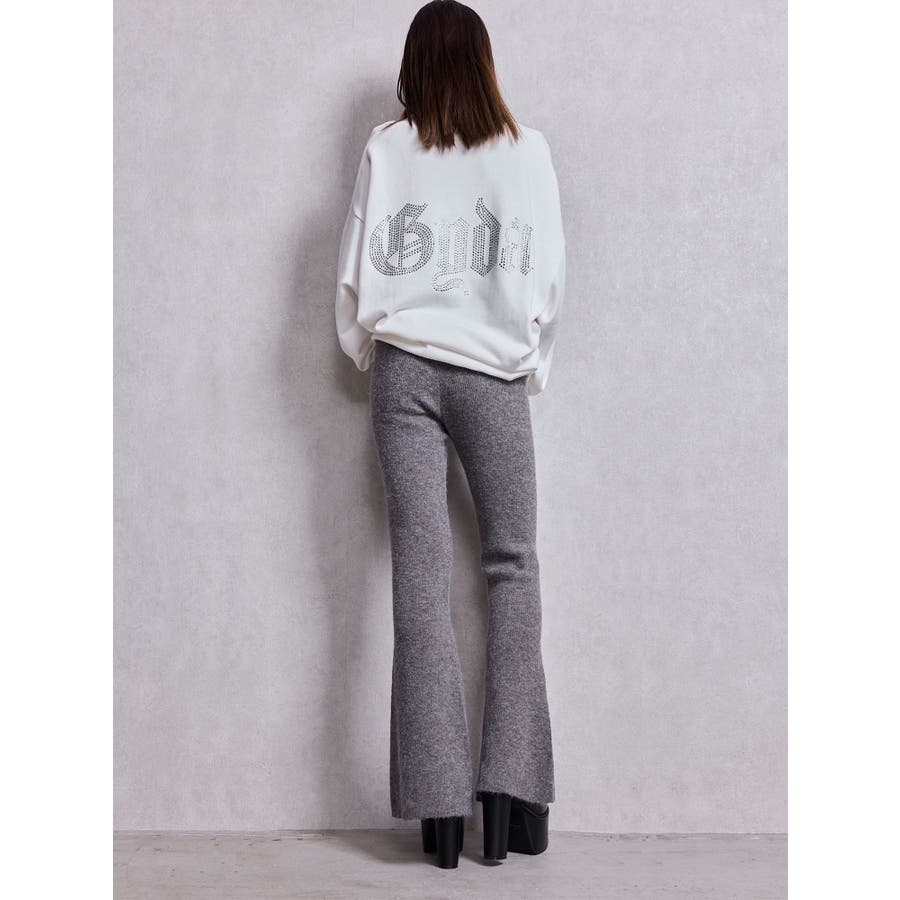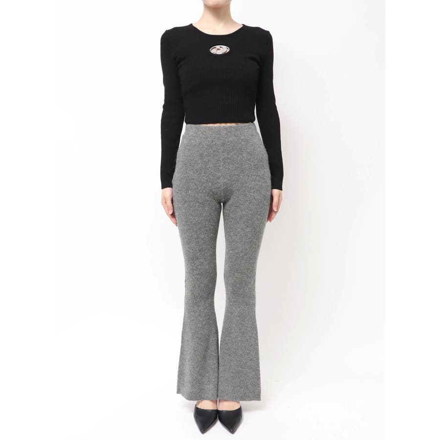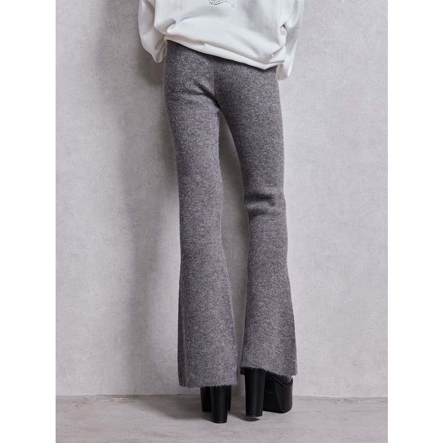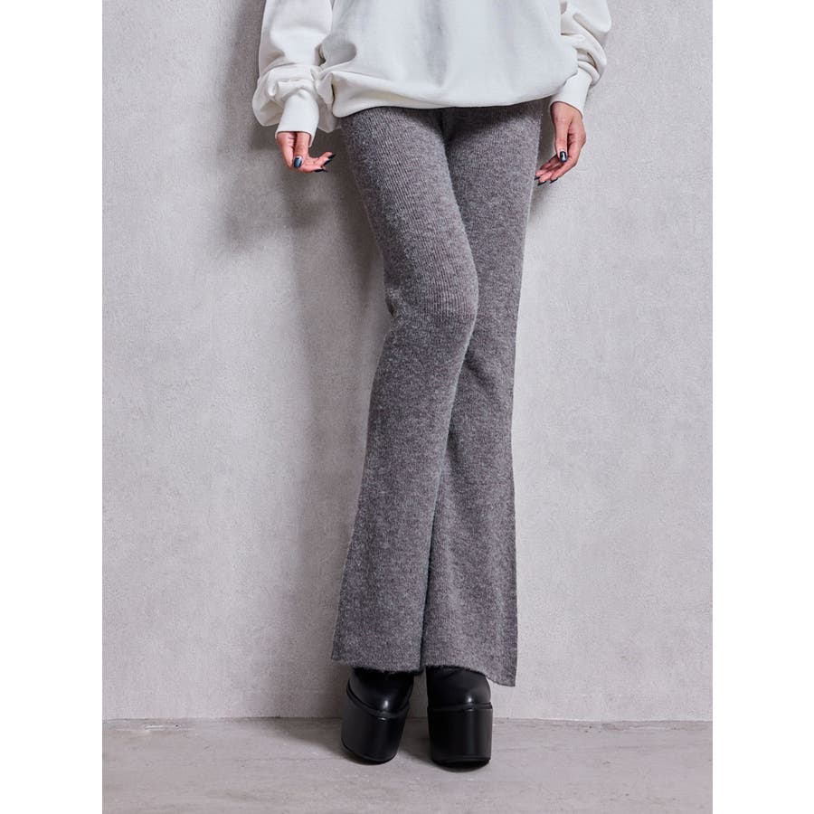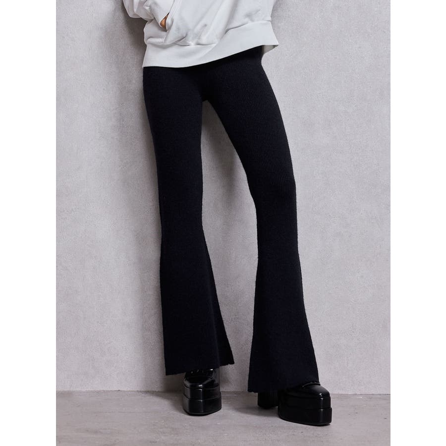 ■商品コメント:脚のラインを綺麗に見せてくれるニットフレアパンツで、脚長・スタイルアップ効果抜群です。 コーデ:ビッグシルエットのニットトップスやスウェットに合わせるのがおすすめです。