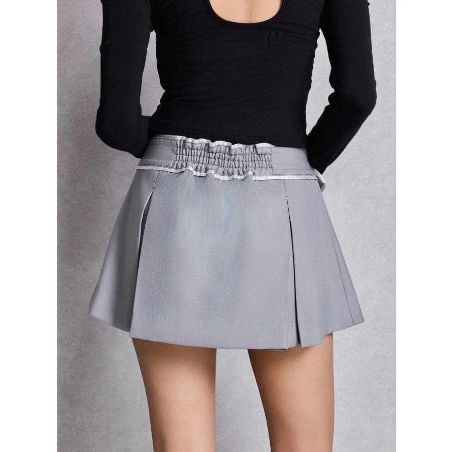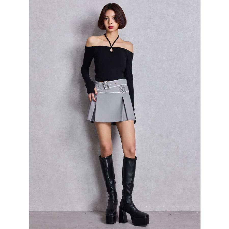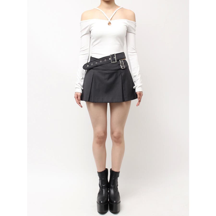 ■デザイン 斜めのベルトデザインが特徴的なスカート。 ラメで縁取られていることで高級感も。 中にはインナーパンツがついているので安心して着用していただけます。 ■スタイリング ショートトップスとの合わせがマストです。 スニーカー合わせでカジュアルにしたりロングブーツ合わせできれい目にしたり幅広いコーデで楽しんでいただけます。 ■商品のお気に入り登録 再入荷通知やラスト1点、お得なプライスダウンの情報も受け取ることができます。 ぜひご登録ください◎ ・・・・・・・・・・・・・・・・・・・・・・ ※着用画像はフラッシュの加減で実際の製品と色味等が異なる場合がございますので、生地のズームアップ画像をご確認ください。 ※ご利用の端末画面の設定により実際の商品と色味が異なる場合がございます。 【商品特徴】透け感: なし伸縮性:なし生地の厚さ:普通サイズ感:普通裏地:ありポケット:なし