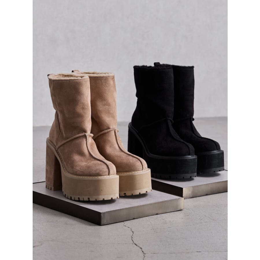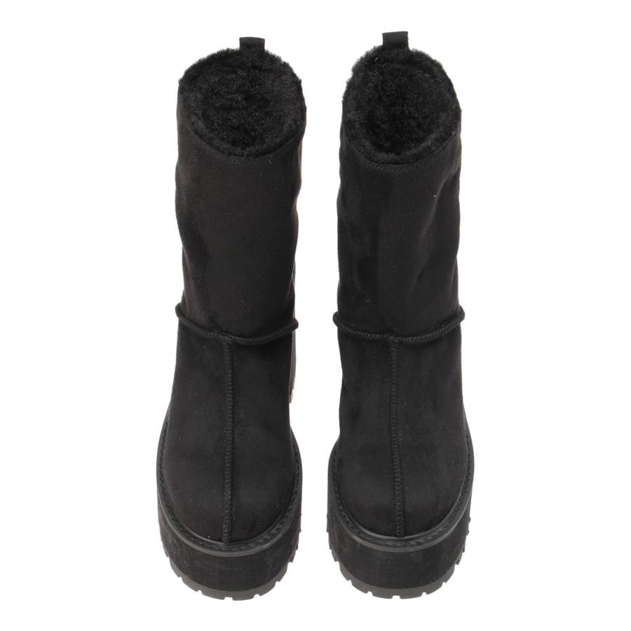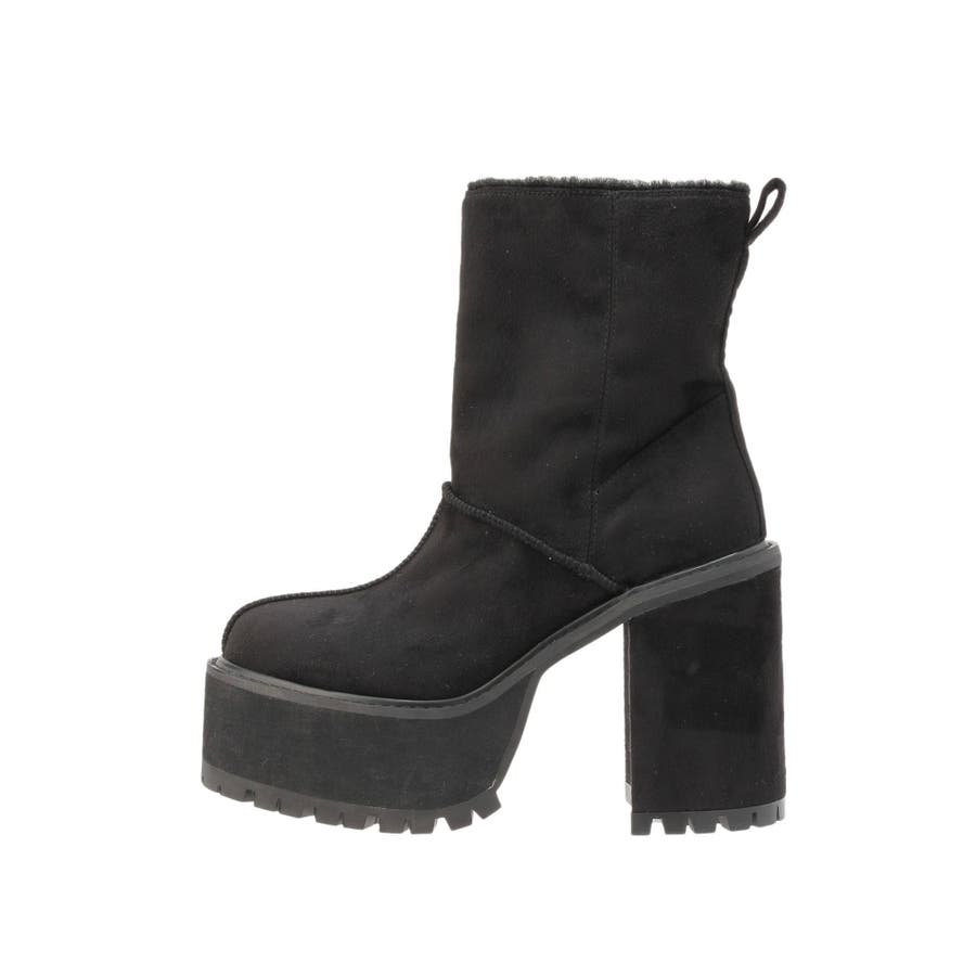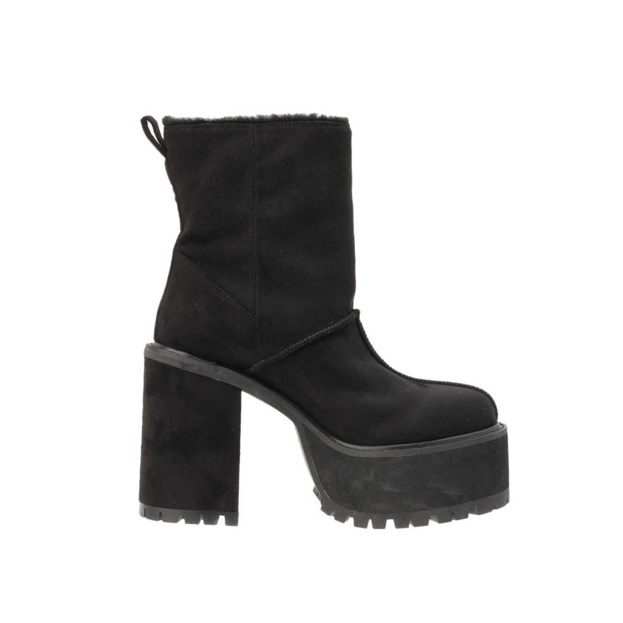 【ブラック】フェイクムートンplatformショートブーツ