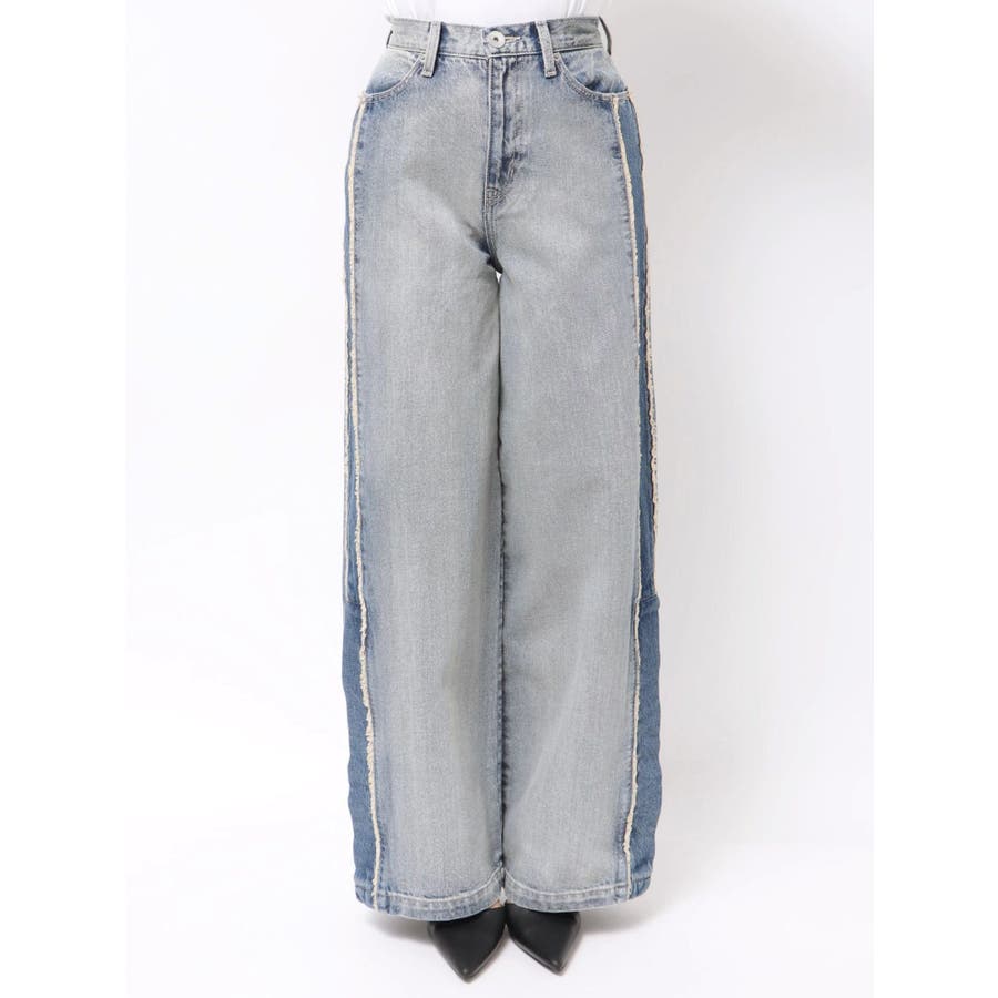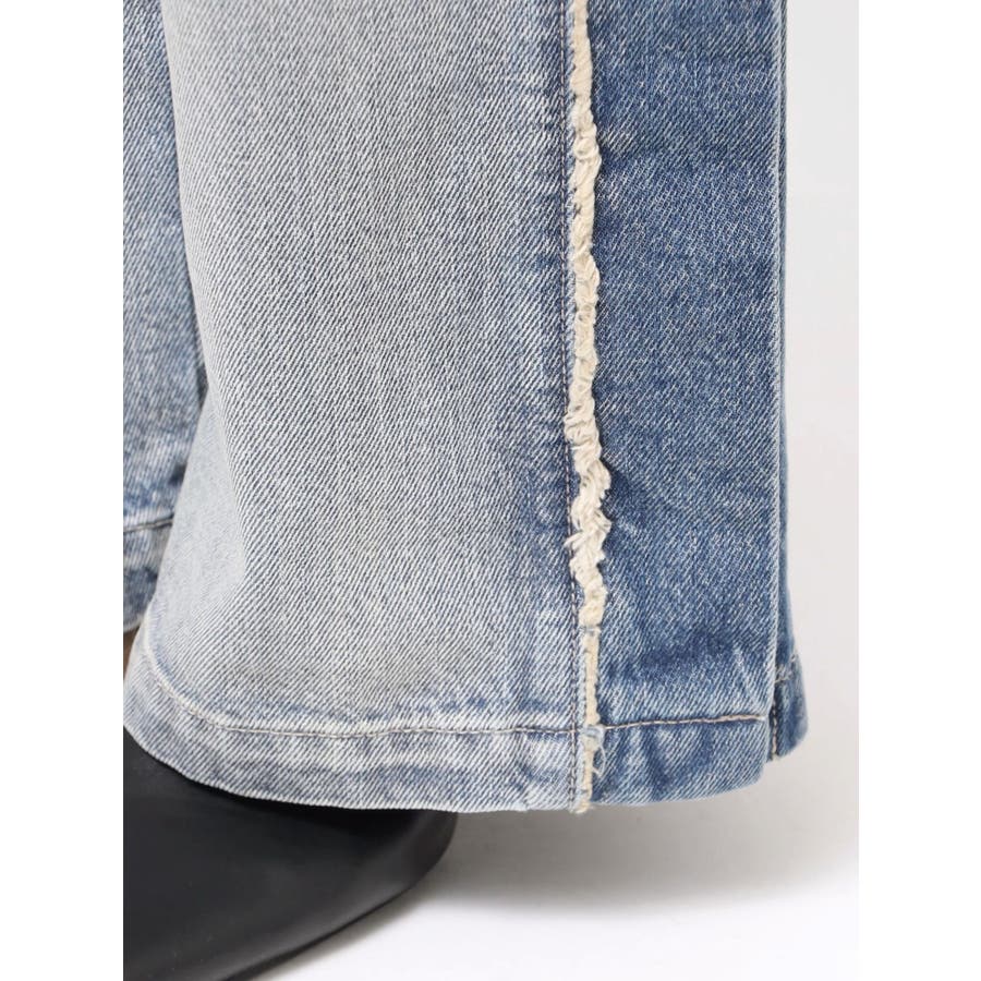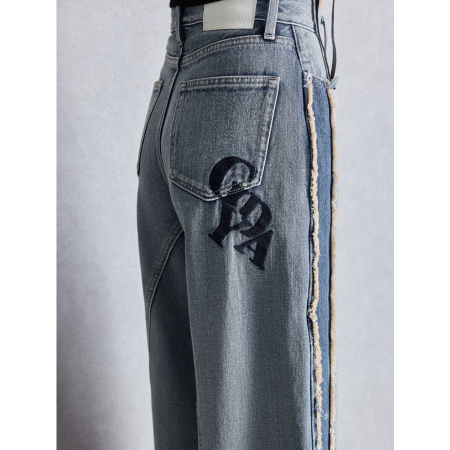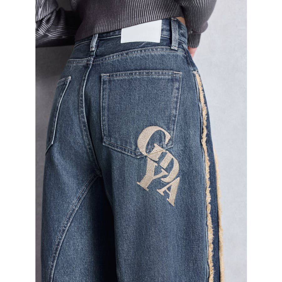 ■デザイン サイド部分に濃淡デニムの切り替えとフリンジデザインを施し、立体感と動きをプラス。 裾のスナップボタンがついており、スリット開けて穿くことで 抜け感のあるシルエットやシューズを見せることができるのも拘りポイント。 脚のラインを拾わないハイウエストワイドシルエットと、ヴィンテージ感のある風合い、 後ろポケット部分に施したGYDA(ジェイダ)ロゴ刺繍が、カジュアルながらも魅力の詰まった一本です。 ■スタイリング ハイウエストなので、ショートトップス合わせで、 シューズはブーツやスニーカー合わせでスリットから見せるスタイリングがおススメです。 ■商品のお気に入り登録 再入荷通知やラスト1点、お得なプライスダウンの情報も受け取ることができます。 ぜひご登録ください◎ ・・・・・・・・・・・・・・・・・・・・・・ ※着用画像はフラッシュの加減で実際の製品と色味等が異なる場合がございますので、生地のズームアップ画像をご確認ください。 ※ご利用の端末画面の設定により実際の商品と色味が異なる場合がございます。【商品特徴】透け感:なし伸縮性:なし生地の厚さ:普通サイズ感:ゆったり裏地:なしポケット:あり(前/後)