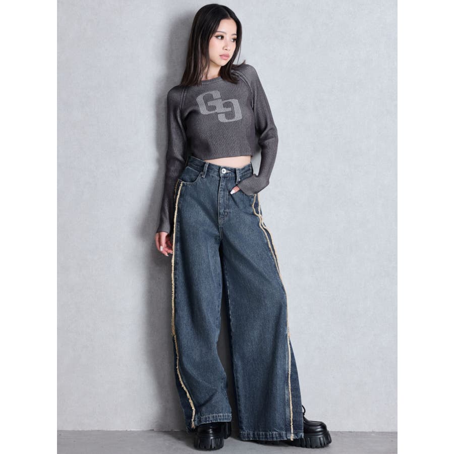 ハイウエストside slit GYDAワイドデニムパンツ
