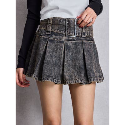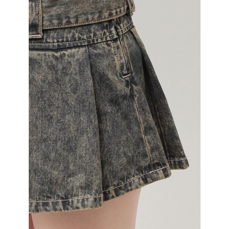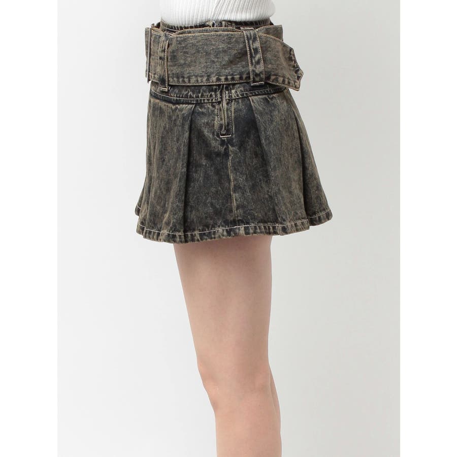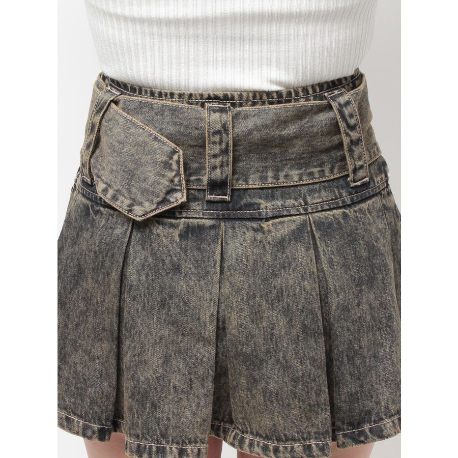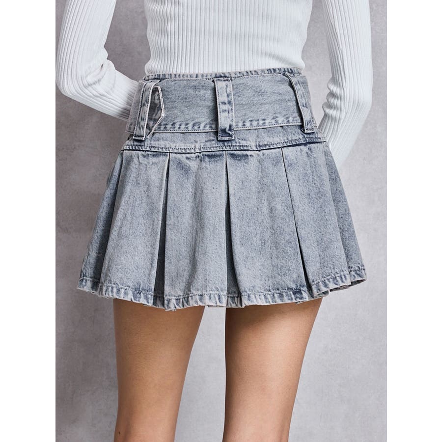 ハイウエストWIDE BELTプリーツデニムスカートライクショートパンツ
