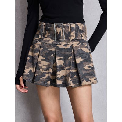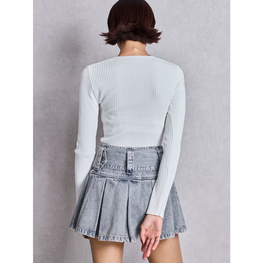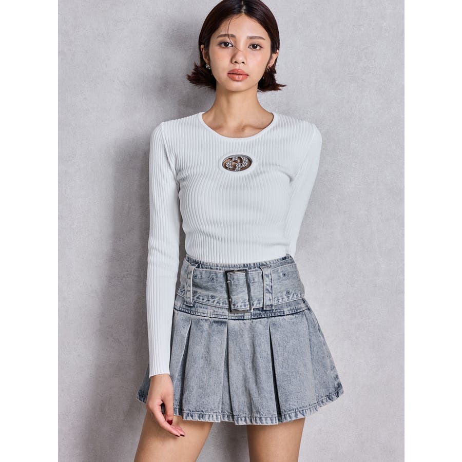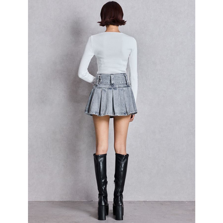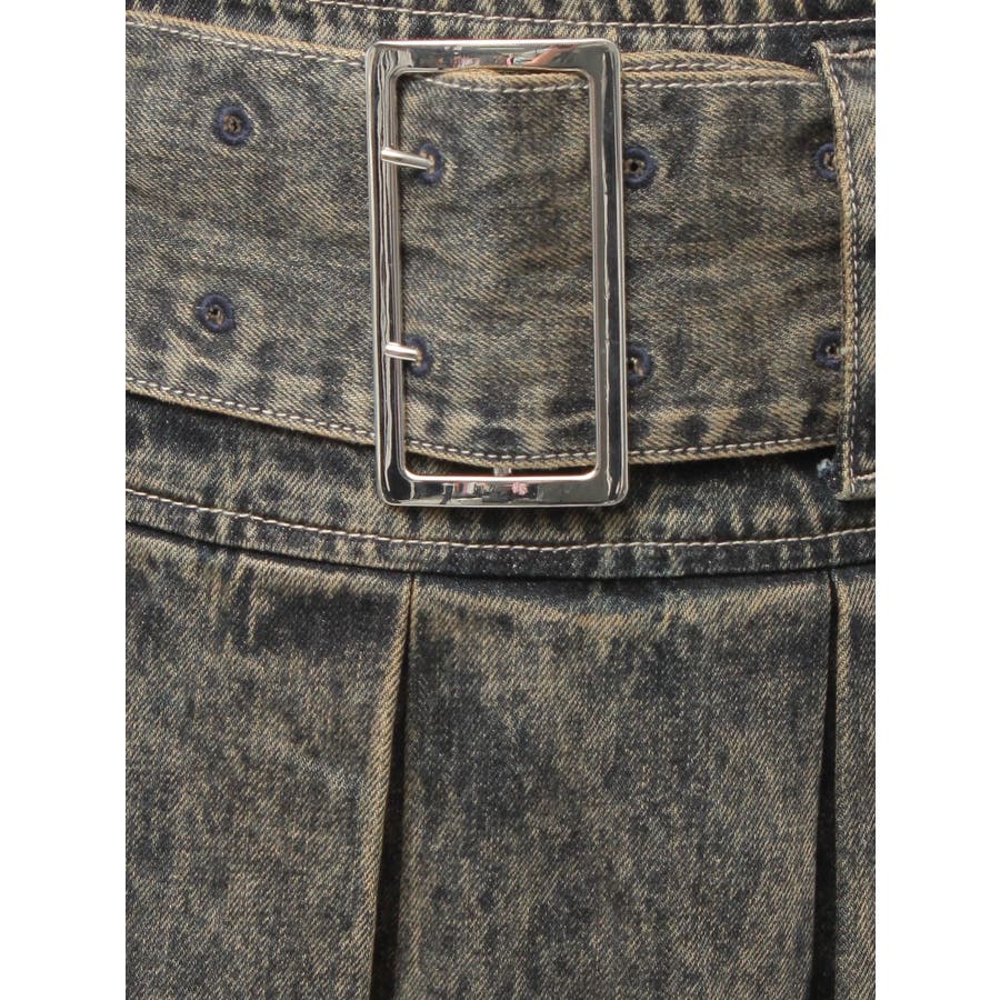 ハイウエストWIDE BELTプリーツデニムスカートライクショートパンツ