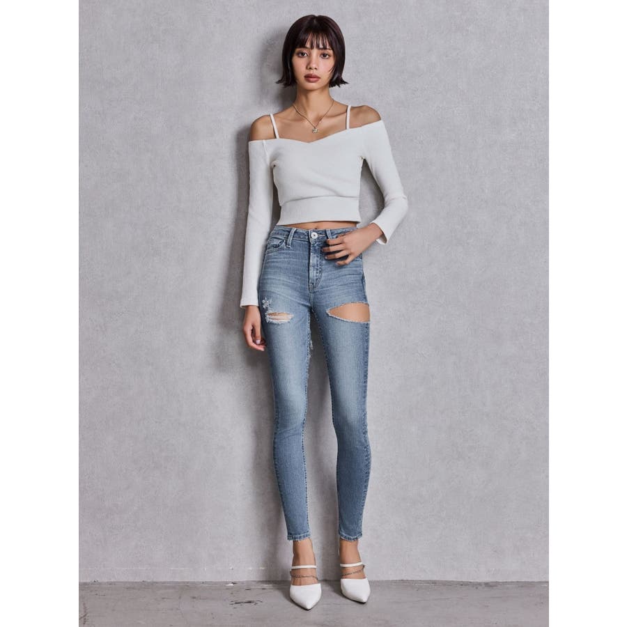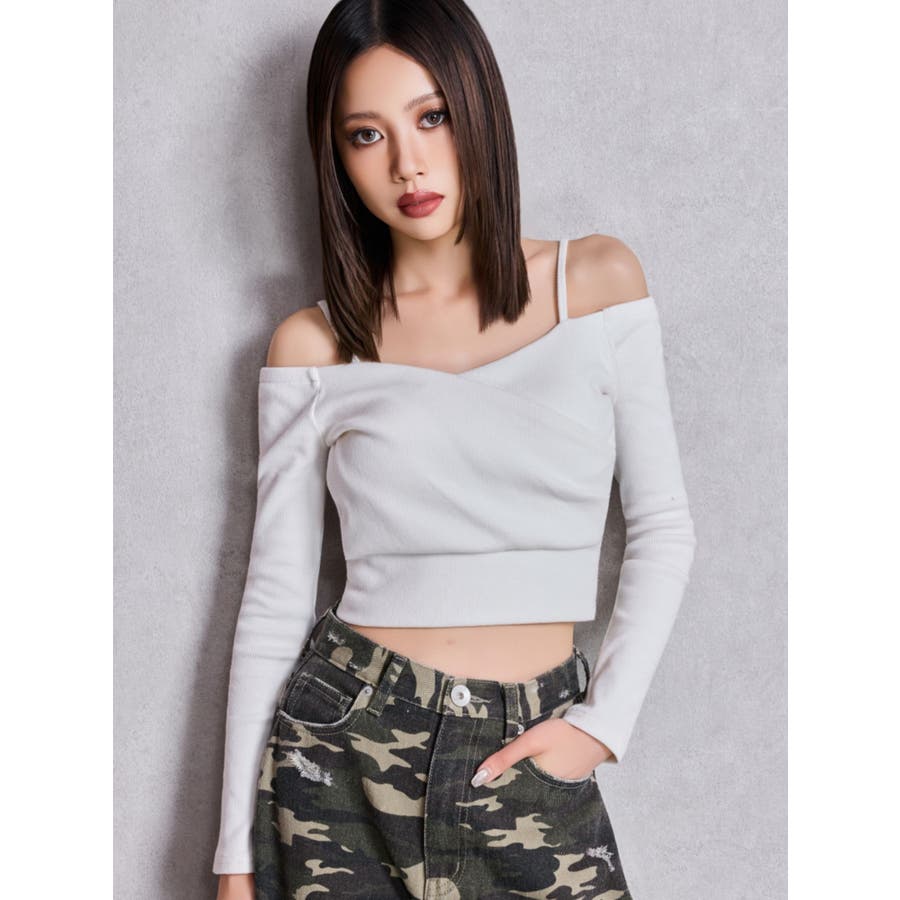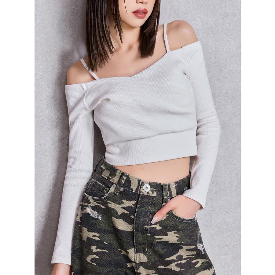 ■デザイン GYDA(ジェイダ)定番アイテム。 ショートオフショルトップスの中でもヘビロテアイテム。 オフショル・カシュクールの胸元やシルエットがSEXYな1枚です。 ストレッチ感もある目の詰まったリブ素材を使用。 パッド入りで、胸元が浮かないようにタイトにしています。 袖巾も肌に張り付くような細身ですが、伸縮性があるので着心地抜群です。 ■スタイリング ハイウエストボトム合わせがおすすめです。 シャツなどのインナー使いにも最適な1枚です。 ■商品のお気に入り登録 再入荷通知やラスト1点、お得なプライスダウンの情報も受け取ることができます。 ぜひご登録ください◎ ・・・・・・・・・・・・・・・・・・・・・・ ※着用画像はフラッシュの加減で実際の製品と色味等が異なる場合がございますので、生地のズームアップ画像をご確認ください。 ※ご利用の端末画面の設定により実際の商品と色味が異なる場合がございます。 【商品特徴】透け感:なし伸縮性:ややあり生地の厚さ:普通サイズ感:細身裏地:なしポケット:なし