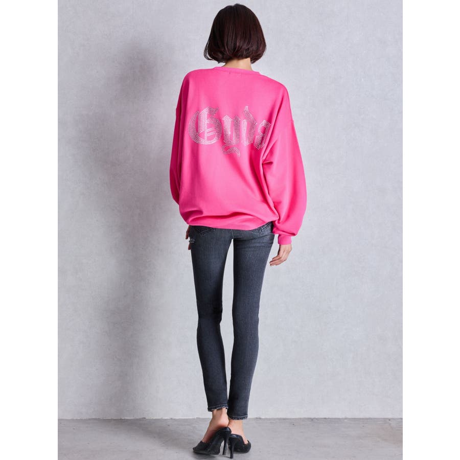 ■デザイン グレーは【WEB限定】カラー!! フロントにGGとthe die is cast=賽は投げられたがラメ刺繍で入っていて、 バックに人気のGYDAロゴがラインストーンではいっているプルオーバーです。 サイズ感は大きめなのでユニセックスで着用可能です。 ■スタイリング 下にミニボトムスを合わせてワンピース風に着るのがGYDA(ジェイダ)らしくておすすめです。 ■商品のお気に入り登録 再入荷通知やラスト1点、お得なプライスダウンの情報も受け取ることができます。 ぜひご登録ください◎ ・・・・・・・・・・・・・・・・・・・・・・ ※着用画像はフラッシュの加減で実際の製品と色味等が異なる場合がございますので、生地のズームアップ画像をご確認ください。 ※ご利用の端末画面の設定により実際の商品と色味が異なる場合がございます。 【商品特徴】透け感(オフホワイトのみ):あり透け感(その他カラー):なし伸縮性:あり生地の厚さ:普通サイズ感:ゆったり裏地:なしポケット:なし