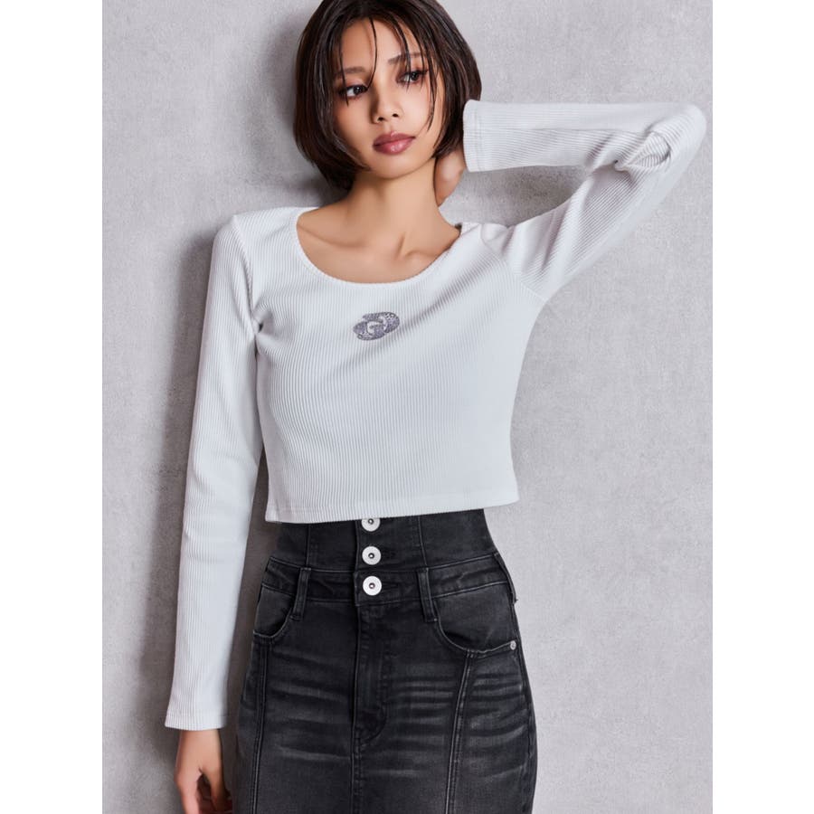 ■デザイン テレコ素材を使用した、タイトショートのシンプルで使いやすいトップス。 フロントにはラインストーンのGDロゴをボールチェーンで囲んでインパクトのあるデザインに仕上げました。 ■スタイリング コンパクトなシルエットなので、ボトムの種類を問わずコーディネートを楽しんでいただけます。 ■商品のお気に入り登録 再入荷通知やラスト1点、お得なプライスダウンの情報も受け取ることができます。 ぜひご登録ください◎ ・・・・・・・・・・・・・・・・・・・・・・ ※着用画像はフラッシュの加減で実際の製品と色味等が異なる場合がございますので、生地のズームアップ画像をご確認ください。 ※ご利用の端末画面の設定により実際の商品と色味が異なる場合がございます。 【商品特徴】透け感:なし伸縮性:あり生地の厚さ:普通サイズ感:細身裏地:なしポケット:なし