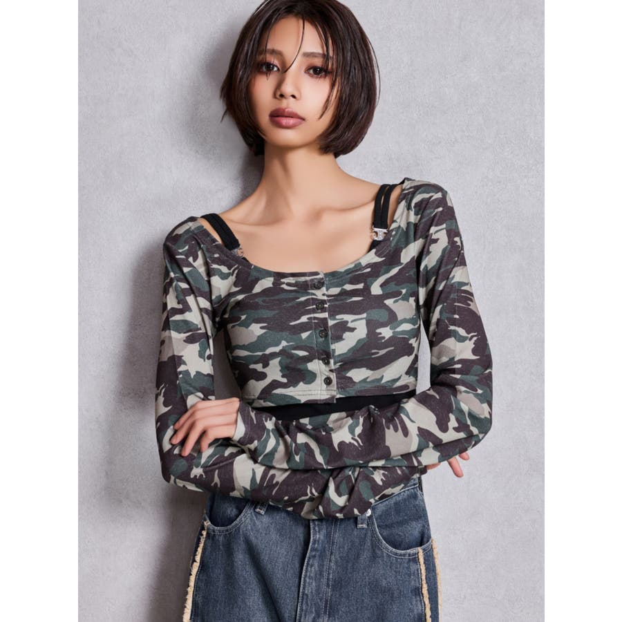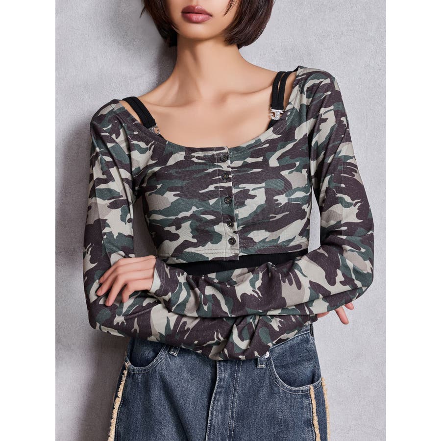 ■デザイン GYDA(ジェイダ) シアーショートトップス フロント釦デザインのカジュアルに仕上げた1枚。 コンパクトなショート丈でハイウエストのボトムスとも相性抜群です。 ■スタイリング 薄手の生地感で着心地が良く、アウターのインナーとしても着回しが効きます。 着回しの効く無地のブラックと、コーデの主役になる迷彩柄のカラー展開です。 ■商品のお気に入り登録 再入荷通知やラスト1点、お得なプライスダウンの情報も受け取ることができます。 ぜひご登録ください◎ ・・・・・・・・・・・・・・・・・・・・・・ ※着用画像はフラッシュの加減で実際の製品と色味等が異なる場合がございますので、生地のズームアップ画像をご確認ください。 ※ご利用の端末画面の設定により実際の商品と色味が異なる場合がございます。 【商品特徴】透け感:なし伸縮性:あり生地の厚さ:薄手サイズ感:細身裏地:なしポケット:なし