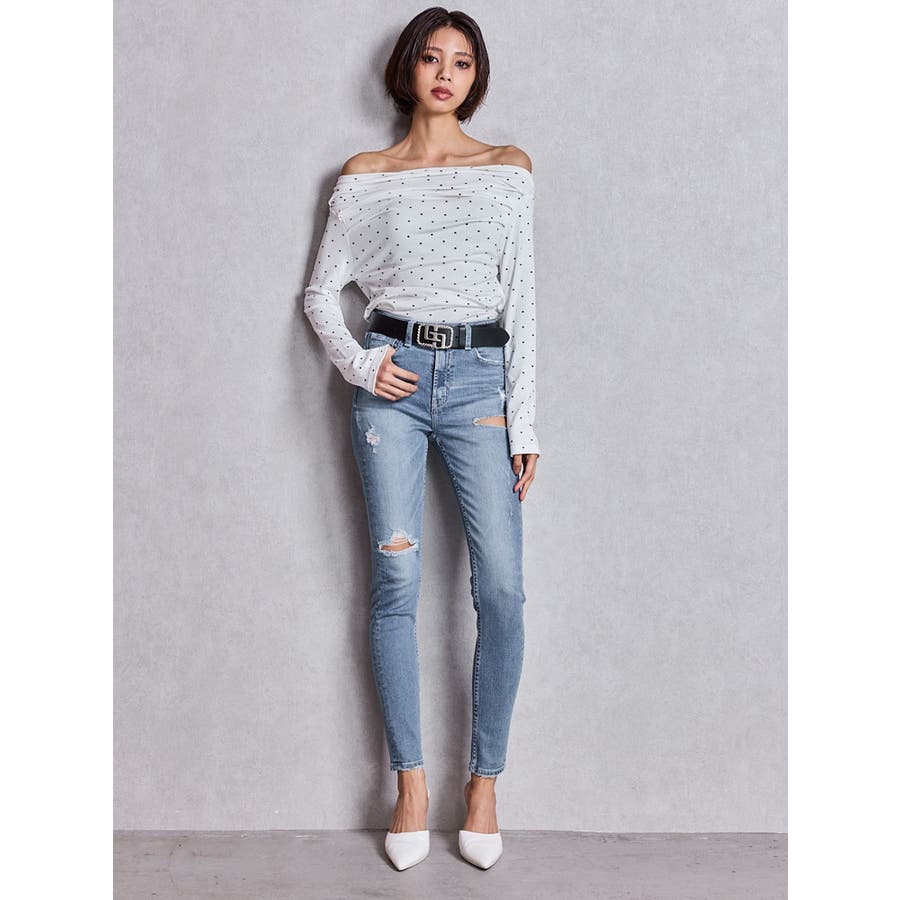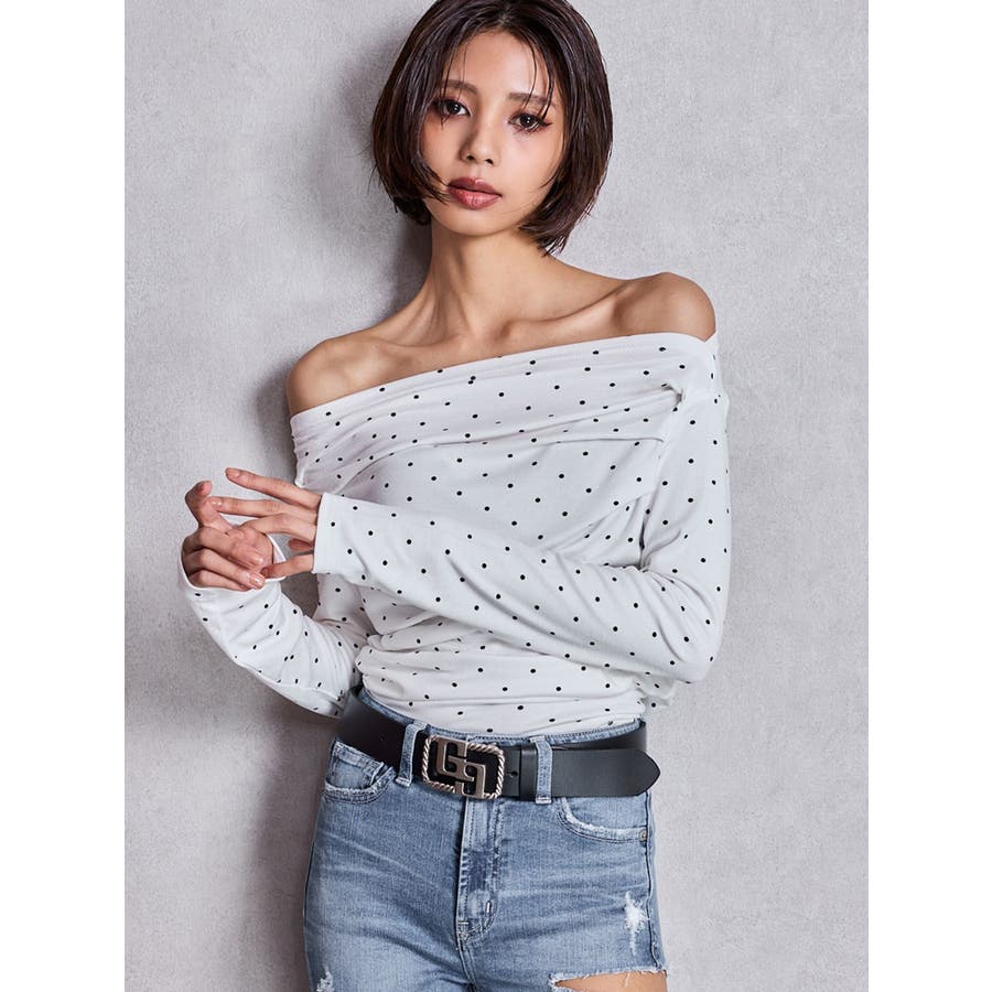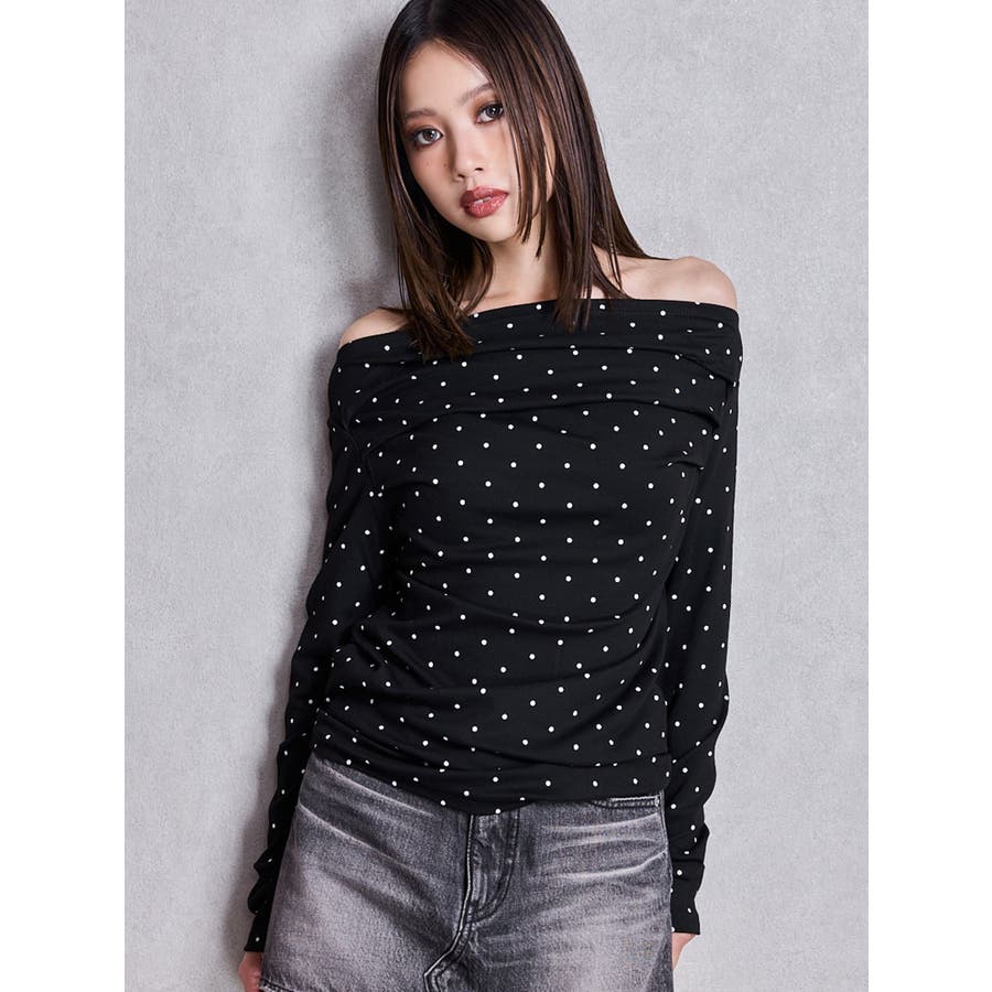 ドットパターンオフショルトップス