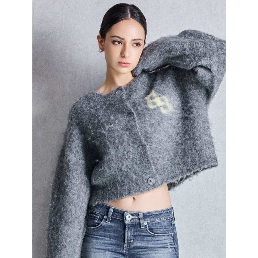 ■デザイン ふんわりした毛足の長いニット素材を使用し、 ミックス感のカラーもかわいい印象を与えてくれるカーディガンアイテムです。 ショート丈ですっきりさせていますが、身幅はゆったりのサイズ設定で、 厚みある編地でもバランスのいいシルエットになります。 左胸の”GG”モチーフと、後ろはAS IFのジャカード入り。 【意味:「as if~」まさか!ウソでしょ!のスラング。】 ■スタイリング シャツ×ショートボトム×ブーツでトラッドスタイルにするのがおススメです。 ■商品のお気に入り登録 再入荷通知やラスト1点、お得なプライスダウンの情報も受け取ることができます。 ぜひご登録ください◎ ・・・・・・・・・・・・・・・・・・・・・・ ※着用画像はフラッシュの加減で実際の製品と色味等が異なる場合がございますので、生地のズームアップ画像をご確認ください。 ※ご利用の端末画面の設定により実際の商品と色味が異なる場合がございます。