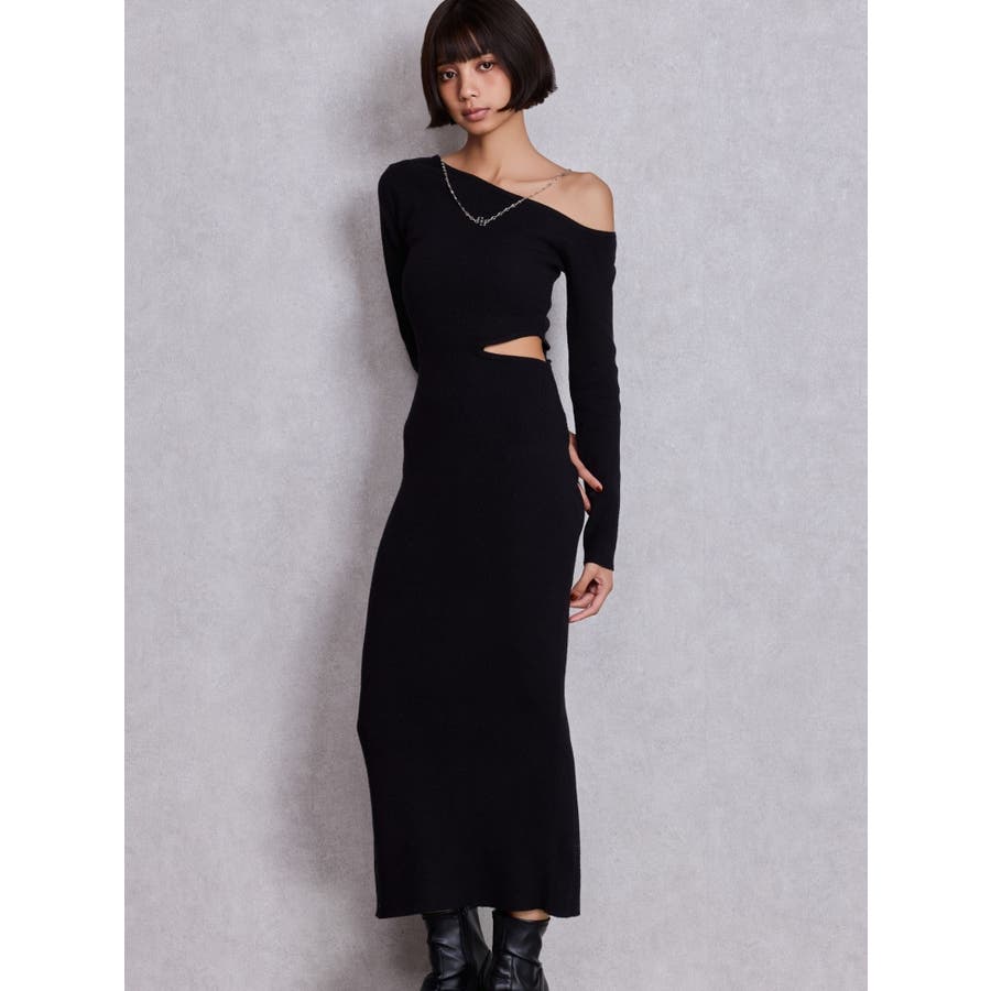 ■デザイン 大胆なワンショル×GGチェーンネックレス(長さ調整・取り外し可能)ディテールで視線を惹きつける、 色っぽモードなリブニットワンピース。 ボディラインに沿うスリムなシルエットと、左ウエストが開いたデザインで、スタイルを美しく魅せてヘルシーな肌見せが叶う1着に。 ストレッチの効いたリブニット素材が、フィット感と着心地を両立してくれ、着るだけでスタイルアップ見えも◎ ■スタイリング スタイリングにアクセサリーいらずの華やかさをプラス。 エコファーのアウターなどでリッチな女性らしさをプラスするスタイリングがおススメです。 ■商品のお気に入り登録 再入荷通知やラスト1点、お得なプライスダウンの情報も受け取ることができます。 ぜひご登録ください◎ ・・・・・・・・・・・・・・・・・・・・・・ ※着用画像はフラッシュの加減で実際の製品と色味等が異なる場合がございますので、生地のズームアップ画像をご確認ください。 ※ご利用の端末画面の設定により実際の商品と色味が異なる場合がございます。 【商品特徴】透け感:なし伸縮性:あり生地の厚さ:普通サイズ感:細身裏地:なしポケット:なしファスナー:なし