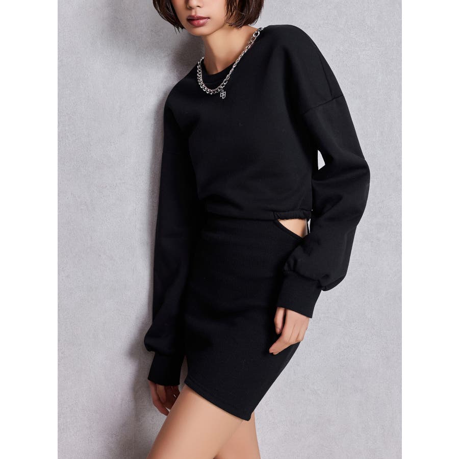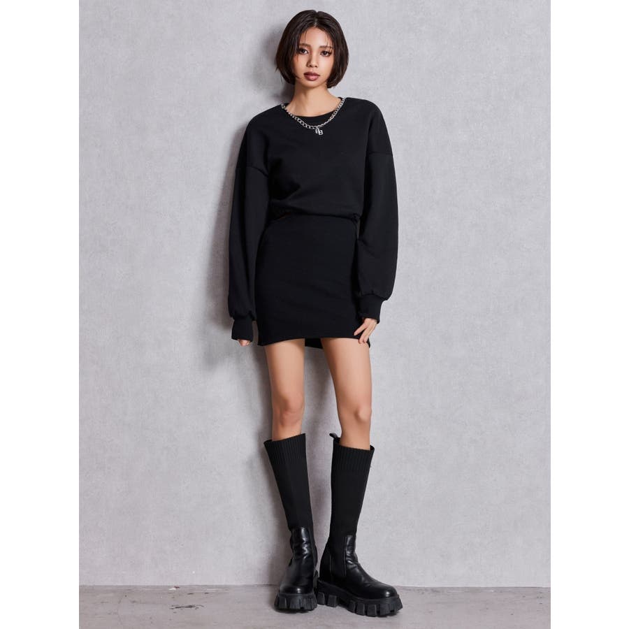■デザイン 取り外し可能のチェーンネックレス風×サイドウエスト開きがヘルシーな肌みせで、ボディラインを美しく引き立ててくれる拘りのデザインポイント。 カジュアルながらもエッジの効いたドッキングスウェットワンピース。 寒い時期でも暖かい裏起毛素材を使い、スカート部分はタイトでスタイルアップになるようリブを使用。 後ろファスナーで着脱もしやすく、フロントにGG刺繍も施した1着です。 ■スタイリング ブーツ×エコファーやボア系のアウター合わせがおススメです。 ■商品のお気に入り登録 再入荷通知やラスト1点、お得なプライスダウンの情報も受け取ることができます。 ぜひご登録ください◎ ・・・・・・・・・・・・・・・・・・・・・・ ※着用画像はフラッシュの加減で実際の製品と色味等が異なる場合がございますので、生地のズームアップ画像をご確認ください。 ※ご利用の端末画面の設定により実際の商品と色味が異なる場合がございます。