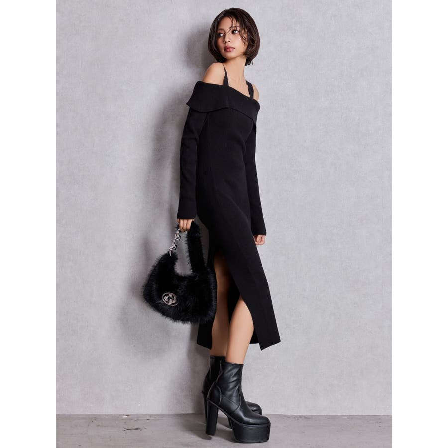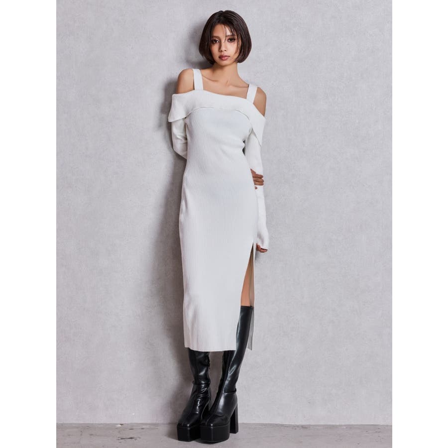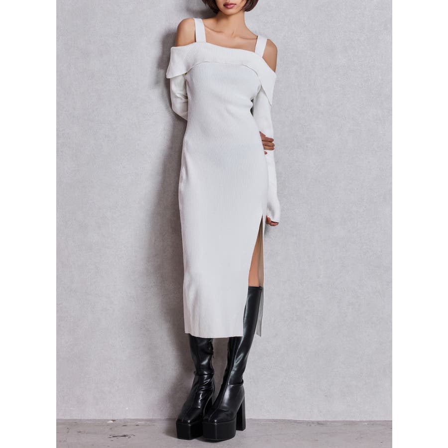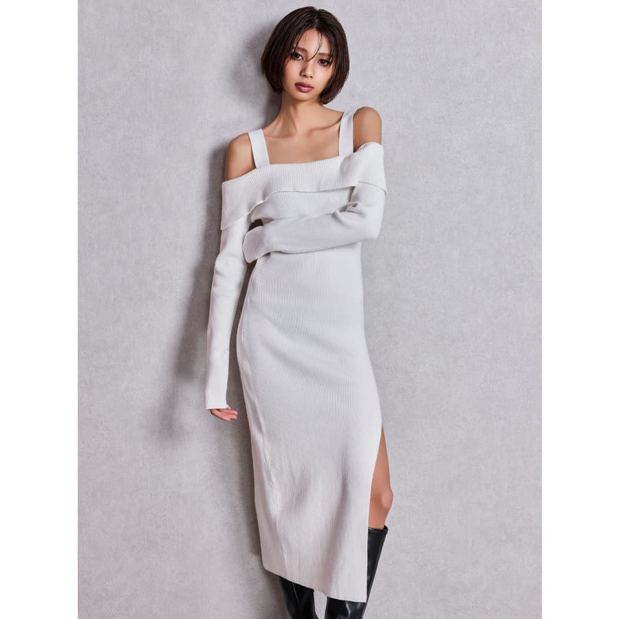 ■デザイン シンプルなロングのニットワンピースにGYDAらしいスリットとオフショルのデザインをあわせた、 場面を選ばずに使いやすい万能なワンピースです。 オフショルのデザインですが肩紐がしっかりあるのでアウターを羽織っている時もずれるストレスなく着用していただけます。 ■スタイリング カジュアルに着こなしたいときはデニムブルゾンあわせ、 きれい目に着こなしたいときはファーコートがおすすめです。 ■商品のお気に入り登録 再入荷通知やラスト1点、お得なプライスダウンの情報も受け取ることができます。 ぜひご登録ください◎ ・・・・・・・・・・・・・・・・・・・・・・ ※着用画像はフラッシュの加減で実際の製品と色味等が異なる場合がございますので、生地のズームアップ画像をご確認ください。 ※ご利用の端末画面の設定により実際の商品と色味が異なる場合がございます。