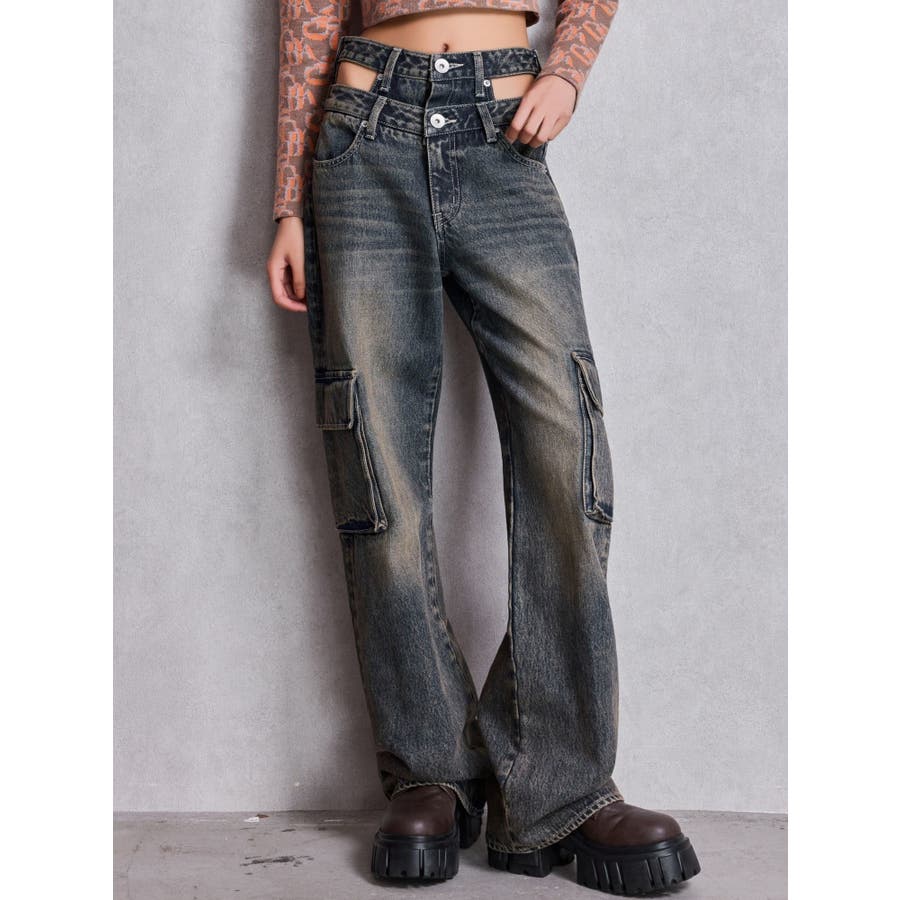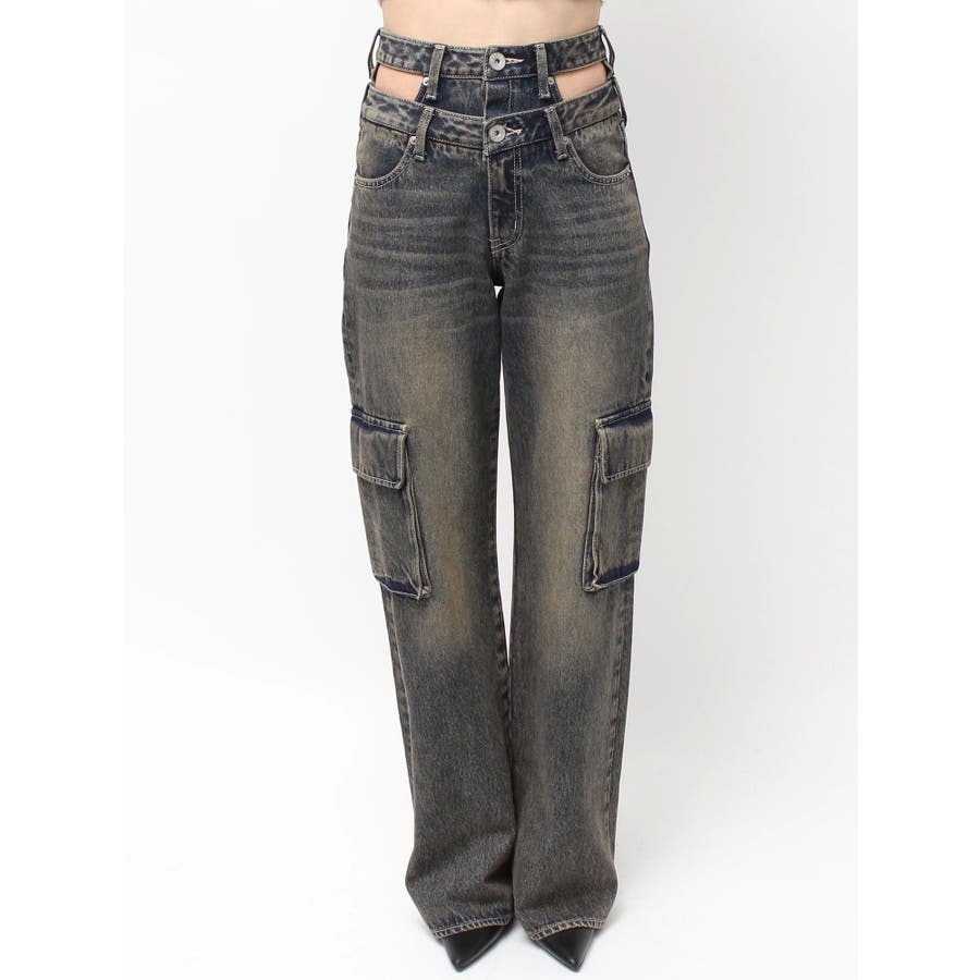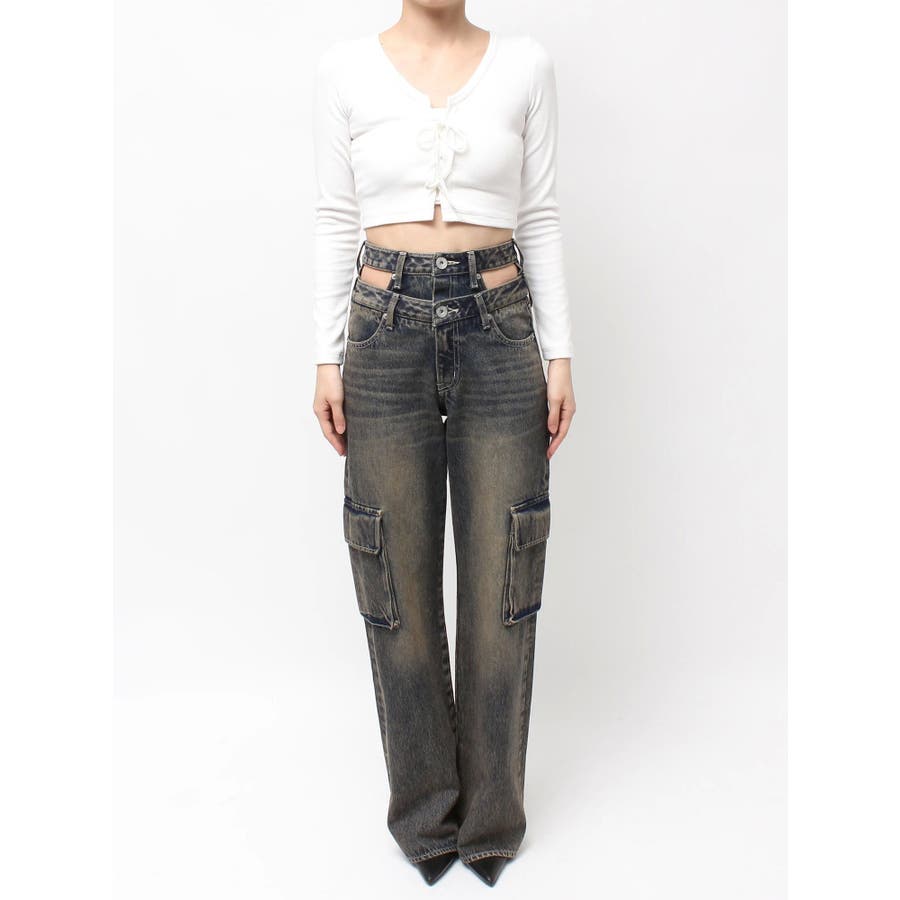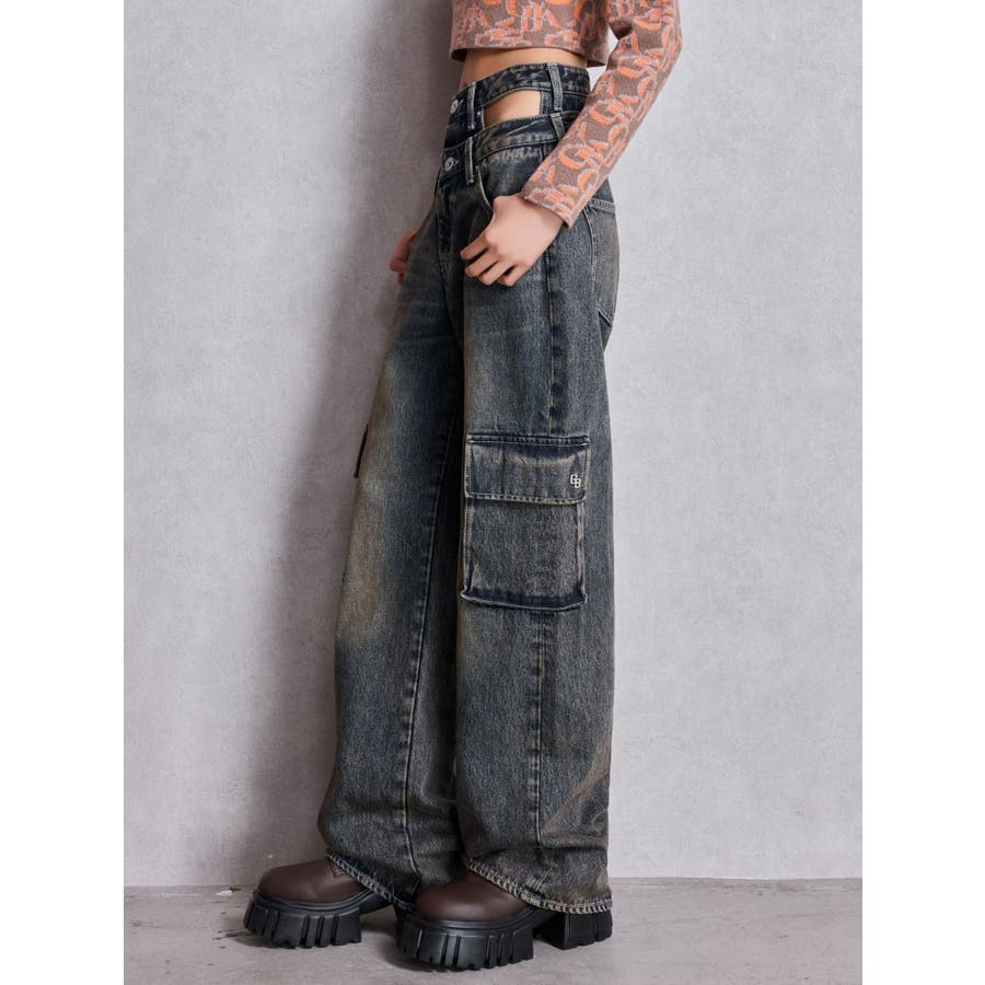 ハイウエスト CUT OUT CARGOワイトデニムパンツ