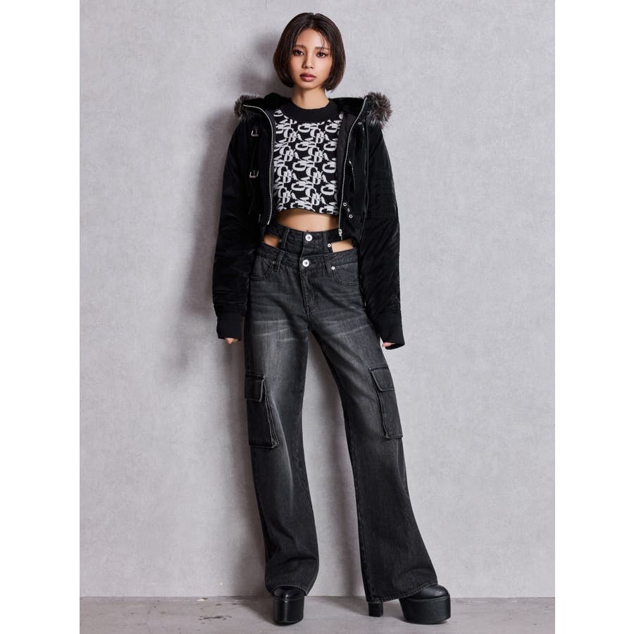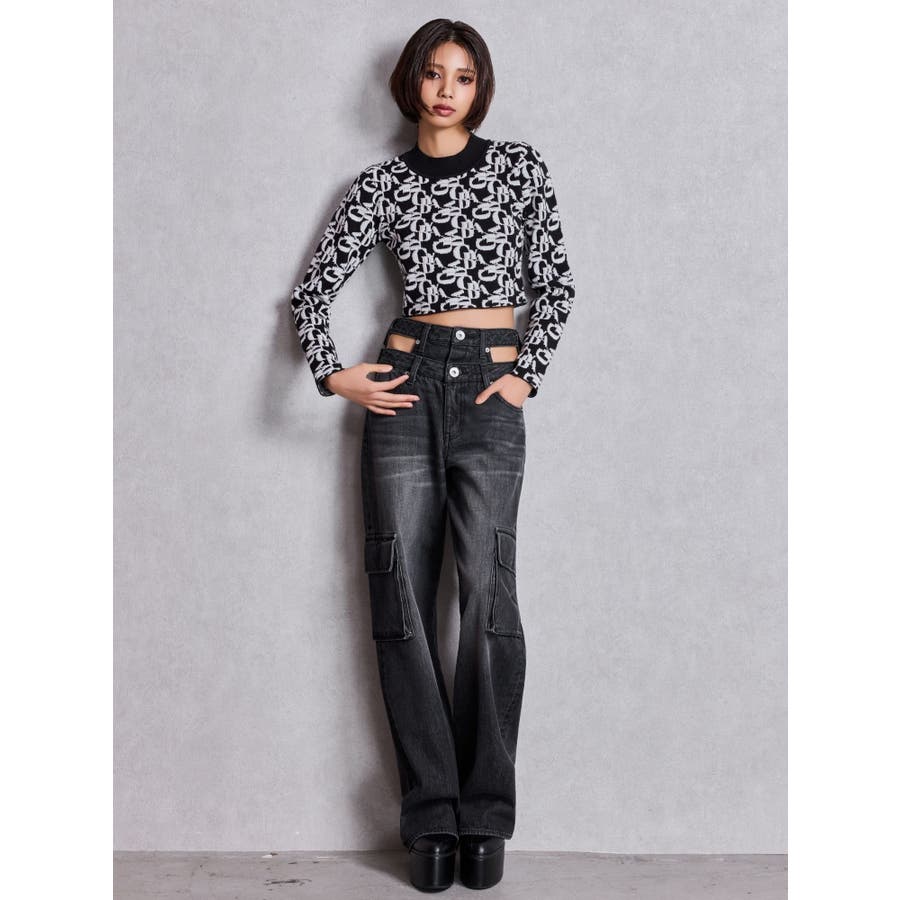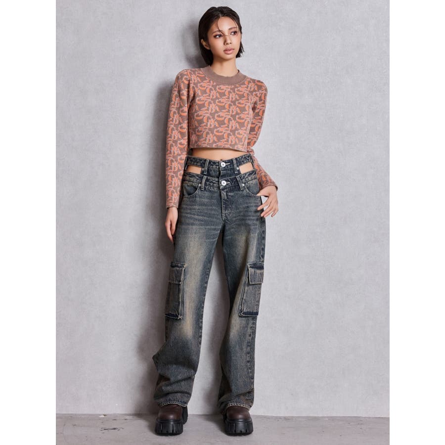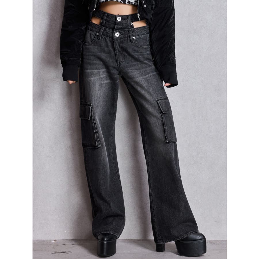 ハイウエスト CUT OUT CARGOワイトデニムパンツ