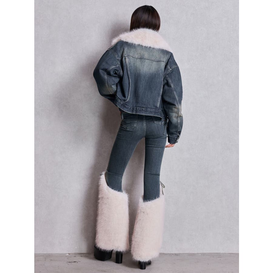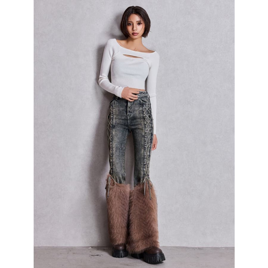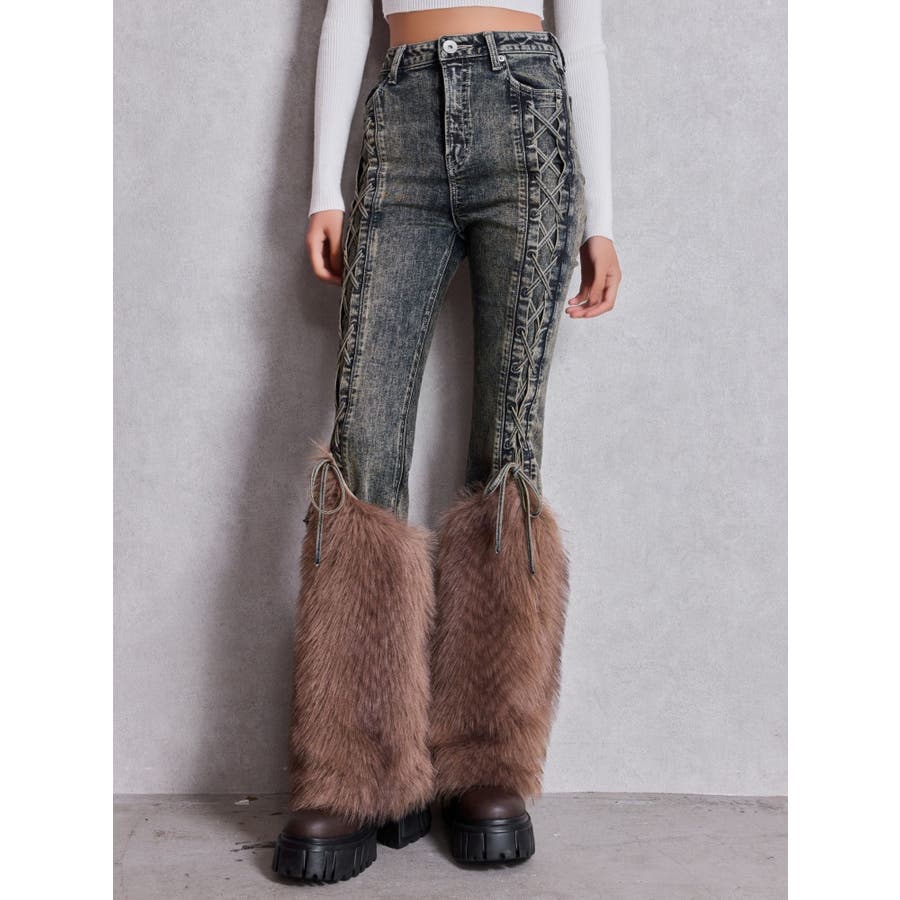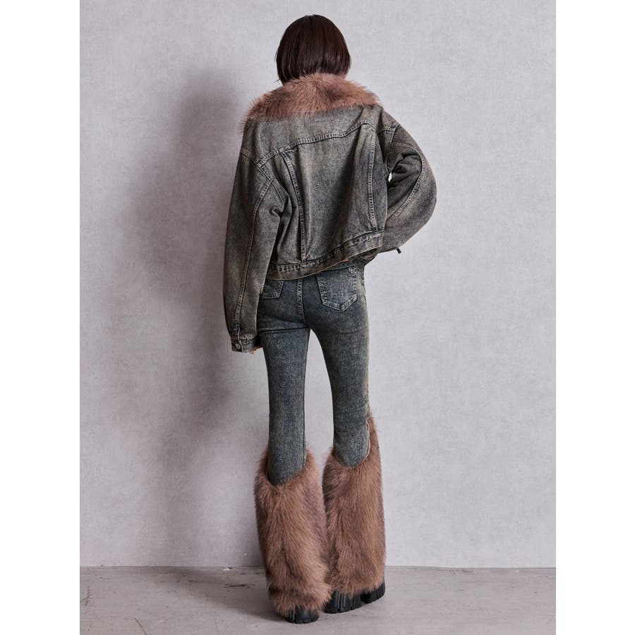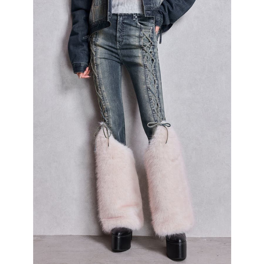 ■セットアップアイテムはこちら 2WAY ECO FURショートデニムGジャン ■デザイン ハイウエストのフレアシルエットのボディーに両サイドレースアップデザインを施し、 2WAYで取り外せるエコファーのレッグウォーマーが付いたデザインデニムが新登場。 エコファーは、レースアップ部分と内側のボタン取り外し仕様で、 合わせる物によってデザインを変えて着用できるのが嬉しい1本。 レースアップ部分の、コントラストを付けたウォッシュ加工も、美脚効果抜群です。 ■スタイリング プラットフォーム系のシューズと合わせて脚長効果◎ セットアップ着用で、個性的かつトレンド感のあるスタイルを演出◎ ■商品のお気に入り登録 再入荷通知やラスト1点、お得なプライスダウンの情報も受け取ることができます。 ぜひご登録ください◎ ・・・・・・・・・・・・・・・・・・・・・・ ※着用画像はフラッシュの加減で実際の製品と色味等が異なる場合がございますので、生地のズームアップ画像をご確認ください。 ※ご利用の端末画面の設定により実際の商品と色味が異なる場合がございます。【商品特徴】透け感:なし伸縮性:なし生地の厚さ:普通サイズ感:普通裏地:ありポケット:あり(前)