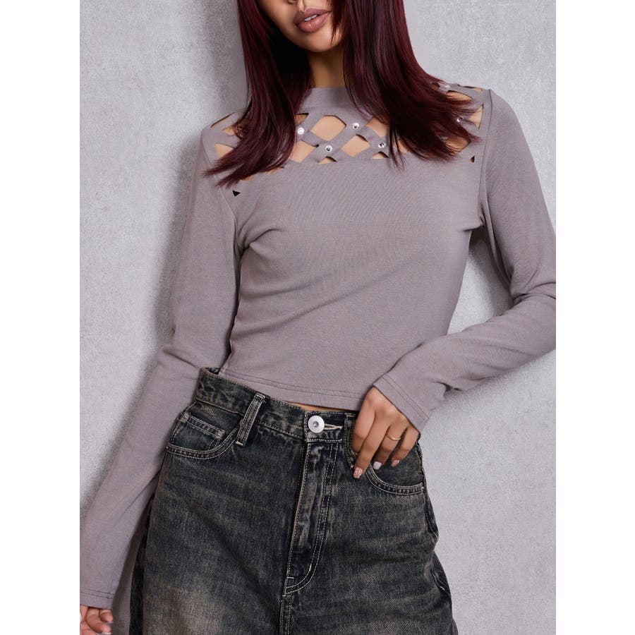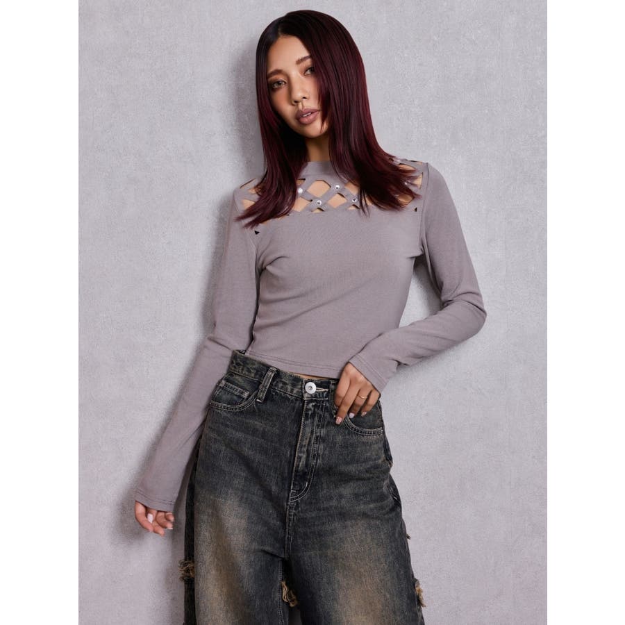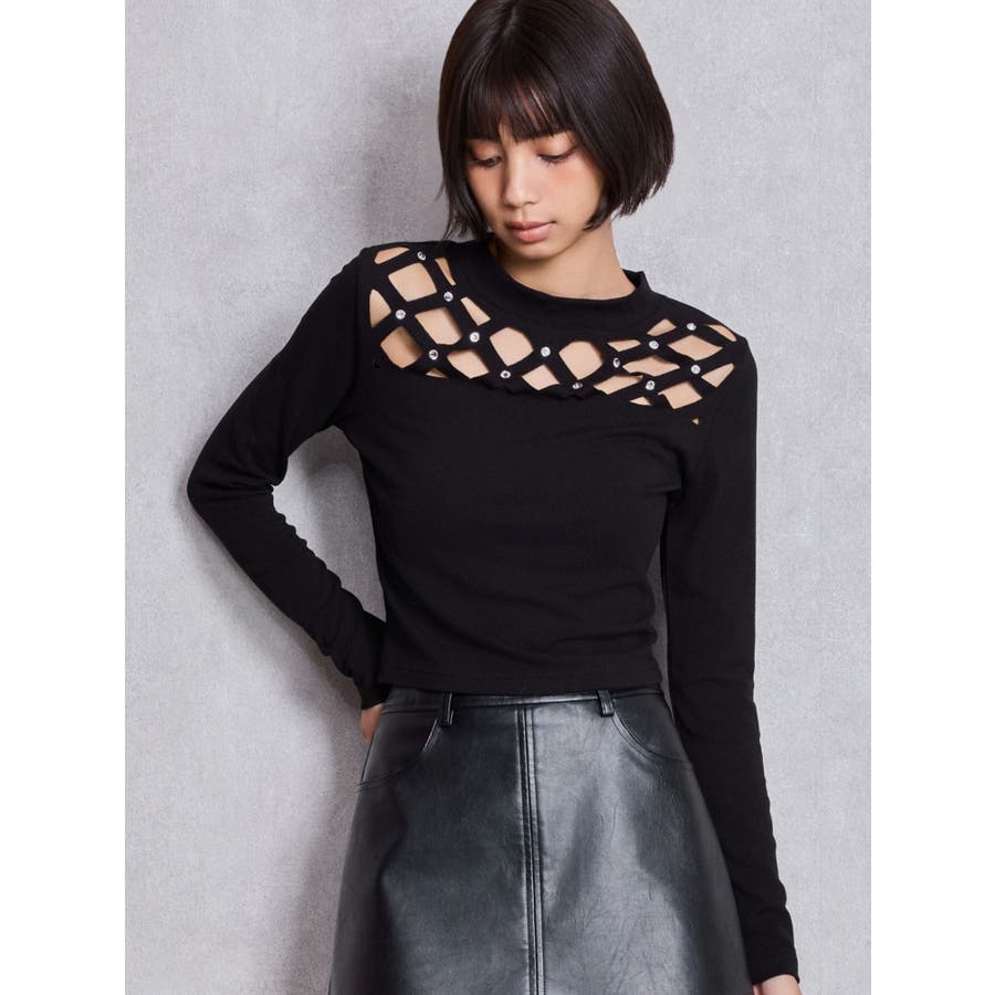 ■デザイン 胸上が格子状にあいていてその間にビジューがついたトップス。 首回りをすっきり見せてくれるので小顔効果があります。 また、デコルテチラ見せのセクシーさがGYDAらしさ◎ さらっとした生地感なので季節とわず長く着用可能です。 ■スタイリング Boosterブラトップを着用していただくと下着を見せずに着用できます。 デザイン性は高いですがコンパクトなのでデニム合わせやセットアップのインナー着用がおすすめです。 ■商品のお気に入り登録 再入荷通知やラスト1点、お得なプライスダウンの情報も受け取ることができます。 ぜひご登録ください◎ ・・・・・・・・・・・・・・・・・・・・・・ ※着用画像はフラッシュの加減で実際の製品と色味等が異なる場合がございますので、生地のズームアップ画像をご確認ください。 ※ご利用の端末画面の設定により実際の商品と色味が異なる場合がございます。