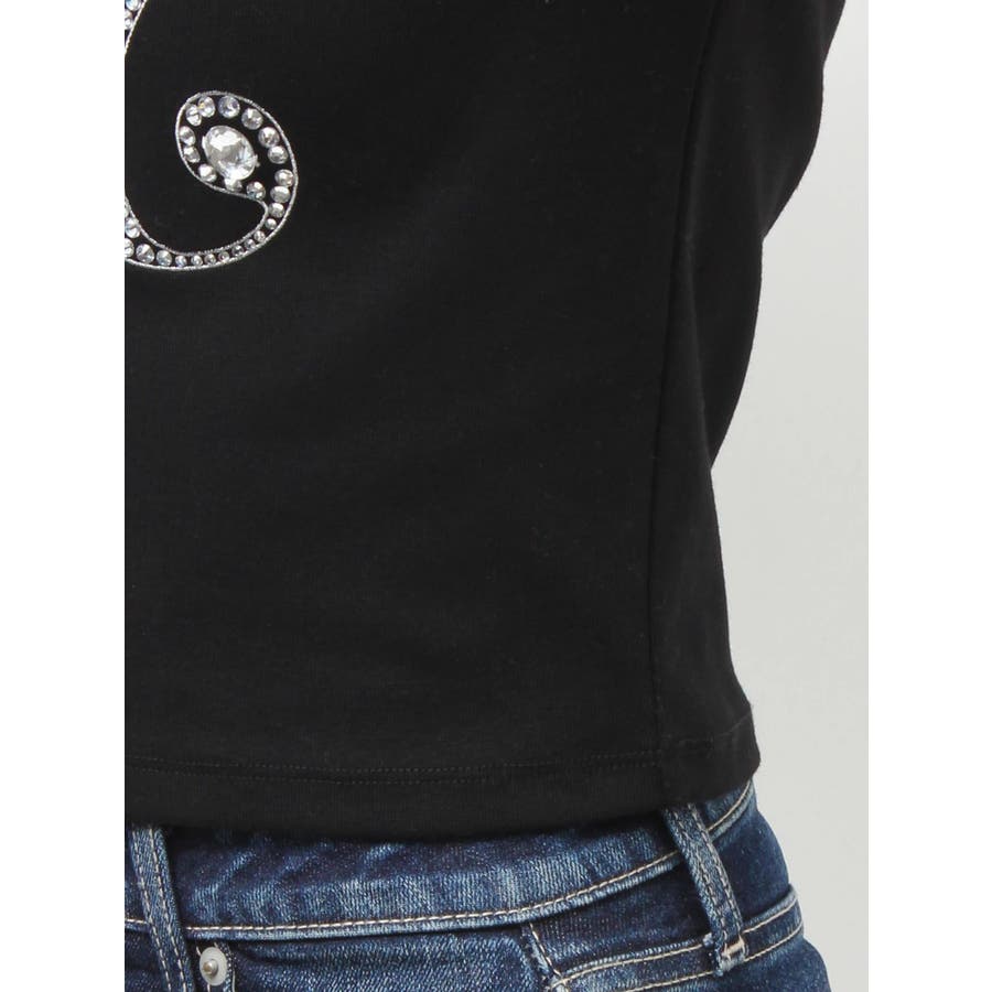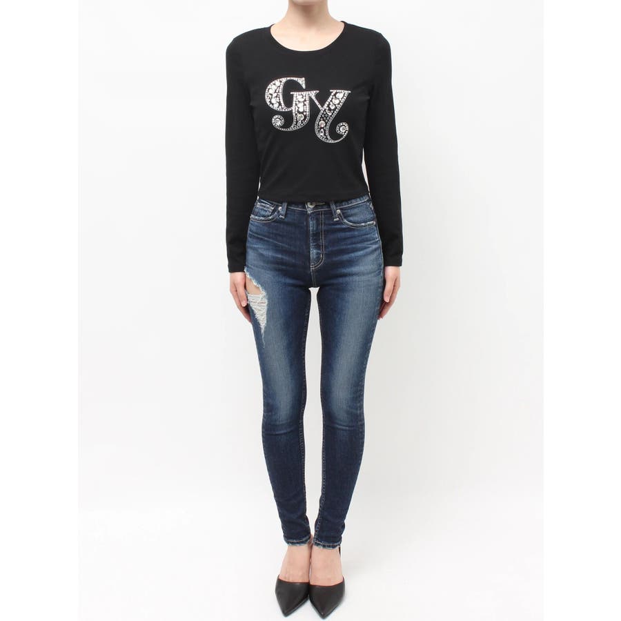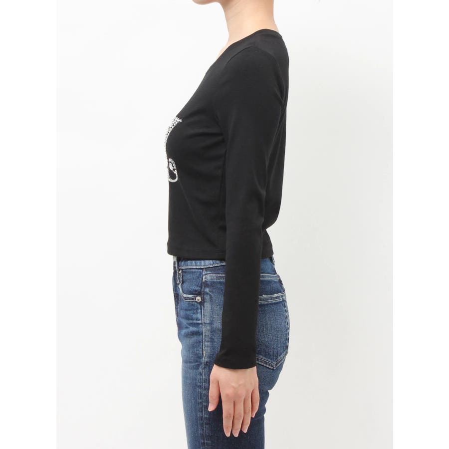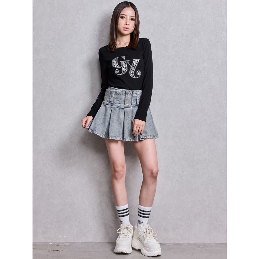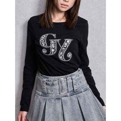■商品コメント:大人気のGY bijou トップスがロンTになって再登場!刺繍の縁取りの中の隅々までビジューが埋め尽くされているので1枚で主役になってくれます。伸縮性のある生地でコンパクトなサイズ感なのでどんなアウターにも着用していただけます。 コーデ:スキニーデニム×ベルト付きショートダウンがGYDAらしくておすすめです。