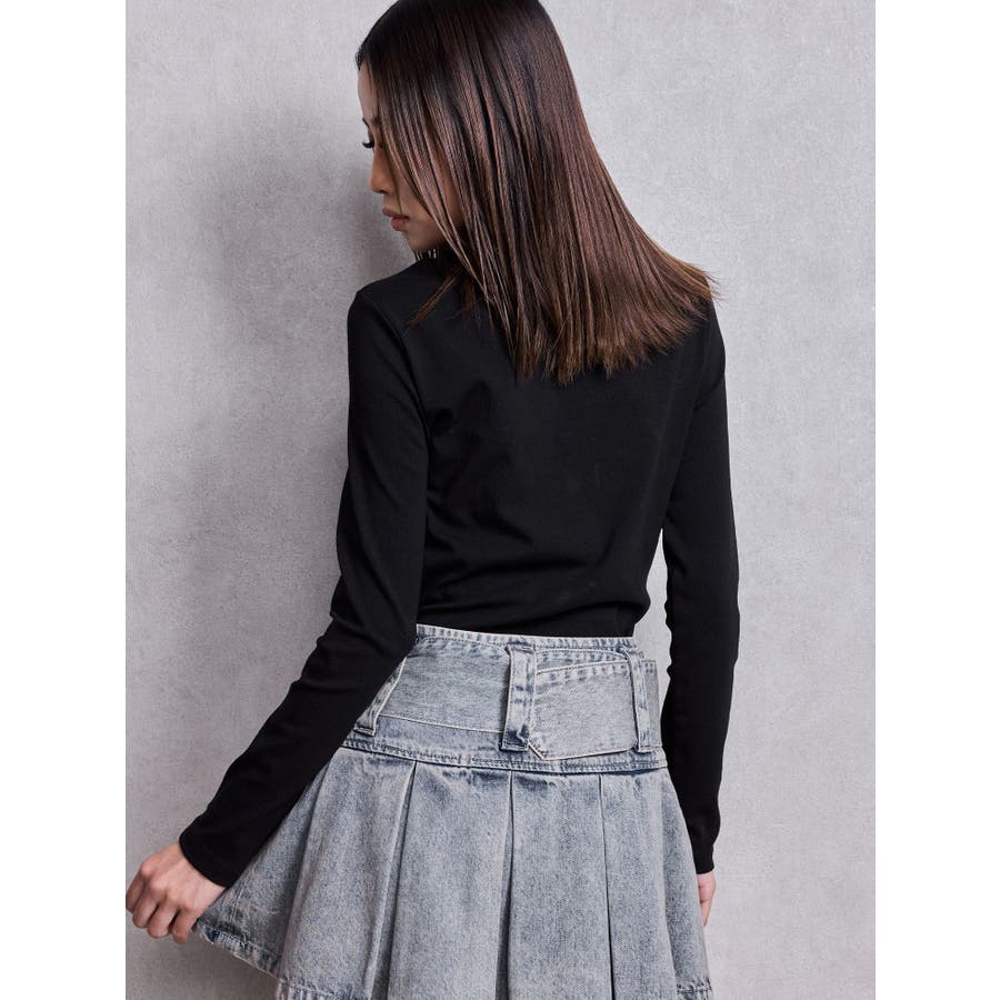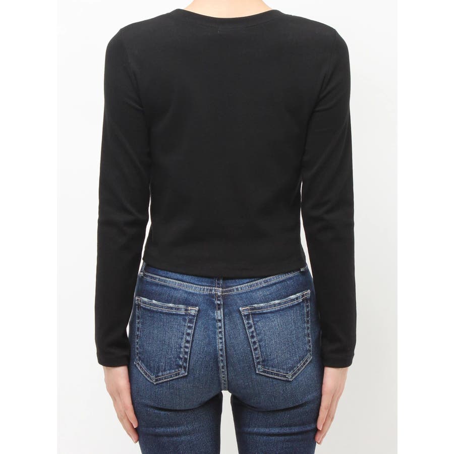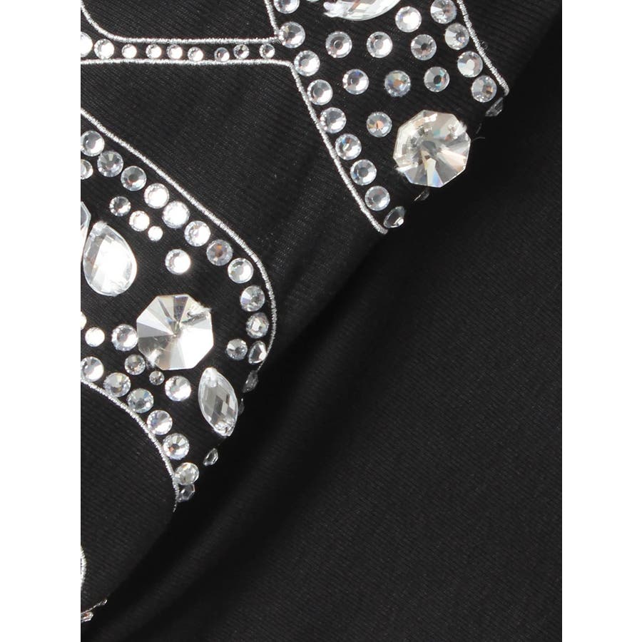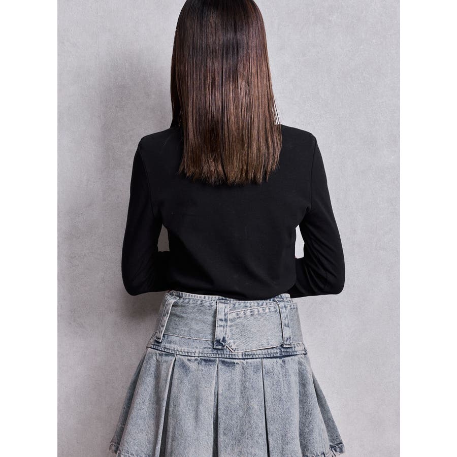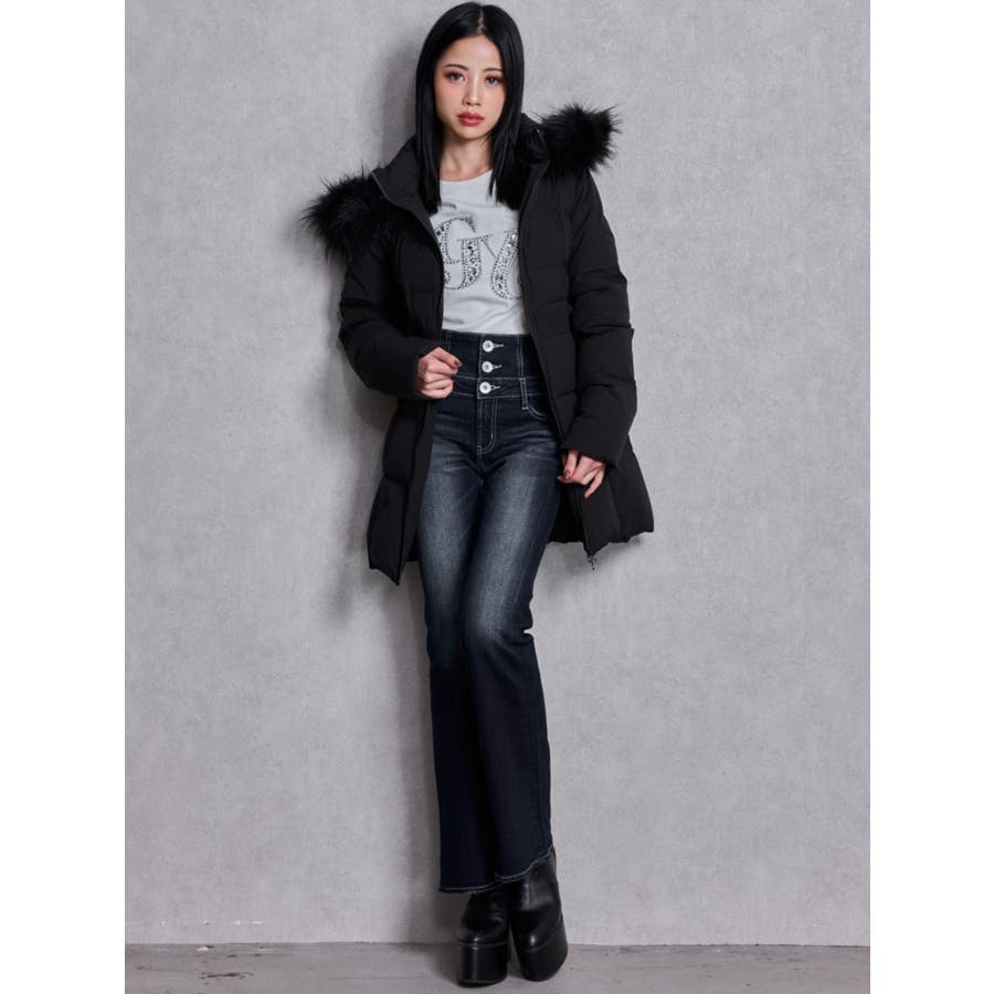 ■商品コメント:大人気のGY bijou トップスがロンTになって再登場!刺繍の縁取りの中の隅々までビジューが埋め尽くされているので1枚で主役になってくれます。伸縮性のある生地でコンパクトなサイズ感なのでどんなアウターにも着用していただけます。 コーデ:スキニーデニム×ベルト付きショートダウンがGYDAらしくておすすめです。