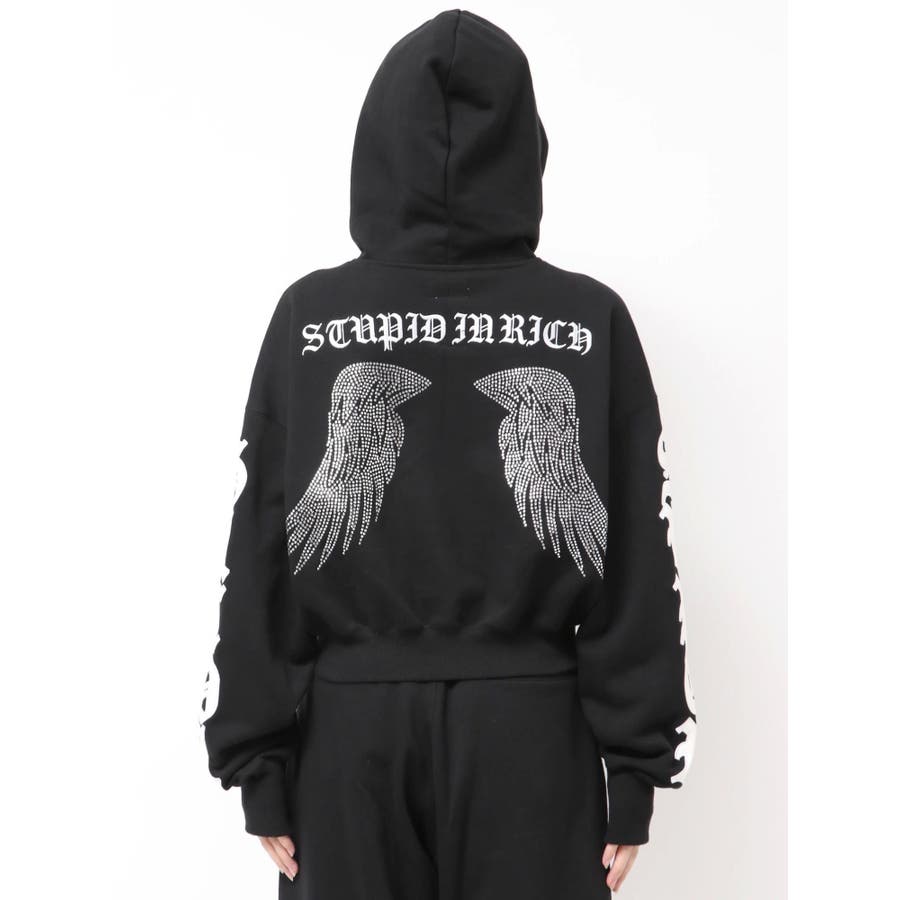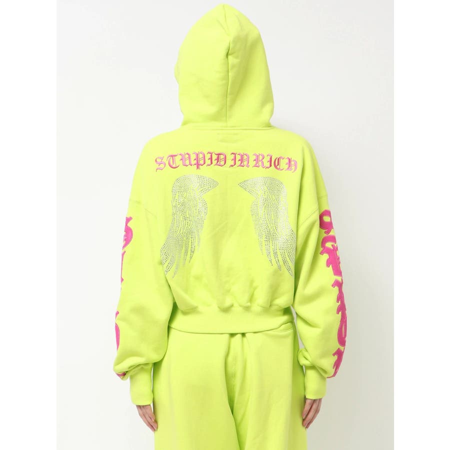 ■セットアップアイテムはこちら GYDA×GALFY bijou wing パンツ ■デザイン 腕には「SUPER」「GALDA」のそれぞれがパッチでついていて「SUPER GALDA=超ギャルだ!」になっていたり、 後ろには大きい翼がビジューでついていたり、まさにスーパーギャルなパーカーです。 フロントにはガルフィーとバニーがロゴからひょっこりでていたり、 バックの翼の上にはGYDAのシーズンテーマの「STUPID IN RICH」が刺繍されていたり、 ファスナートップがガルフィーになっていたりと小さいこだわりポイントも沢山詰め込まれたアイテムになっています。 ■スタイリング セットアップ着用がおすすめです。 GYDAらしくデニムに合わせるのも◎ ■商品のお気に入り登録 再入荷通知やラスト1点、お得なプライスダウンの情報も受け取ることができます。 ぜひご登録ください◎ ・・・・・・・・・・・・・・・・・・・・・・ ※着用画像はフラッシュの加減で実際の製品と色味等が異なる場合がございますので、生地のズームアップ画像をご確認ください。 ※ご利用の端末画面の設定により実際の商品と色味が異なる場合がございます。