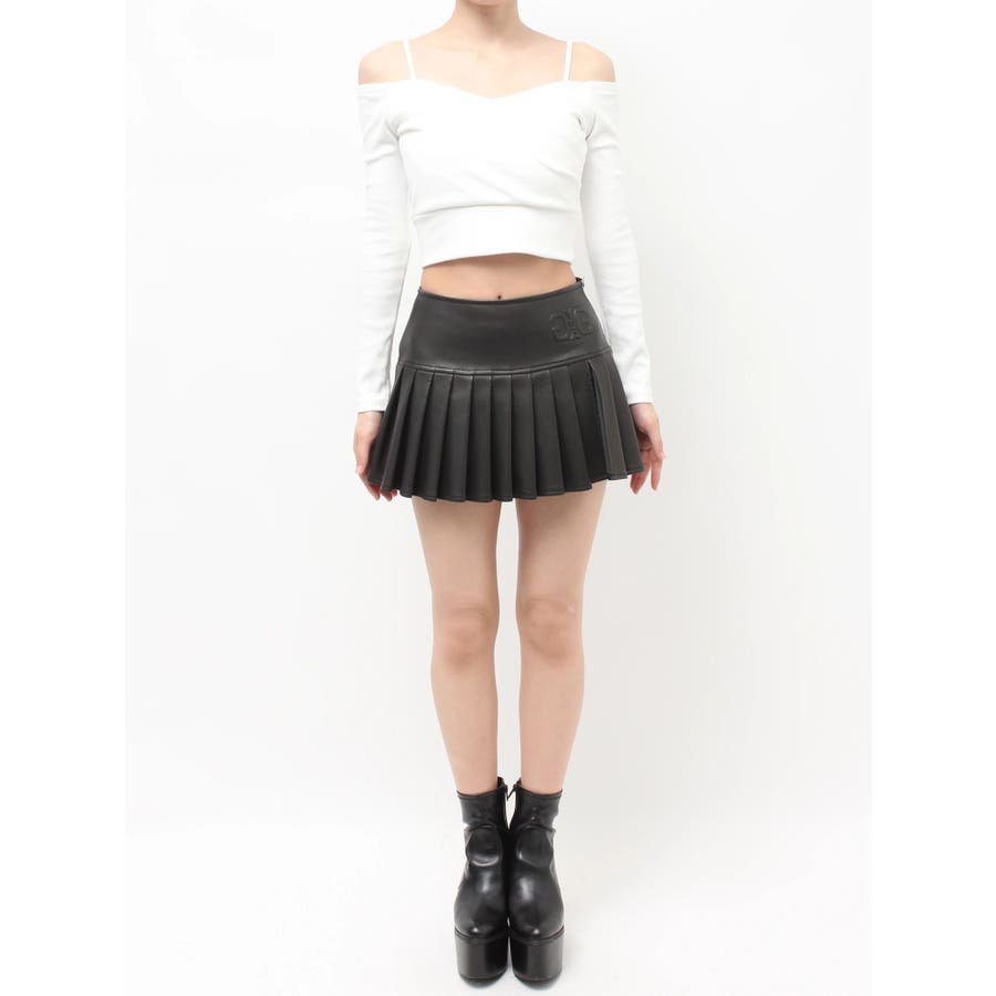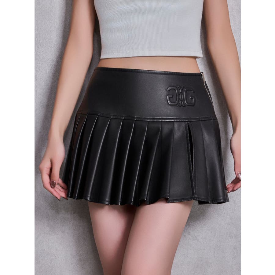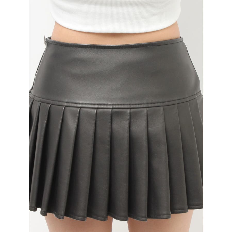 スリットフェイクレザープリーツスカートライクショートパンツ