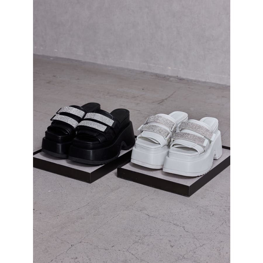 ■デザイン ベルクロで位置調整できるビジューストラップがデザイン特徴の厚底サンダル。 軽量ソールの為、長時間履いても疲れ知らず◎ 脚効果も望める1足です。 後ろヒール部分に”GG”メッキ付きがGYDAらしさを演出。 【サイズ】 S(22.5cm)/ストーム::6.5cm, ヒール:11cm L:(24.5cm)/ストーム:6.7cm, ヒール:11.2cm ■スタイリング ロンパースの足元や、ソックス合わせがおススメです。 ■商品のお気に入り登録 再入荷通知やラスト1点、お得なプライスダウンの情報も受け取ることができます。 ぜひご登録ください◎ ・・・・・・・・・・・・・・・・・・・・・・ ※着用画像はフラッシュの加減で実際の製品と色味等が異なる場合がございますので、生地のズームアップ画像をご確認ください。 ※ご利用の端末画面の設定により実際の商品と色味が異なる場合がございます。