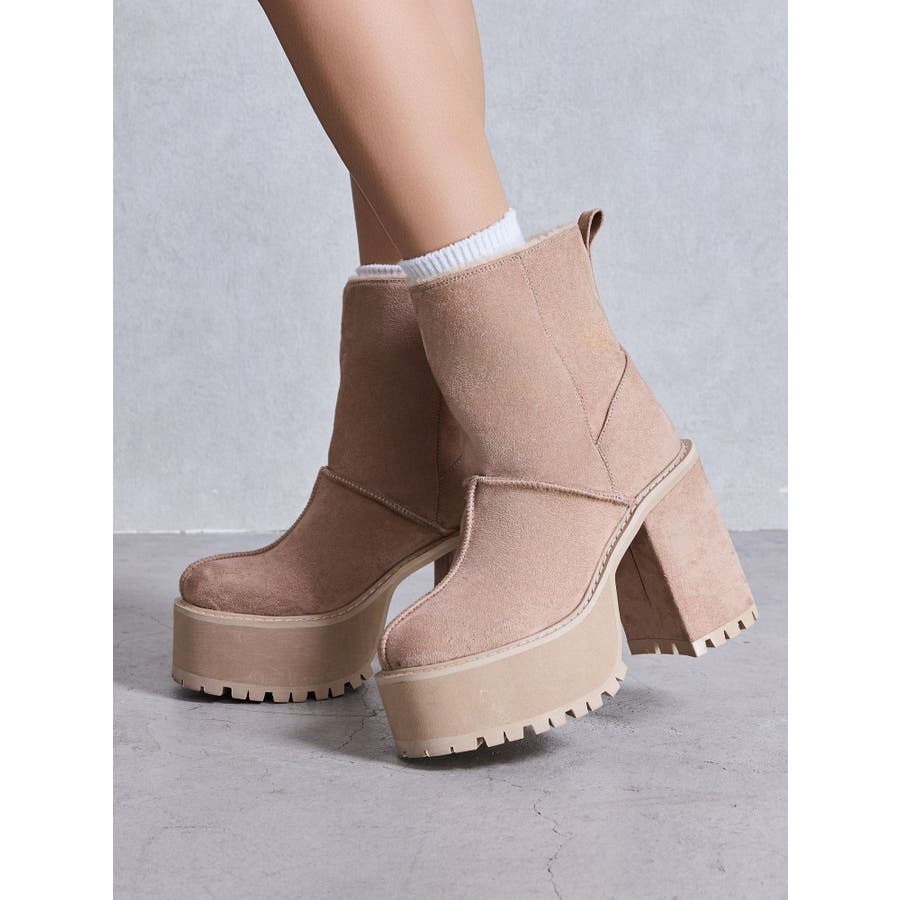 ■デザイン 大人気フェイクムートンの素材を使った秋冬大活躍ショートブーツ。 今シーズンはフラットではなく、太目のヒールでストームもあり、高低差もなく履きやすさ・脚盛れ◎ タンクソールで滑らず、内側も暖かみのある1足です。 ソックス合わせも雰囲気が出て可愛いです。 ■商品のお気に入り登録 再入荷通知やラスト1点、お得なプライスダウンの情報も受け取ることができます。 ぜひご登録ください◎ ・・・・・・・・・・・・・・・・・・・・・・ ※着用画像はフラッシュの加減で実際の製品と色味等が異なる場合がございます。詳細画像をご参照ください。 ※ご利用の端末画面の設定により実際の商品と色味が異なる場合がございます。