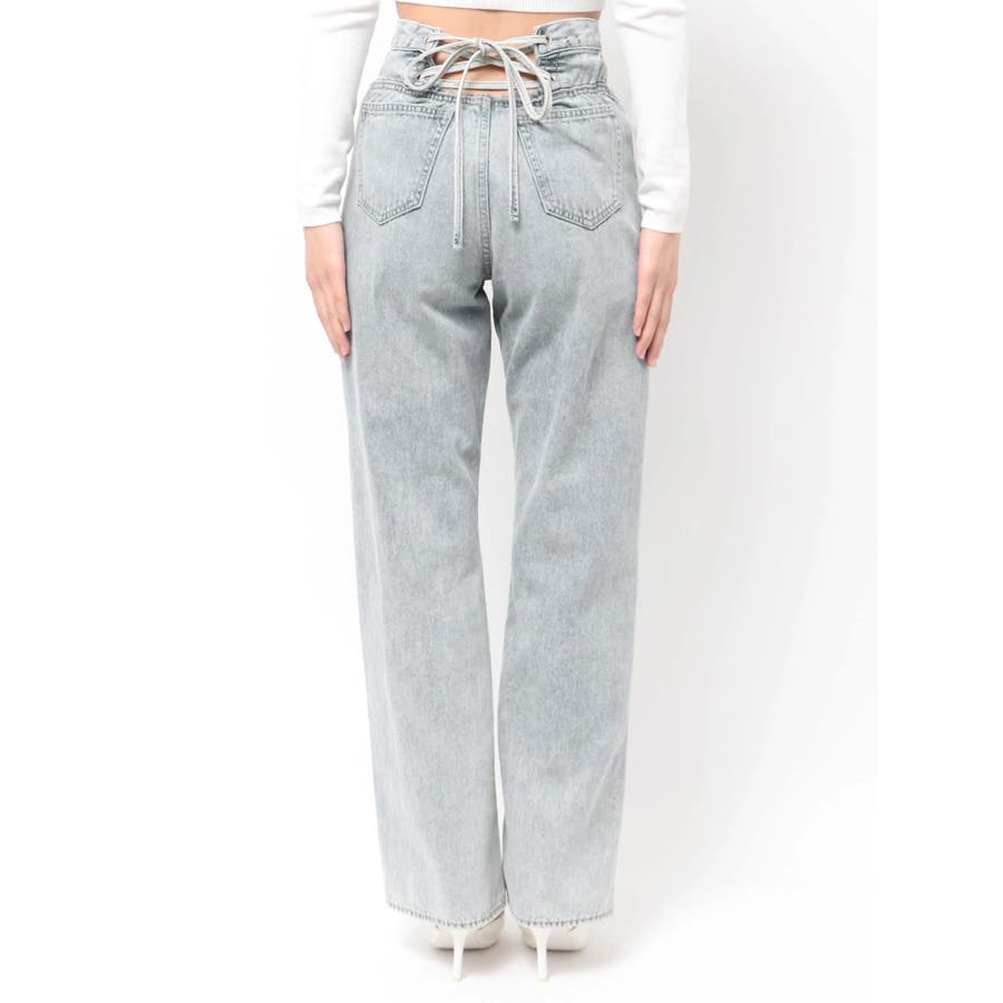 ハイウエストBACK LACE UPストレートデニムパンツ