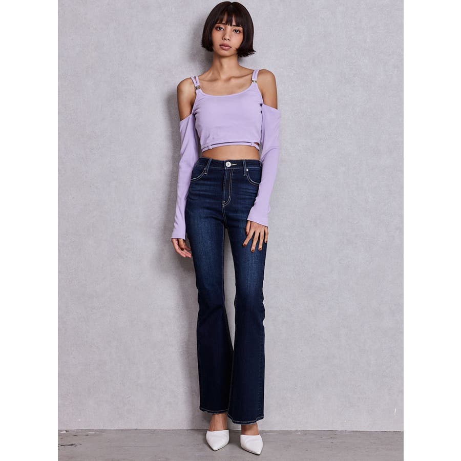 ■デザイン ハイウエストの位置で、脚長効果抜群!! プラスして、膝下からのフレアシルエットで視覚的にもとてもバランスの良いデニムパンツです。 ノーマルな加工感も合わせやすさ抜群の1本です。 【生地感】伸縮性に優れた、ストレッチデニム生地を使用。 【サイズ感】タイトですが、膝下からはフレアの締め付けないサイズ感。 ■スタイリング デイリーユースに最適なヘビロテアイテム。 ■商品のお気に入り登録 再入荷通知やラスト1点、お得なプライスダウンの情報も受け取ることができます。 ぜひご登録ください◎ ■この商品を見ている人におすすめ その他のデニムパンツはこちら ・・・・・・・・・・・・・・・・・・・・・・ ※着用画像はフラッシュの加減で実際の製品と色味等が異なる場合がございますので、生地のズームアップ画像をご確認ください。※ご利用の端末画面の設定により実際の商品と色味が異なる場合がございます。【商品特徴】透け感:なし伸縮性:ややあり生地の厚さ:普通サイズ感:普通裏地:なしポケット:あり(前/後)