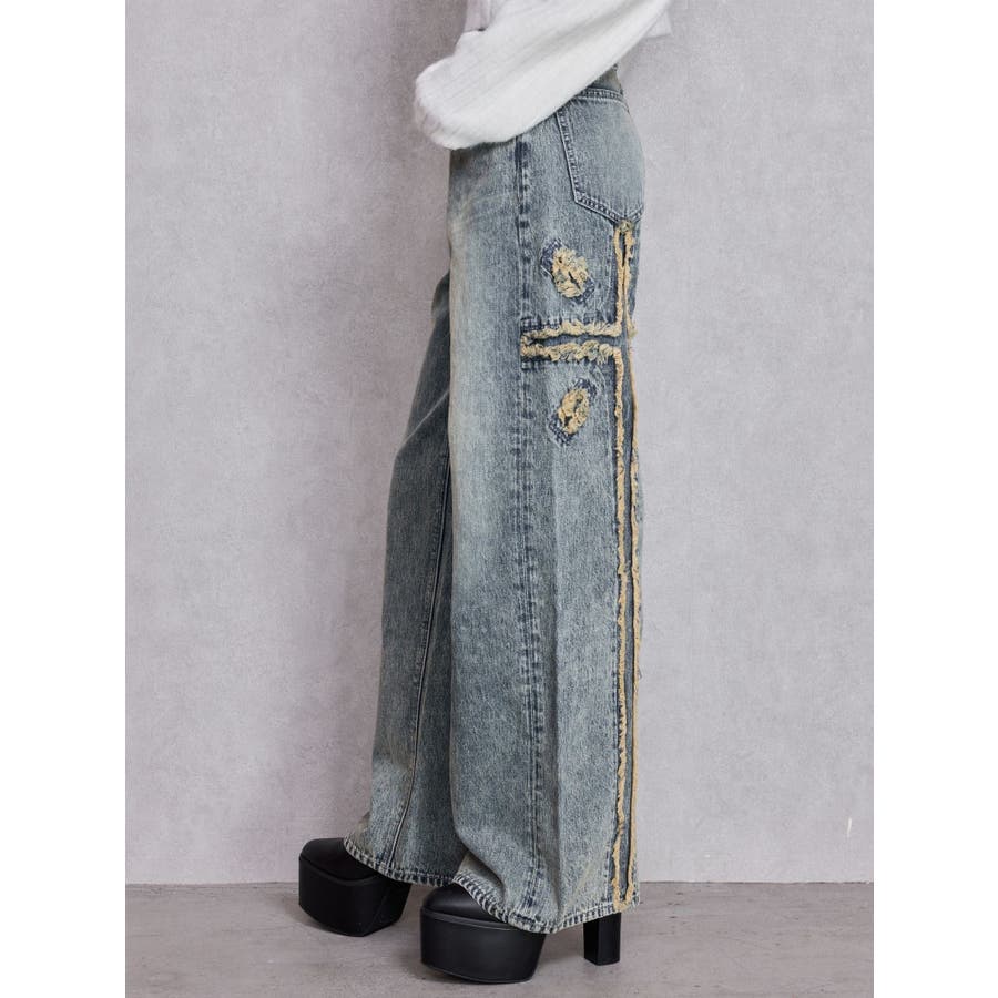 ハイウエストBACK CROSS POINTワイドデニムパンツ
