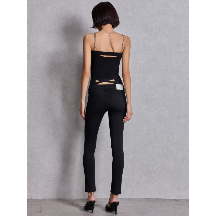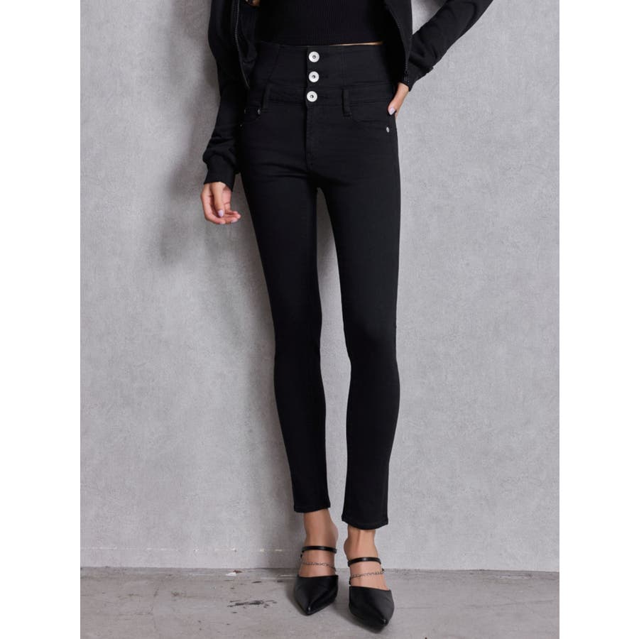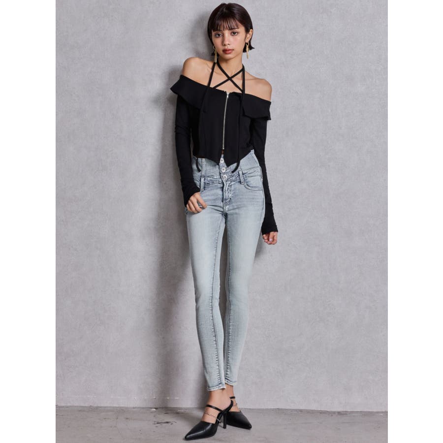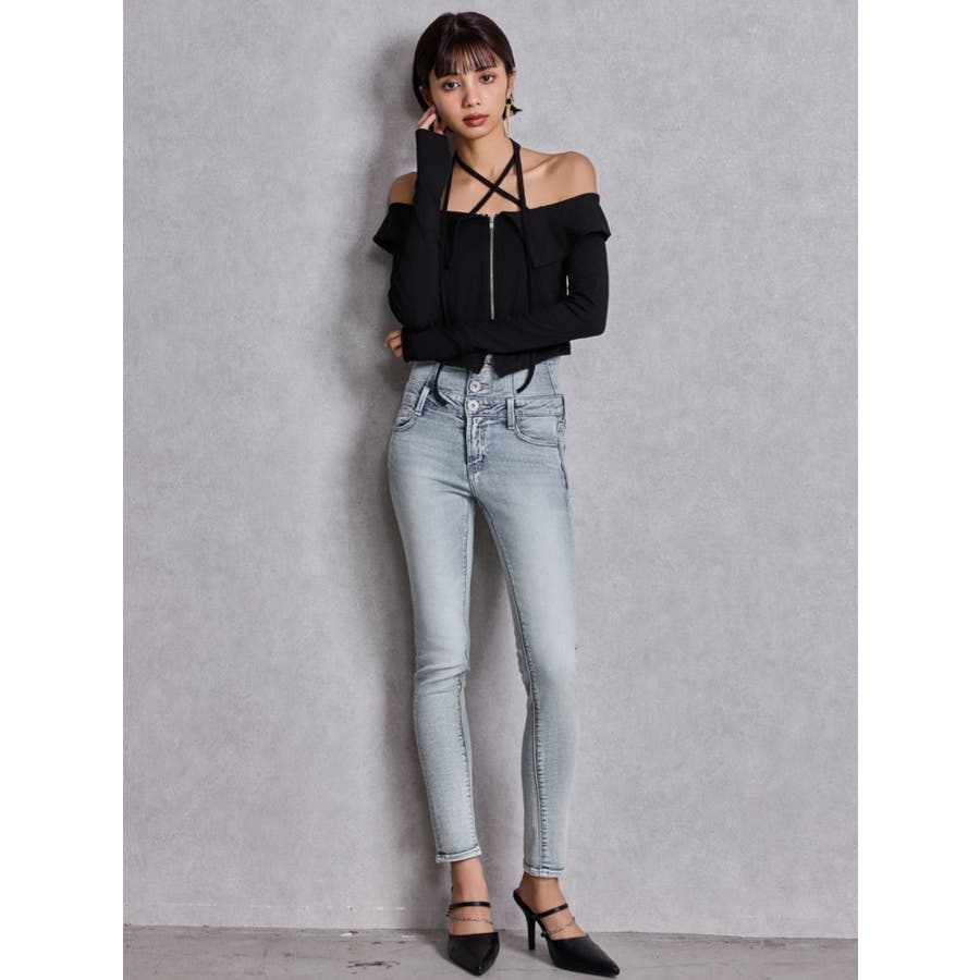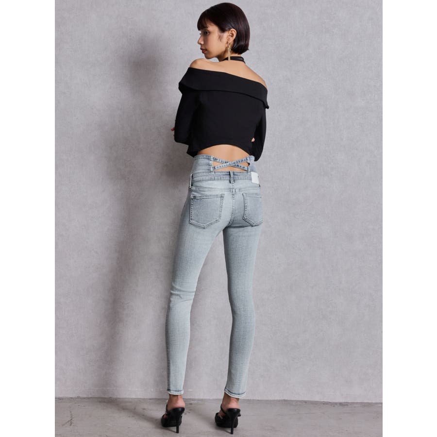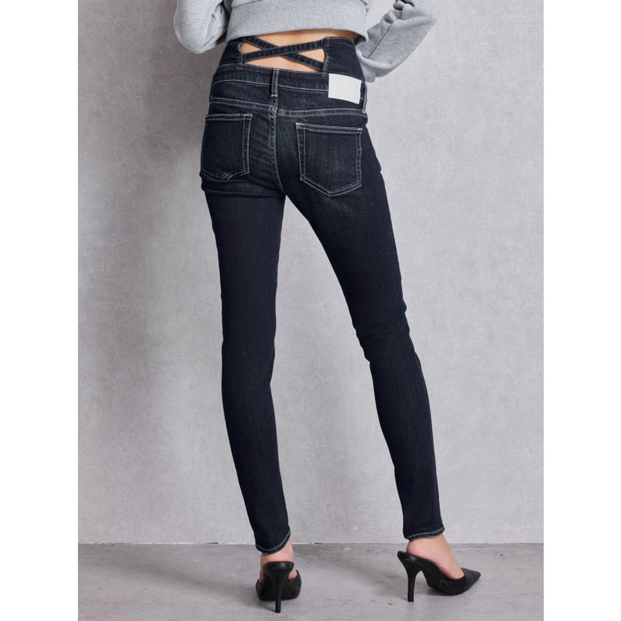ハイウエストウエストクロススキニーデニムパンツ