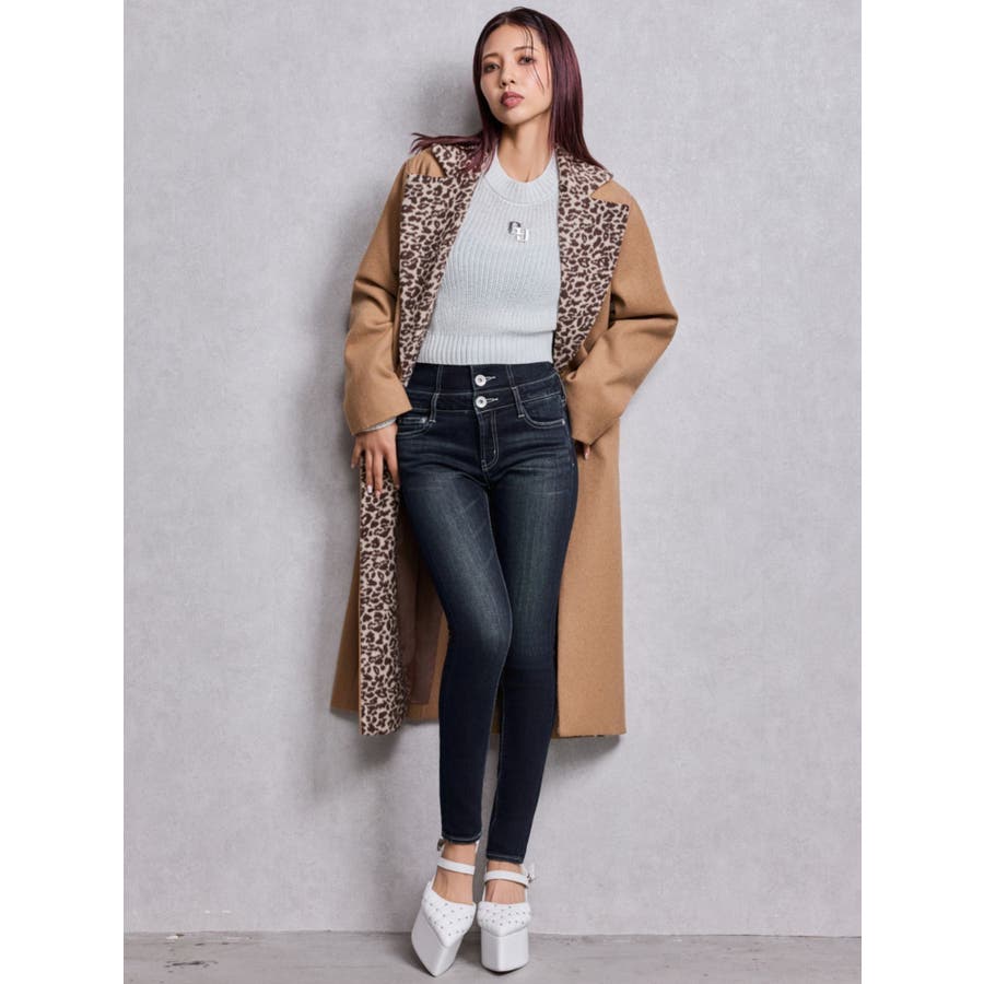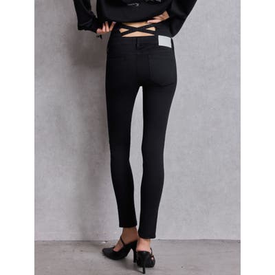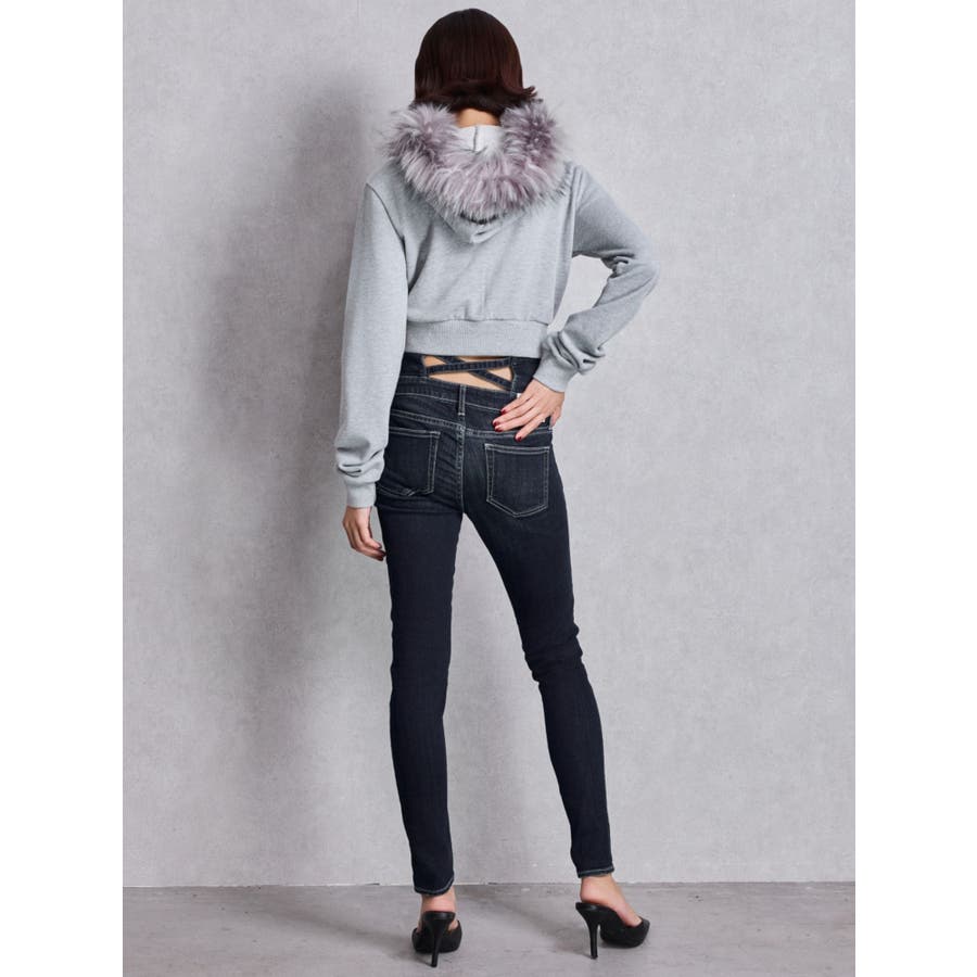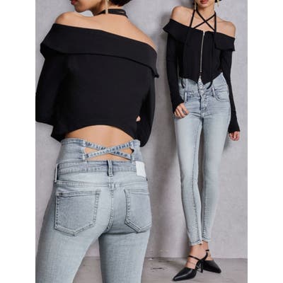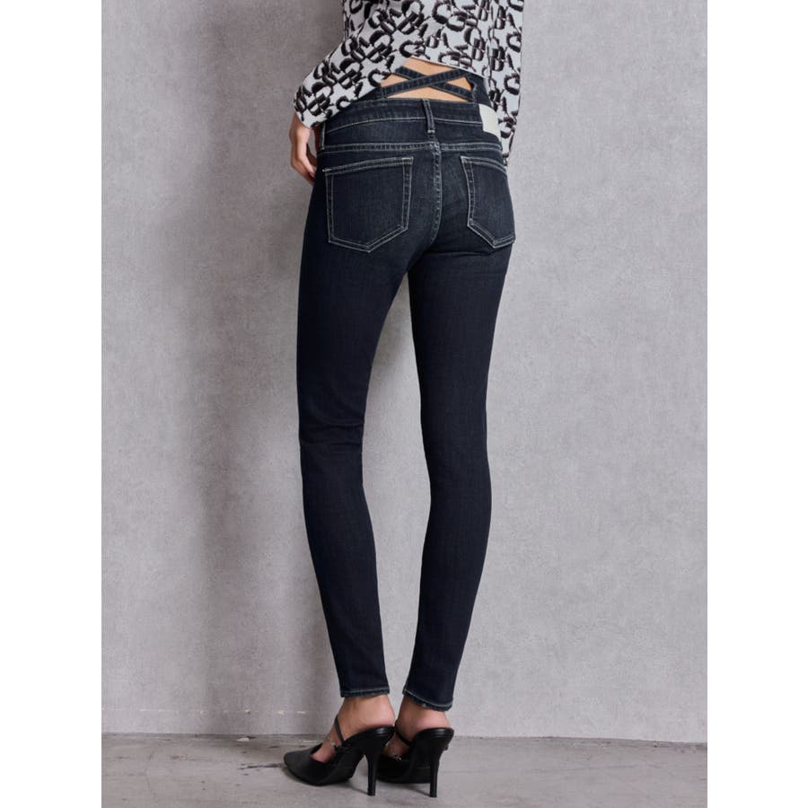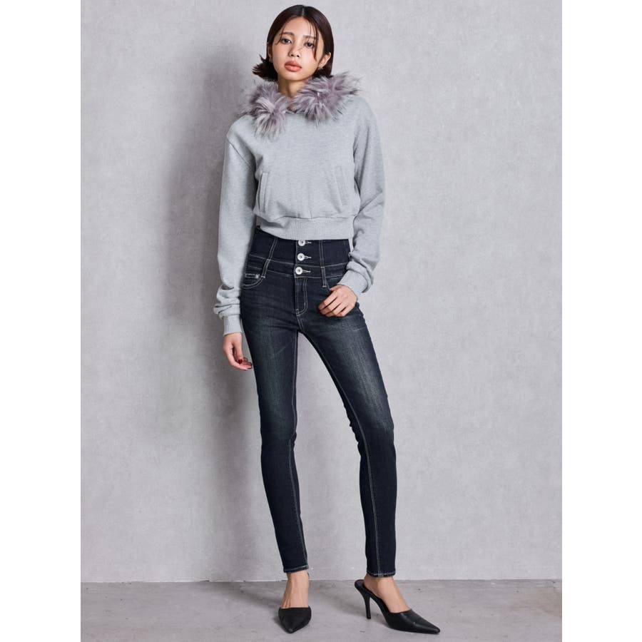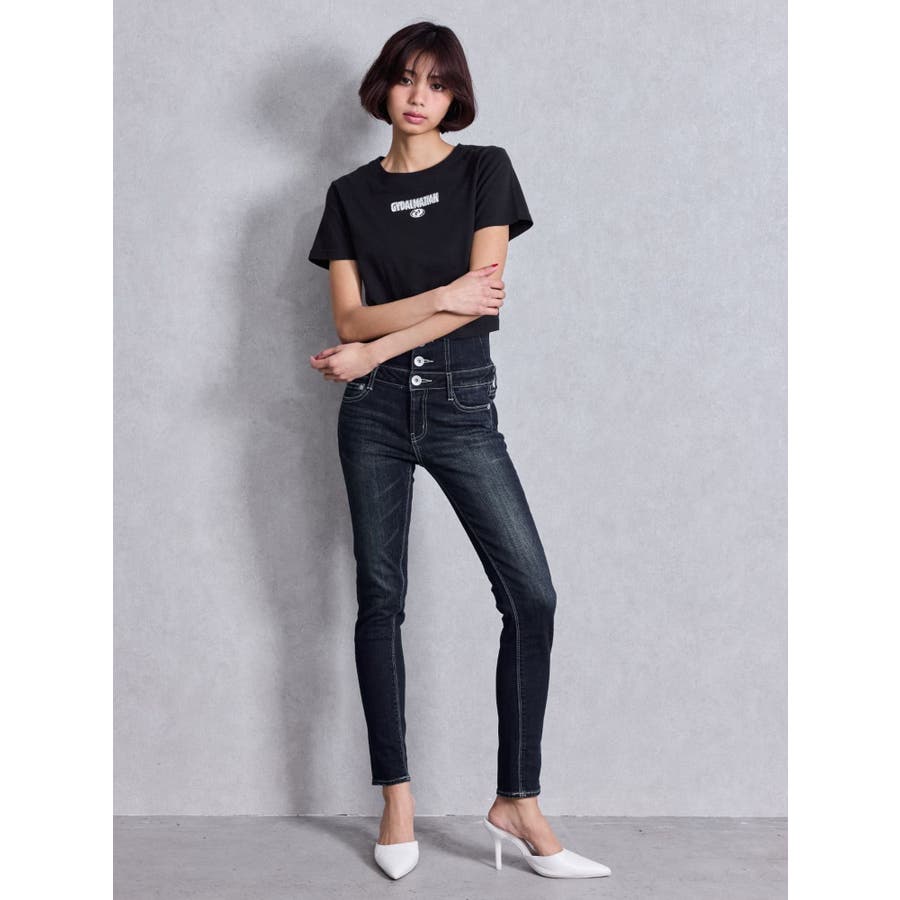 ハイウエストウエストクロススキニーデニムパンツ